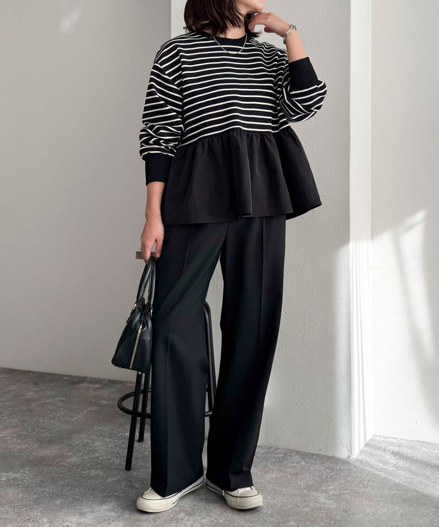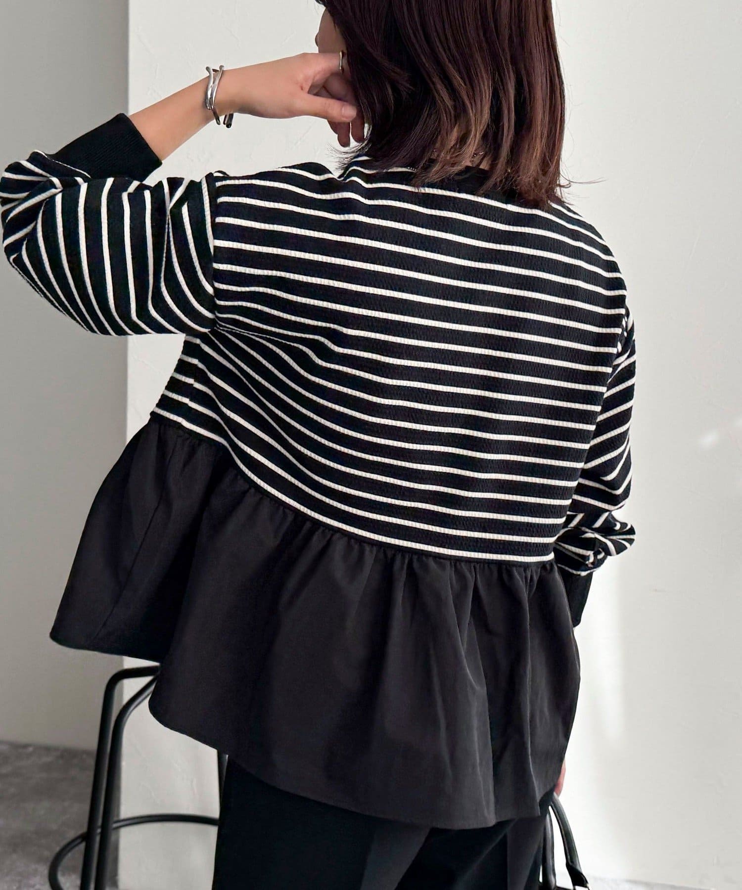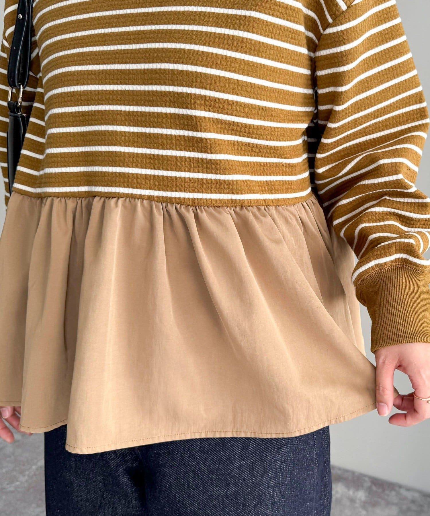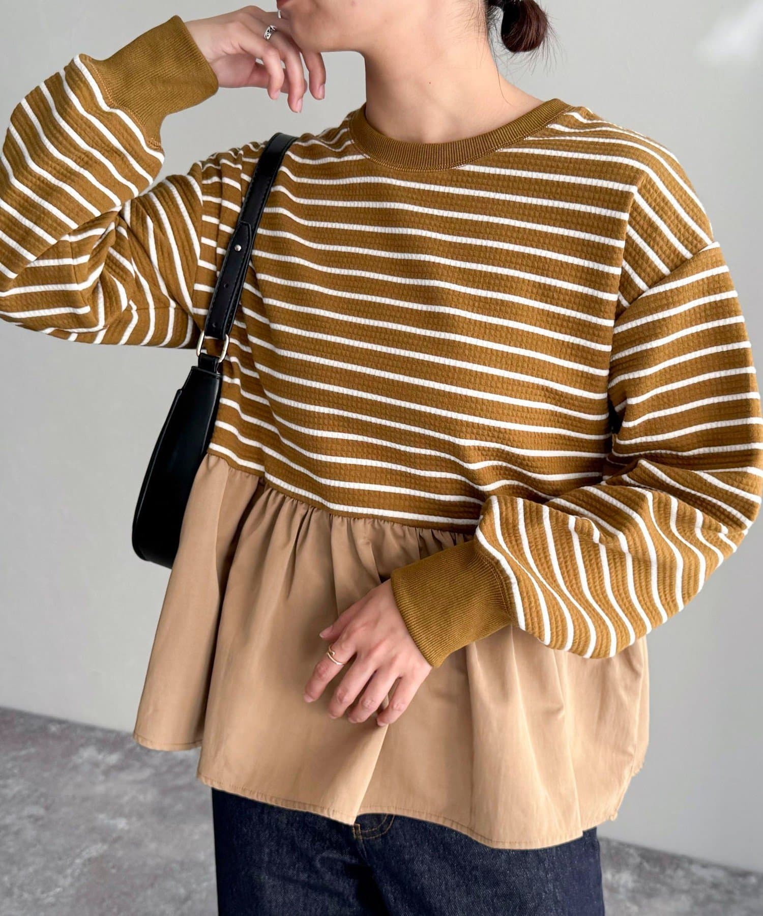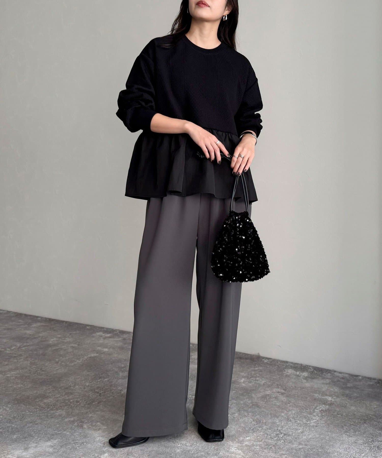 ・異素材のドッキングデザインがスタイリングにメリハリ感をプラスしてくれるプルオーバーです