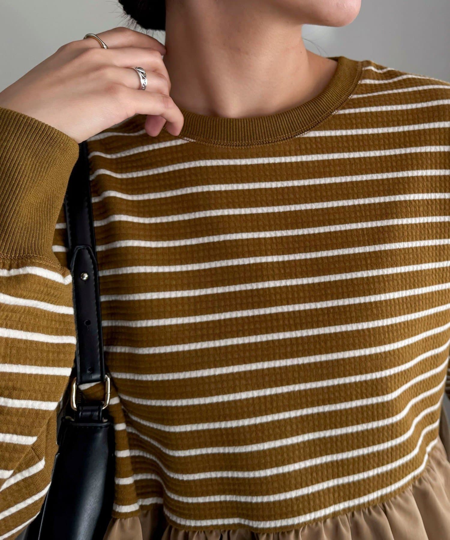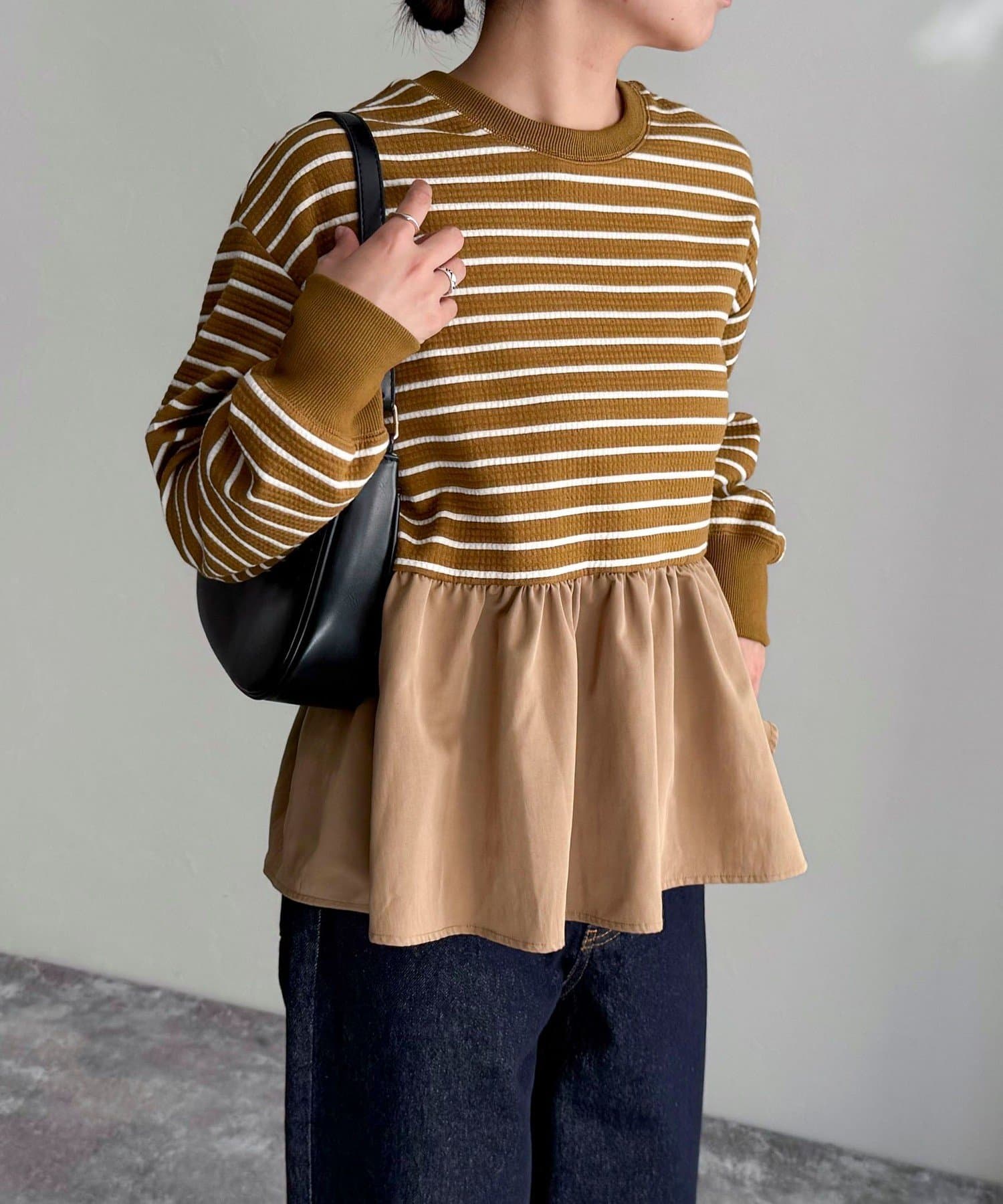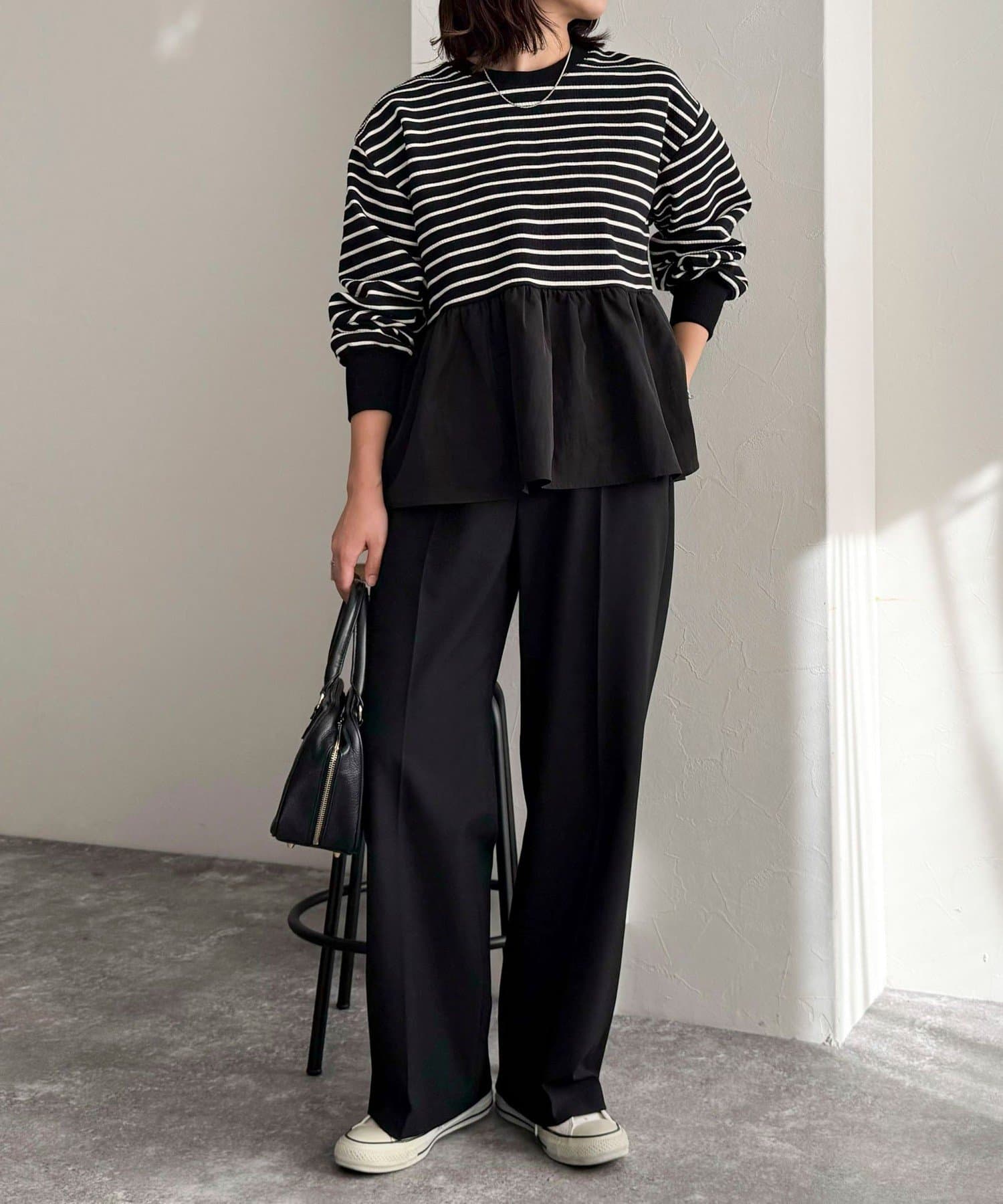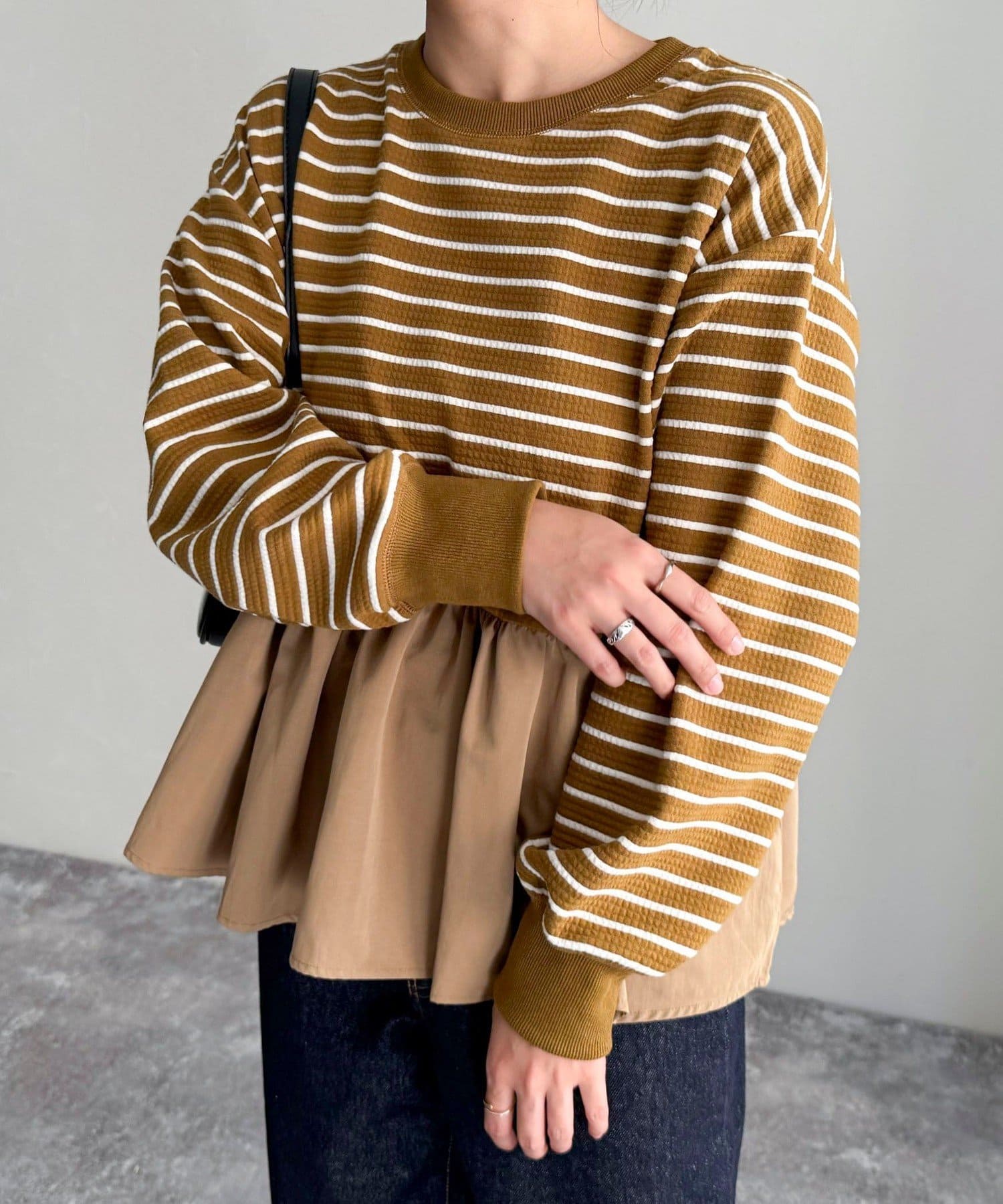 ・異素材のドッキングデザインがスタイリングにメリハリ感をプラスしてくれるプルオーバーです