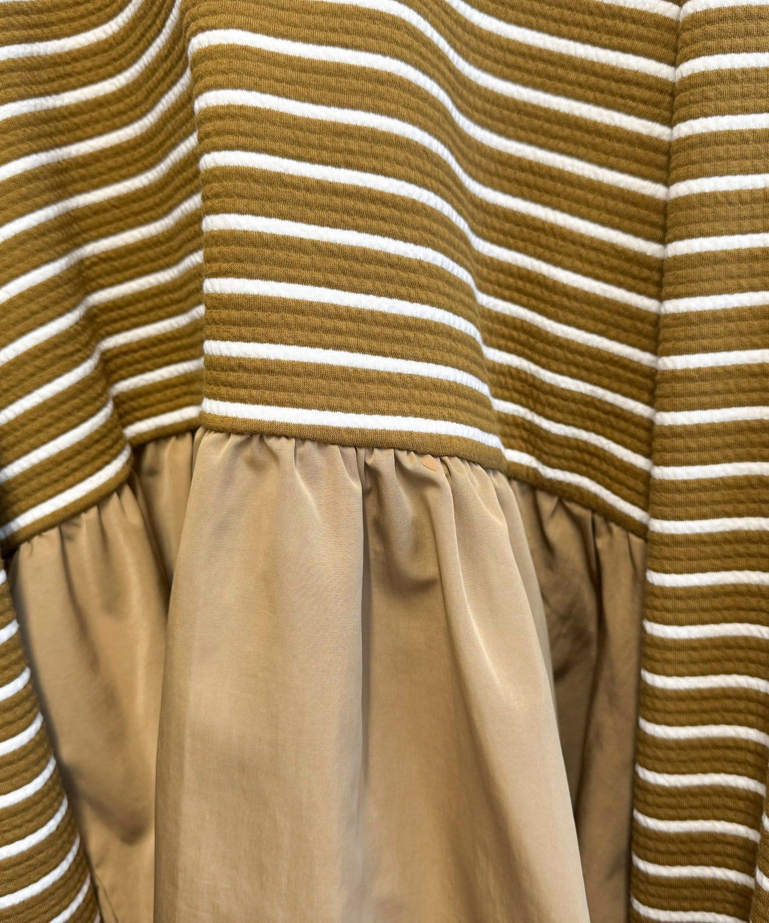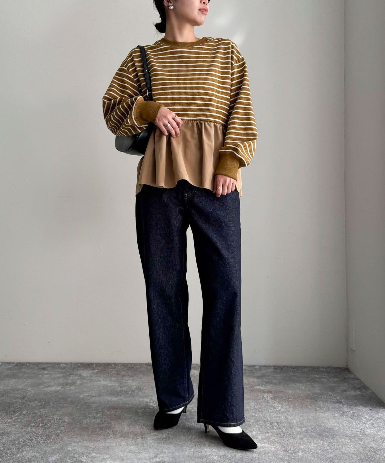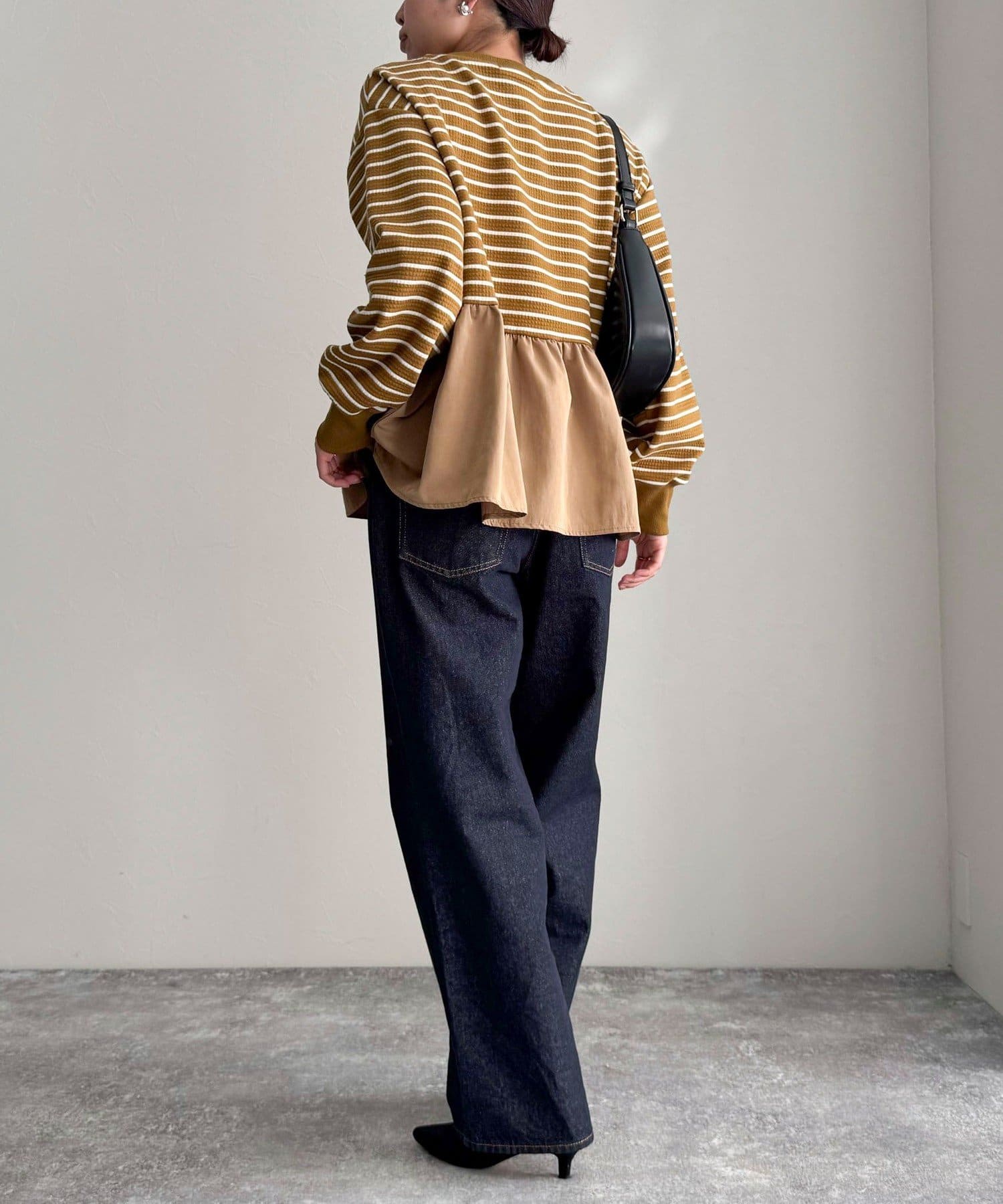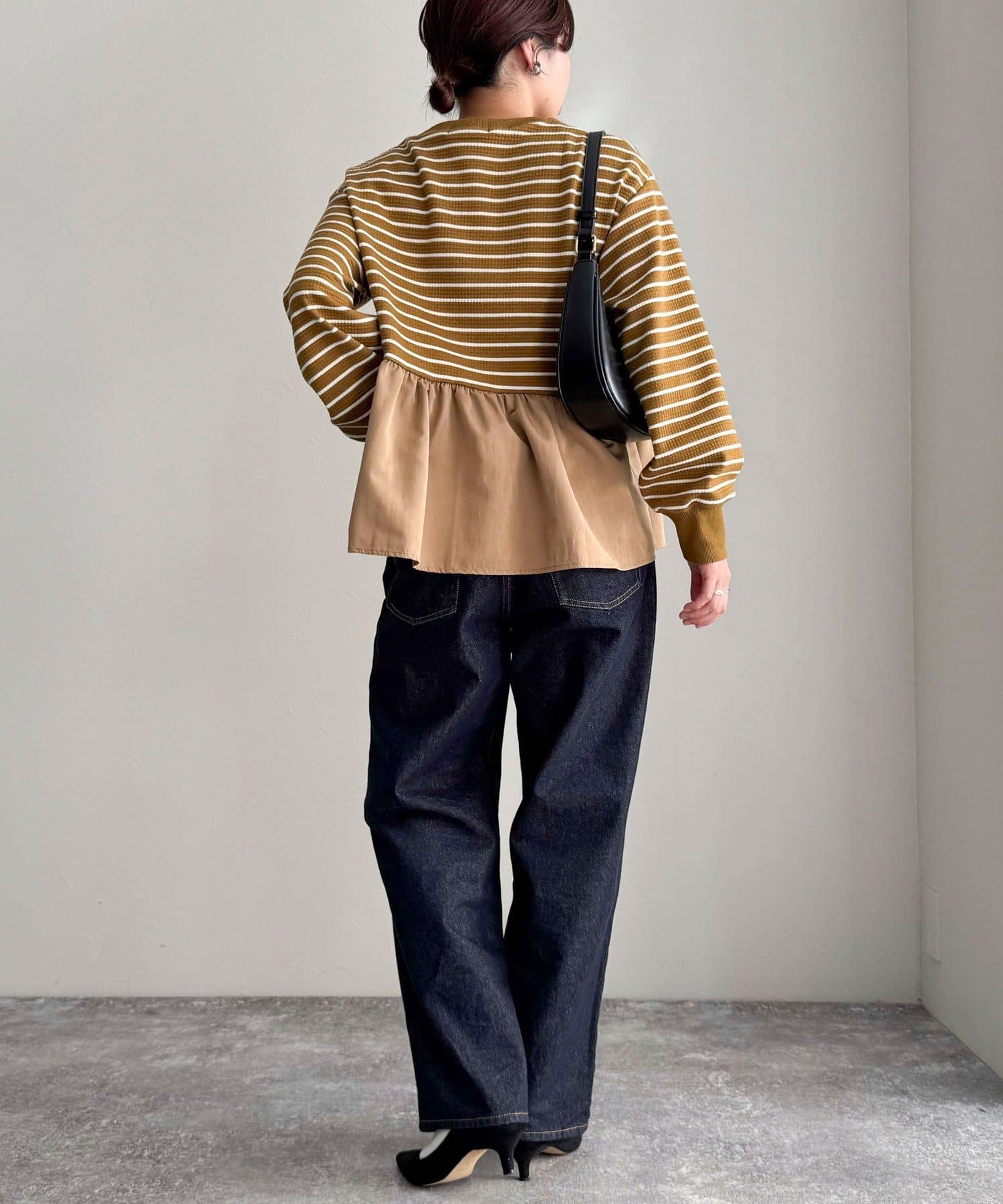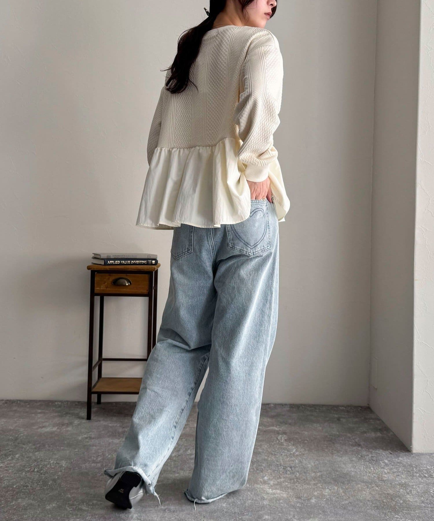 ・異素材のドッキングデザインがスタイリングにメリハリ感をプラスしてくれるプルオーバーです