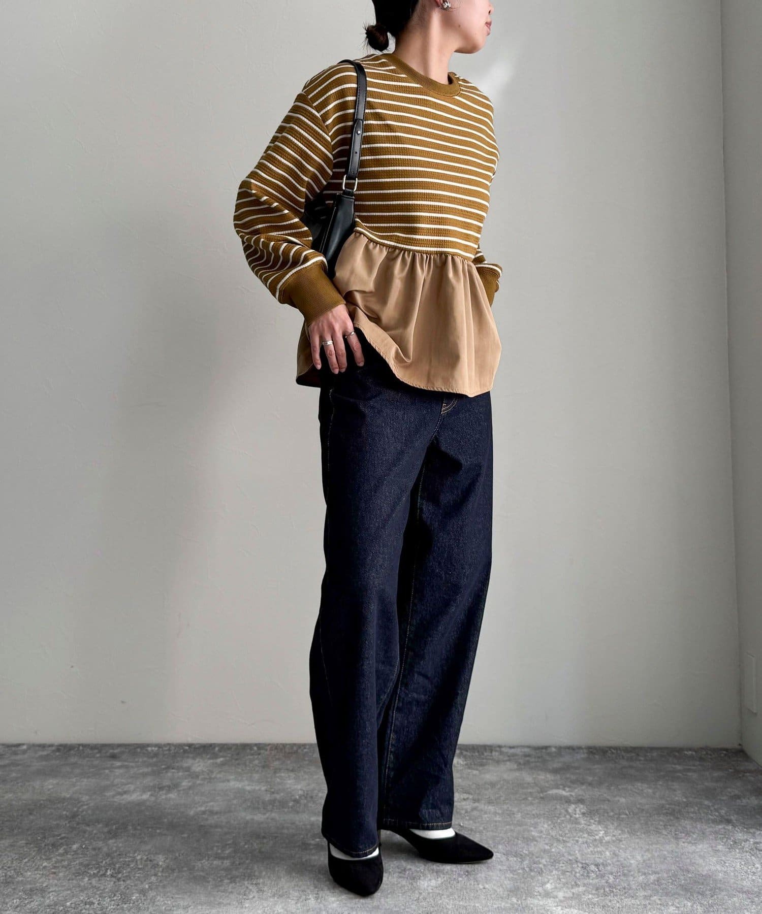 ・ウエストから切り替えたペプラムシルエットのデザインでスッキリ見えも叶います