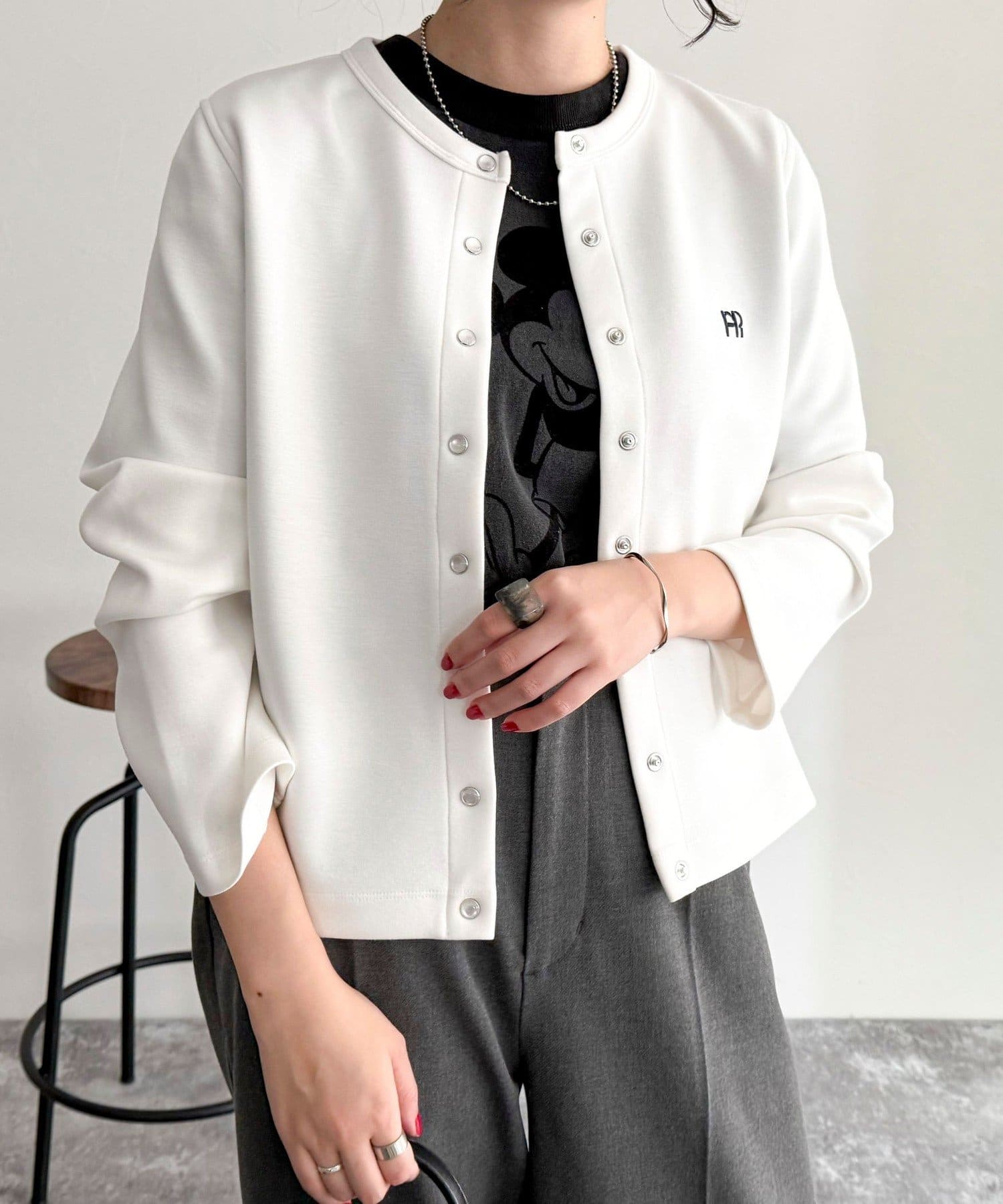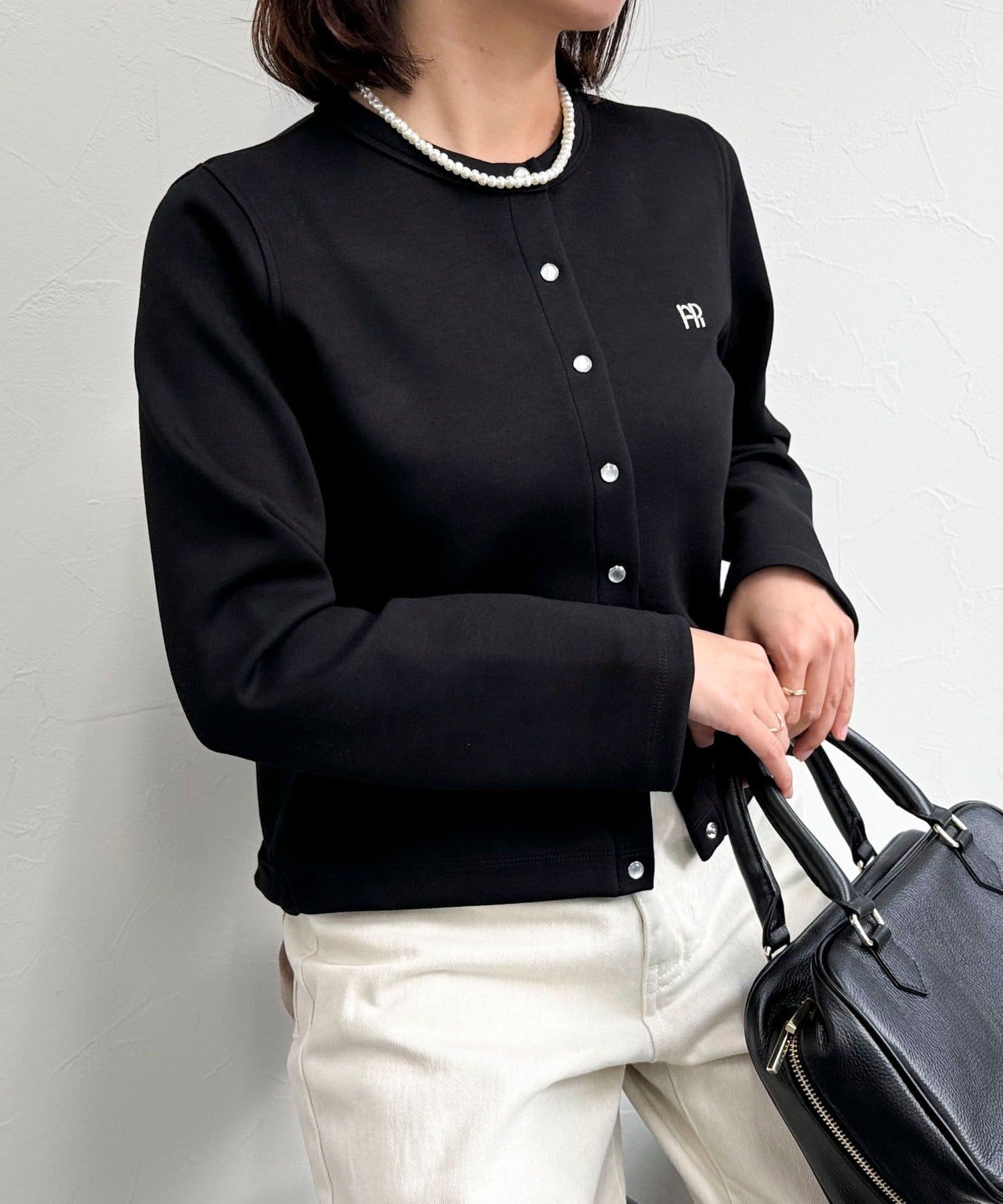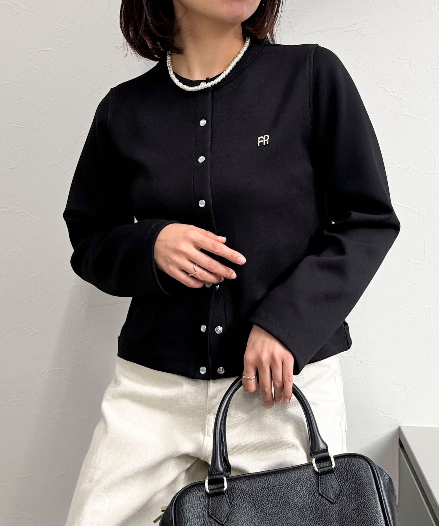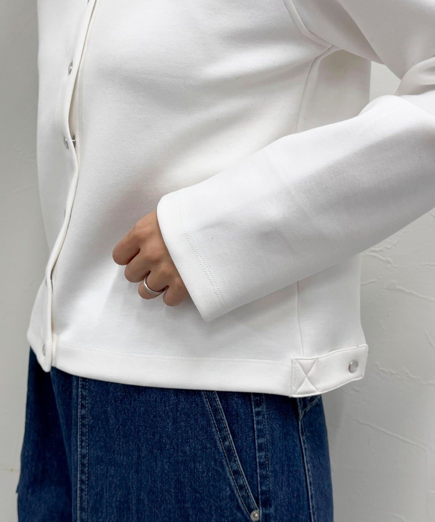 ・艶感のあるスナップ釦がポイントのカーディガンです