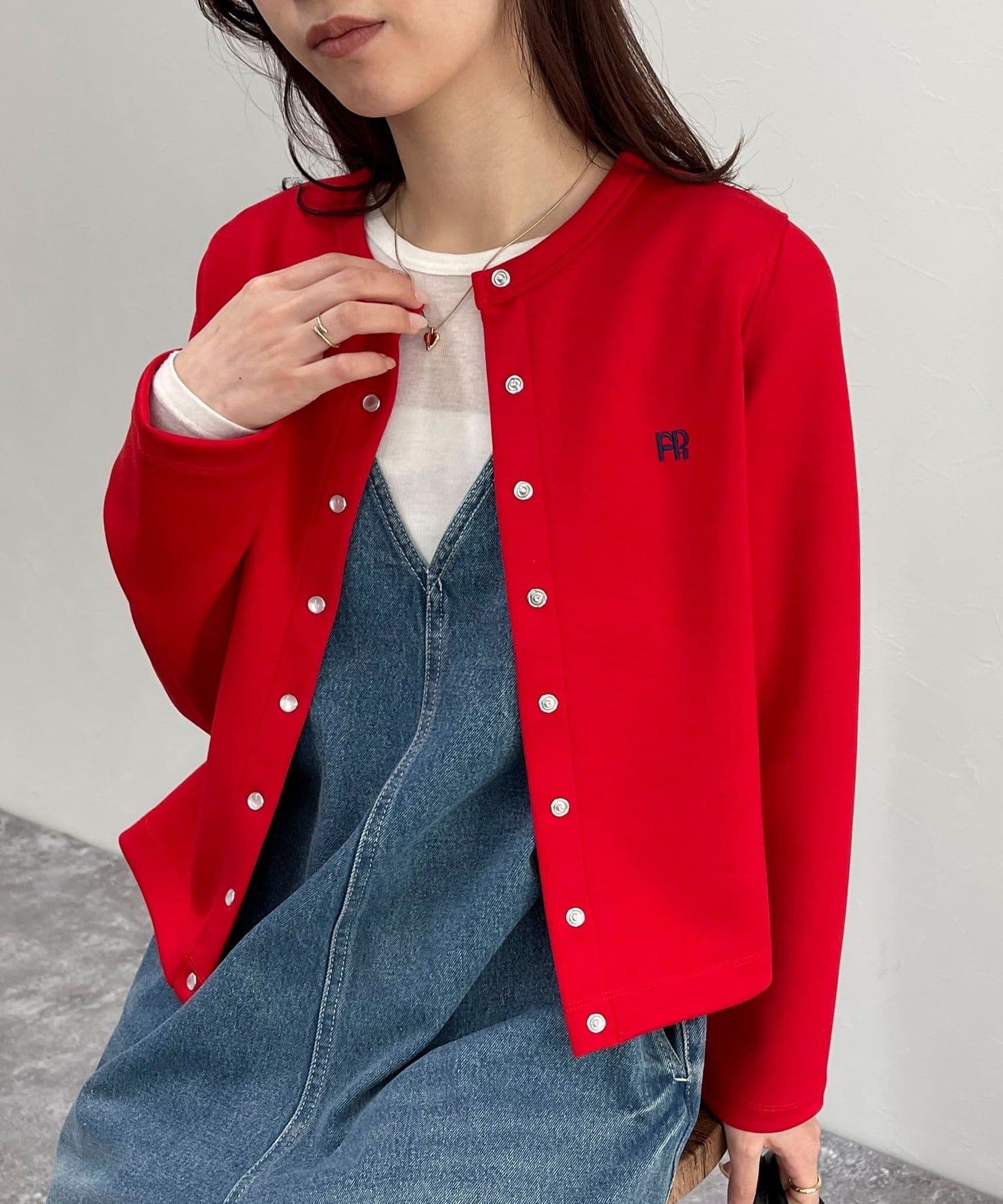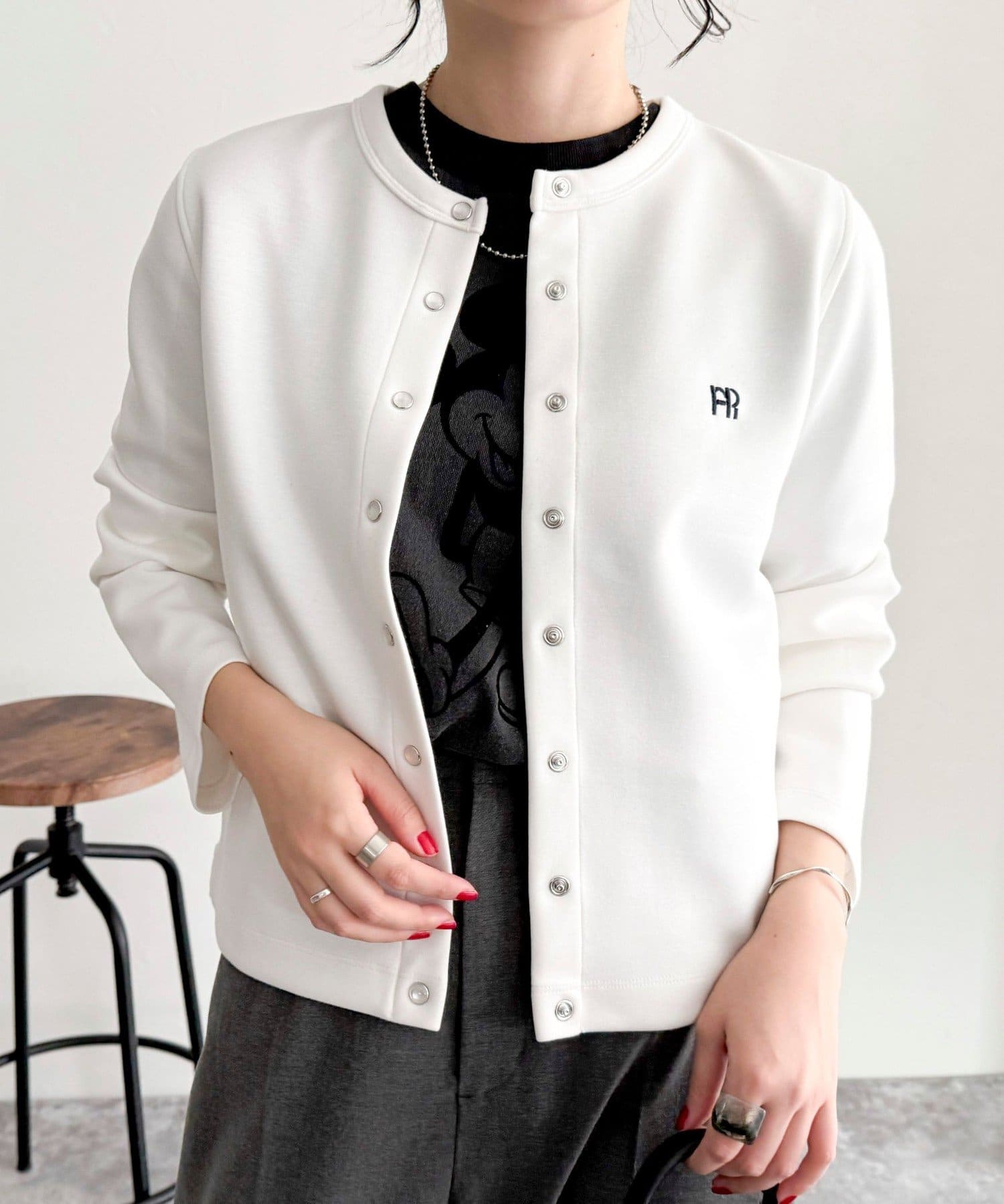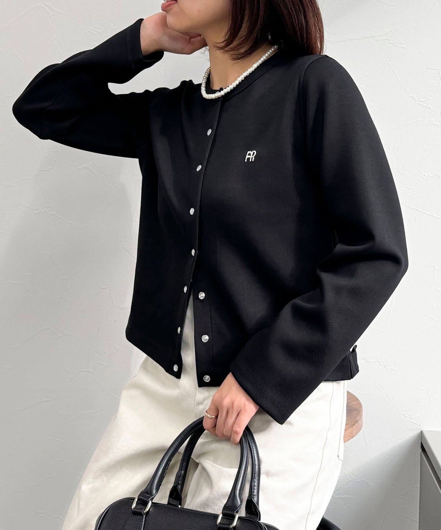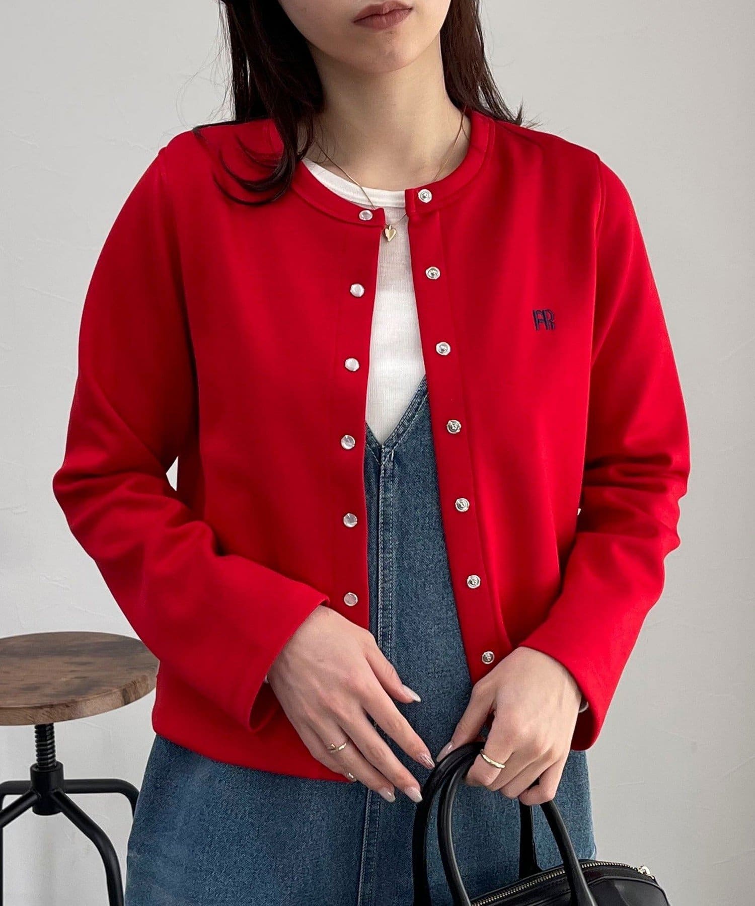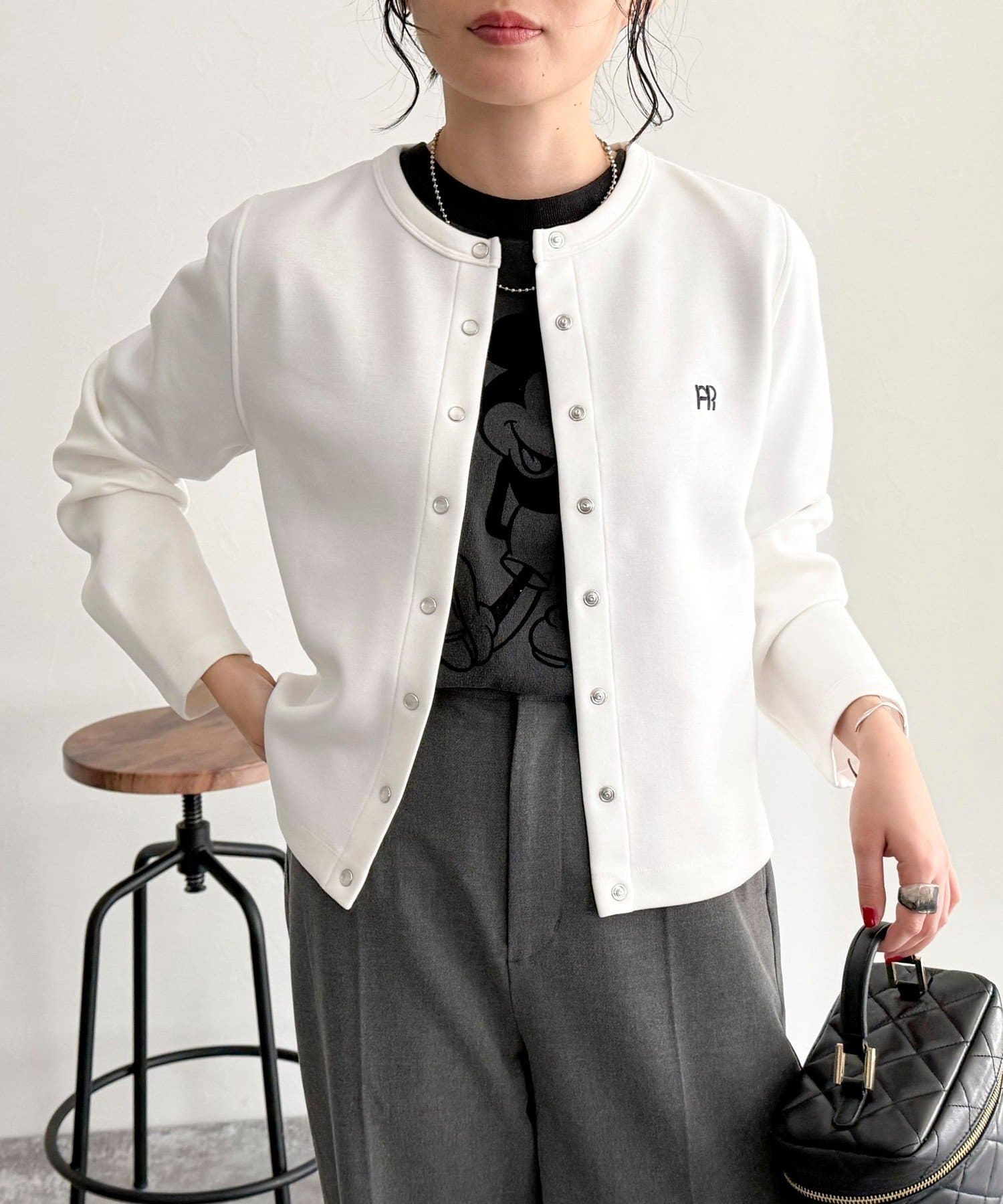 ・艶感のあるスナップ釦がポイントのカーディガンです