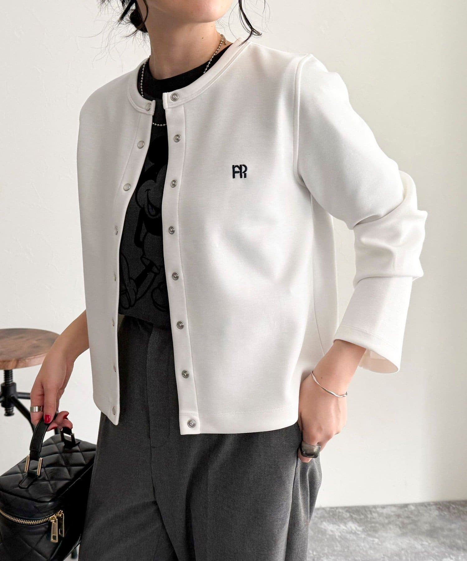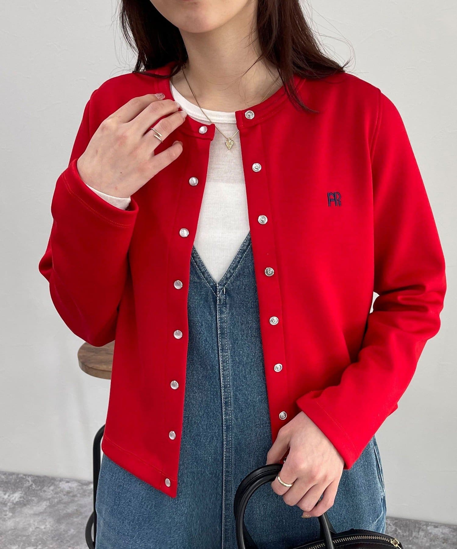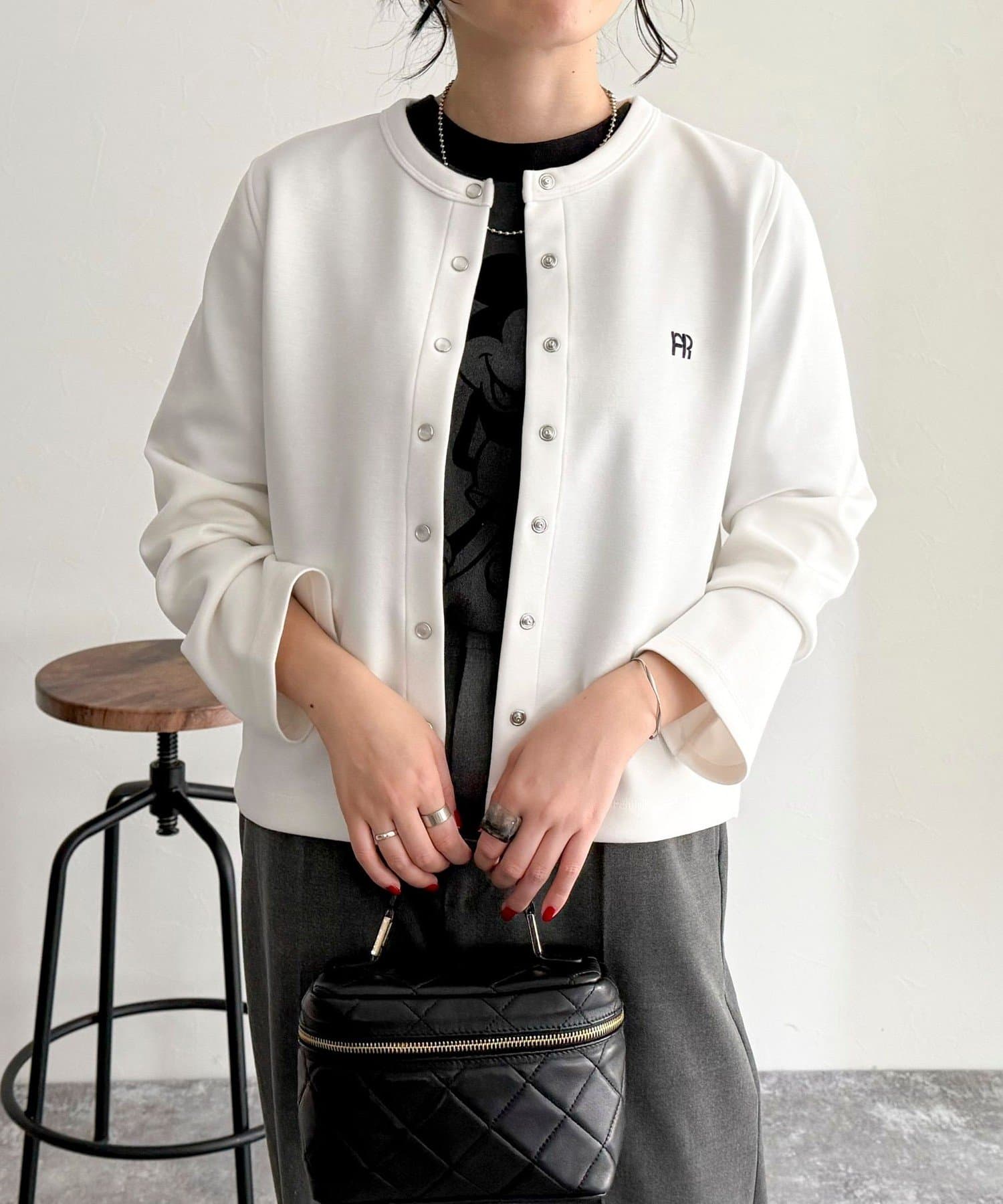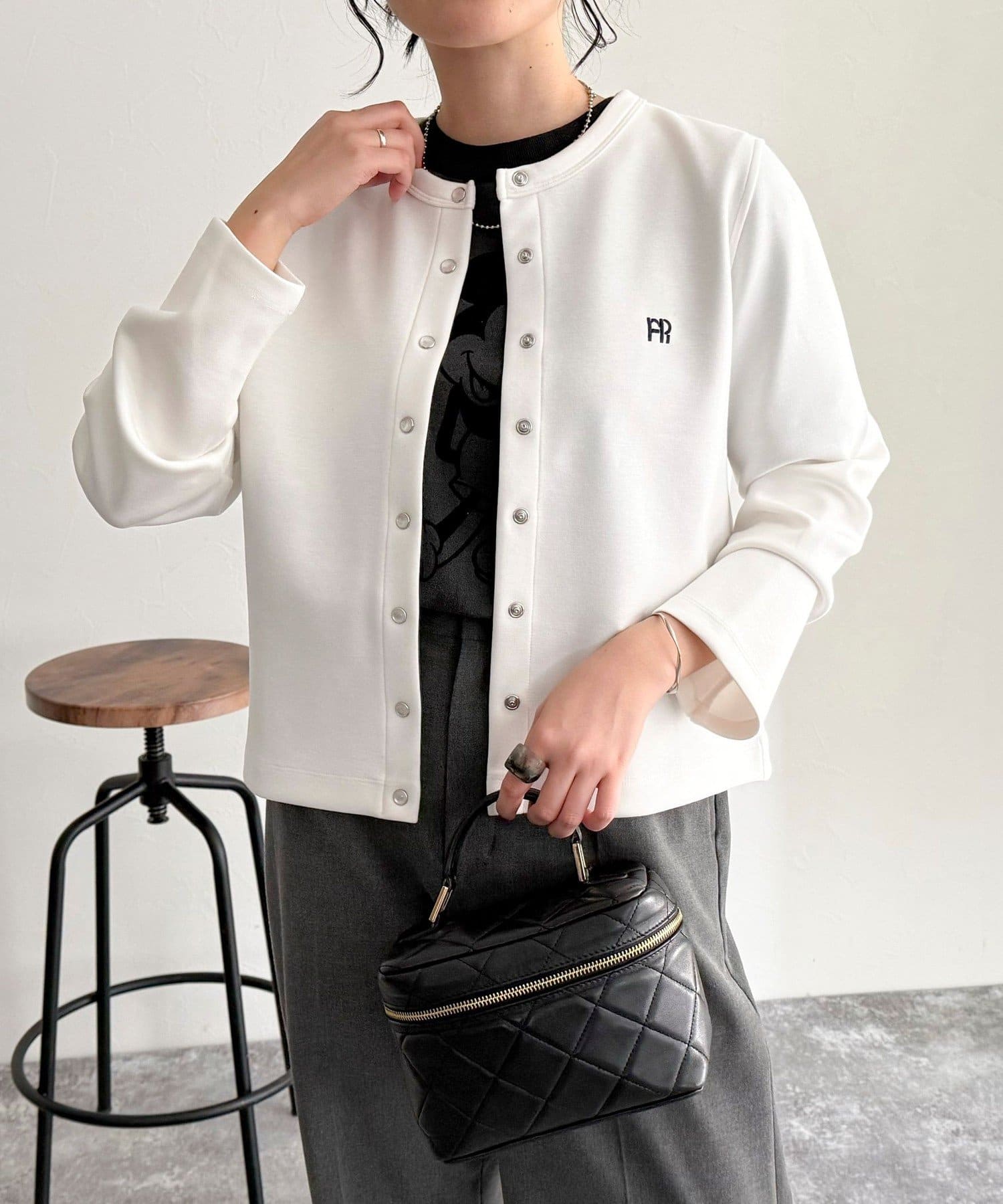 ・艶感のあるスナップ釦がポイントのカーディガンです
