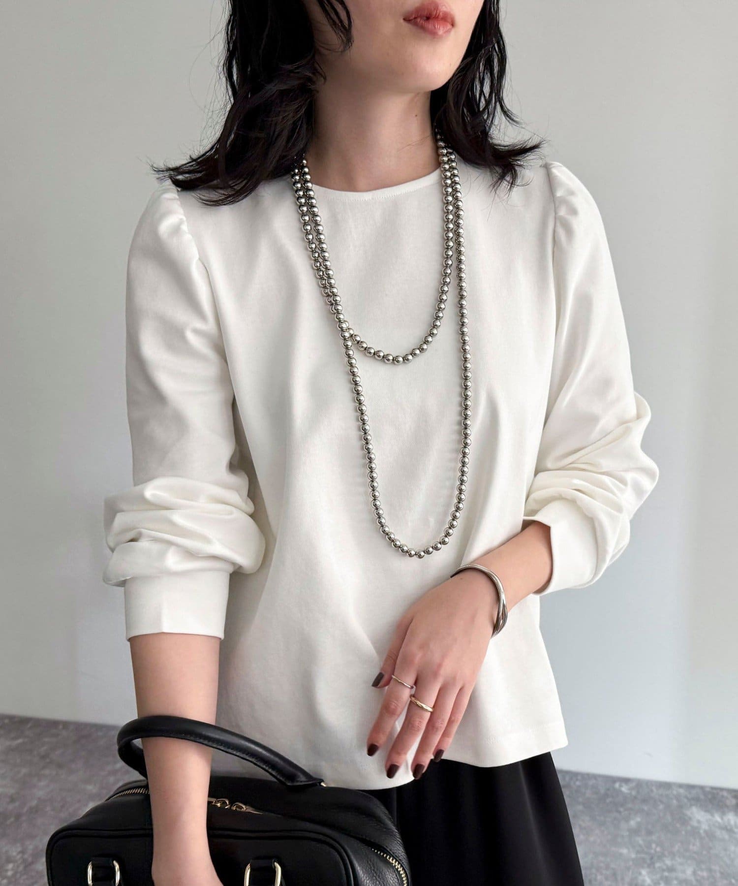 ・お袖のフワッとしたディティールがシンプルながらも女性らしさをプラスしてくれます