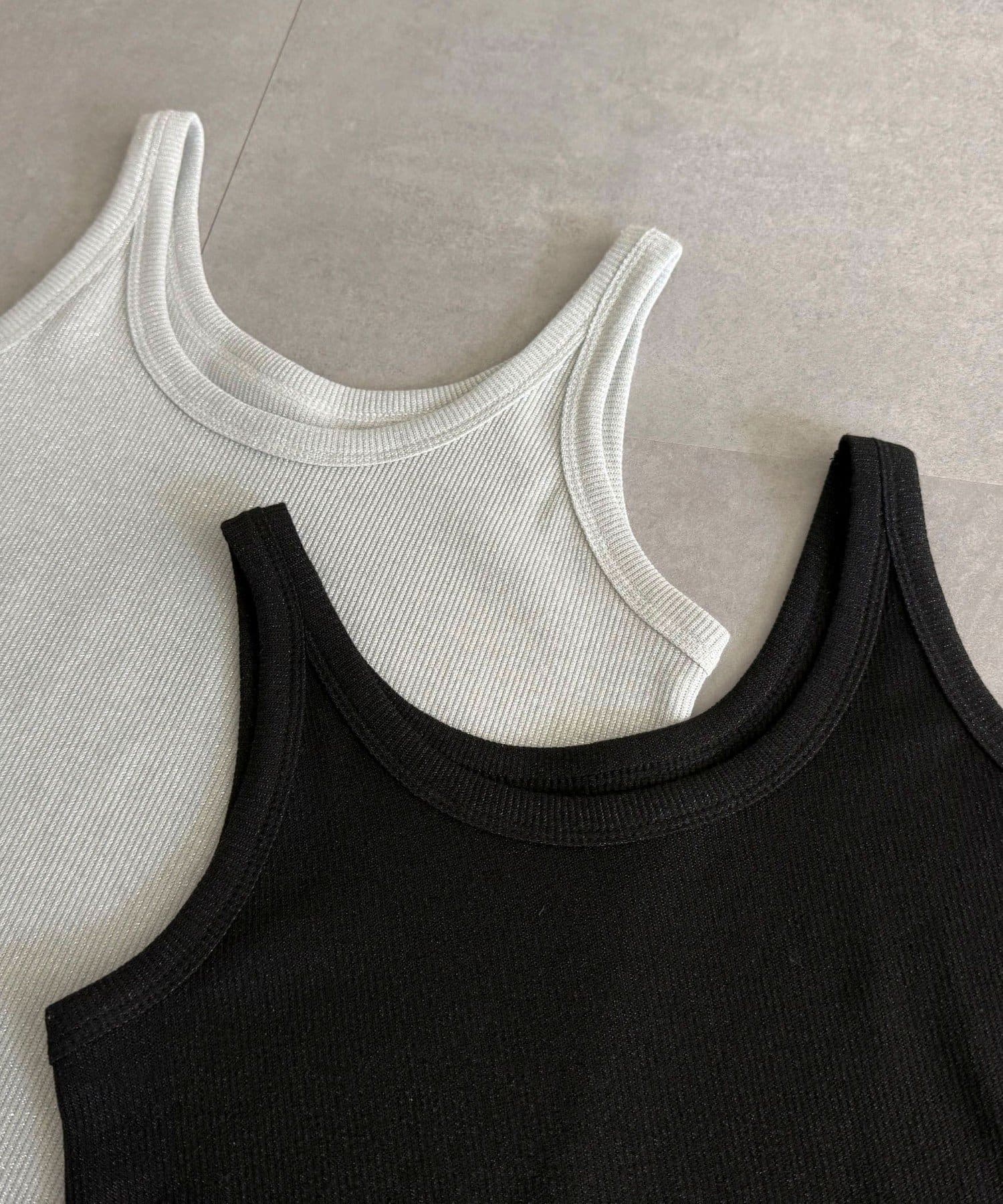レイヤードにオススメなラメリブタンクトップ