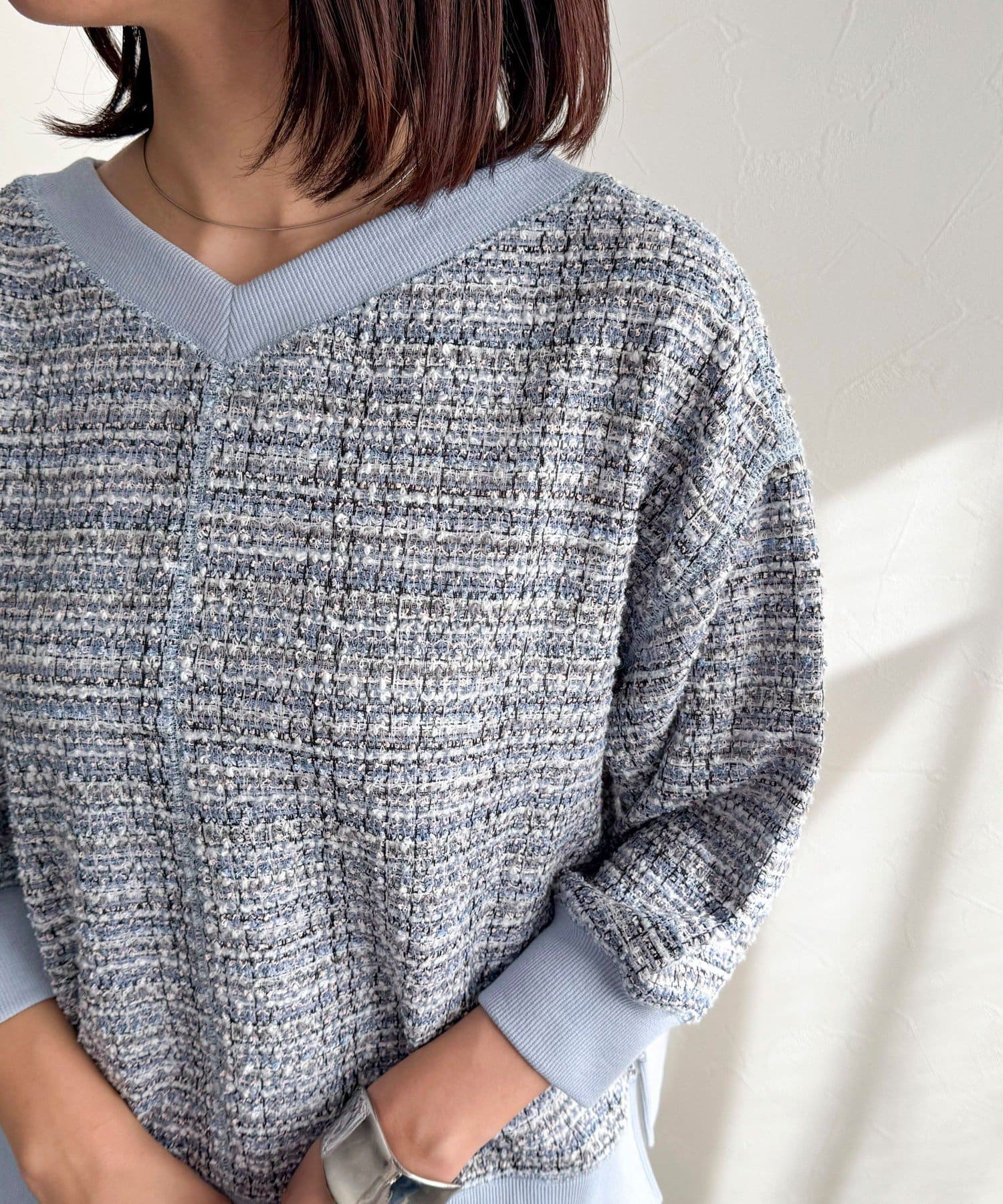 • FREDY & GLOSTER(フレディ アンド グロスター) 2WAYツイードプルオーバーカットソー