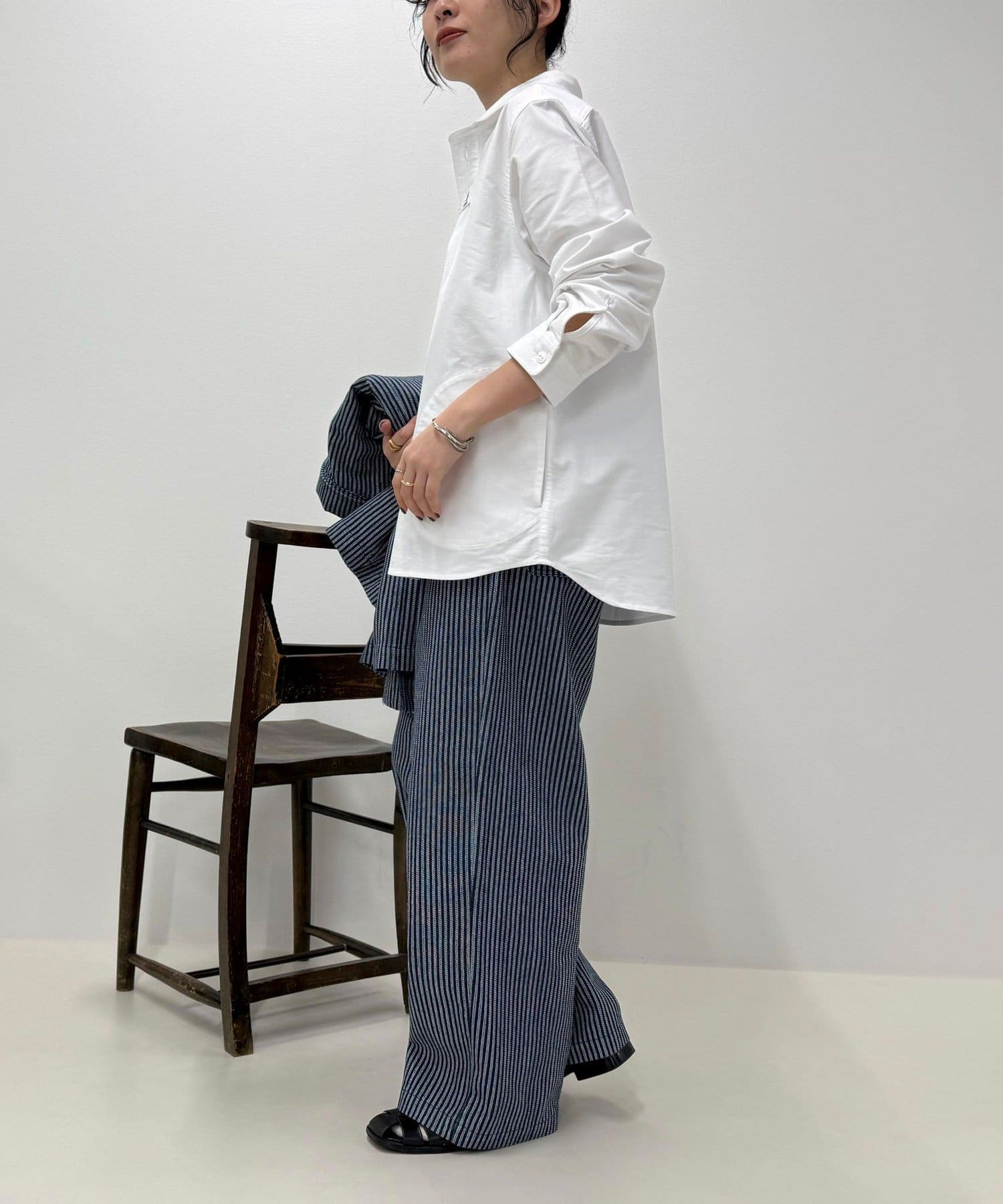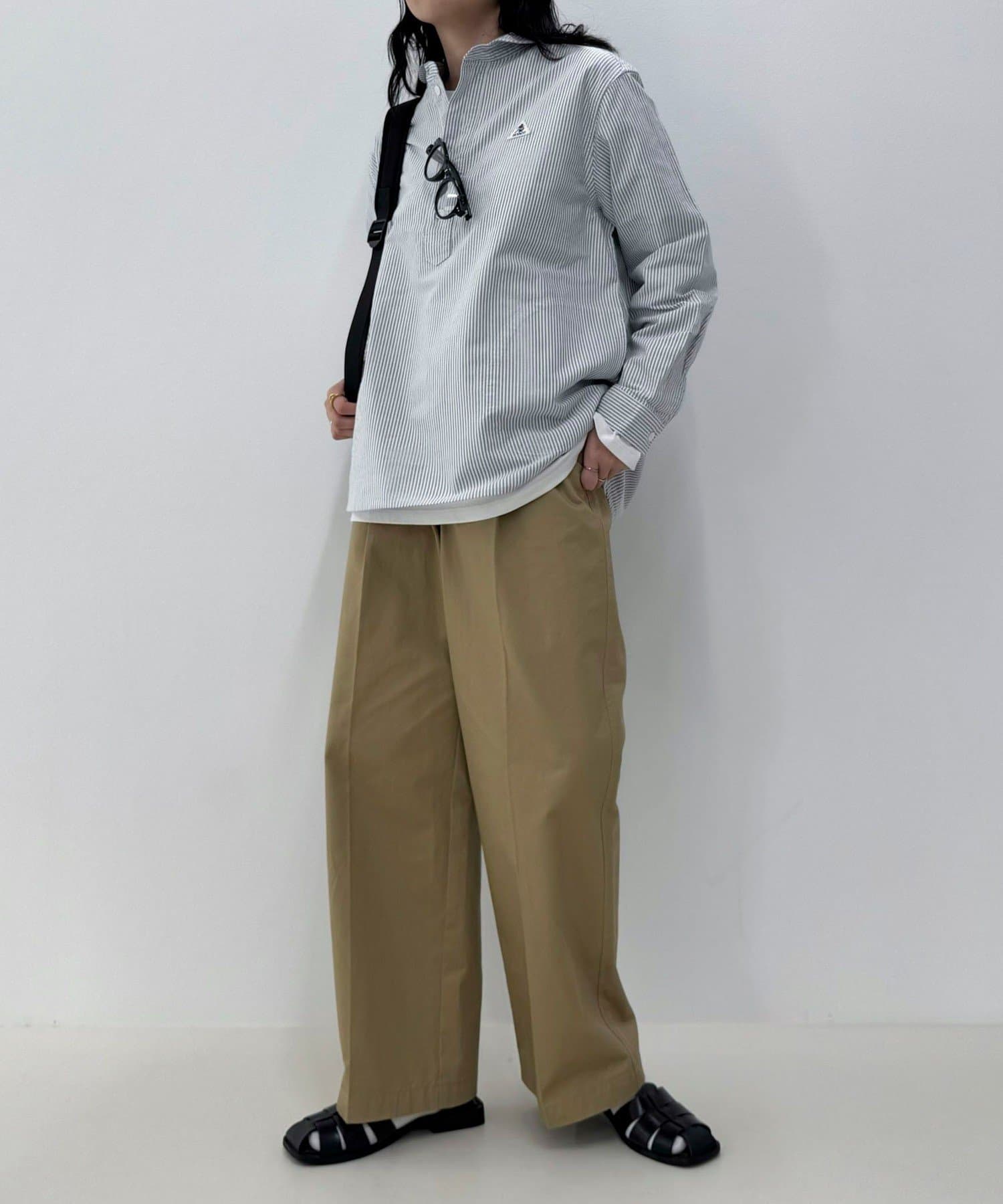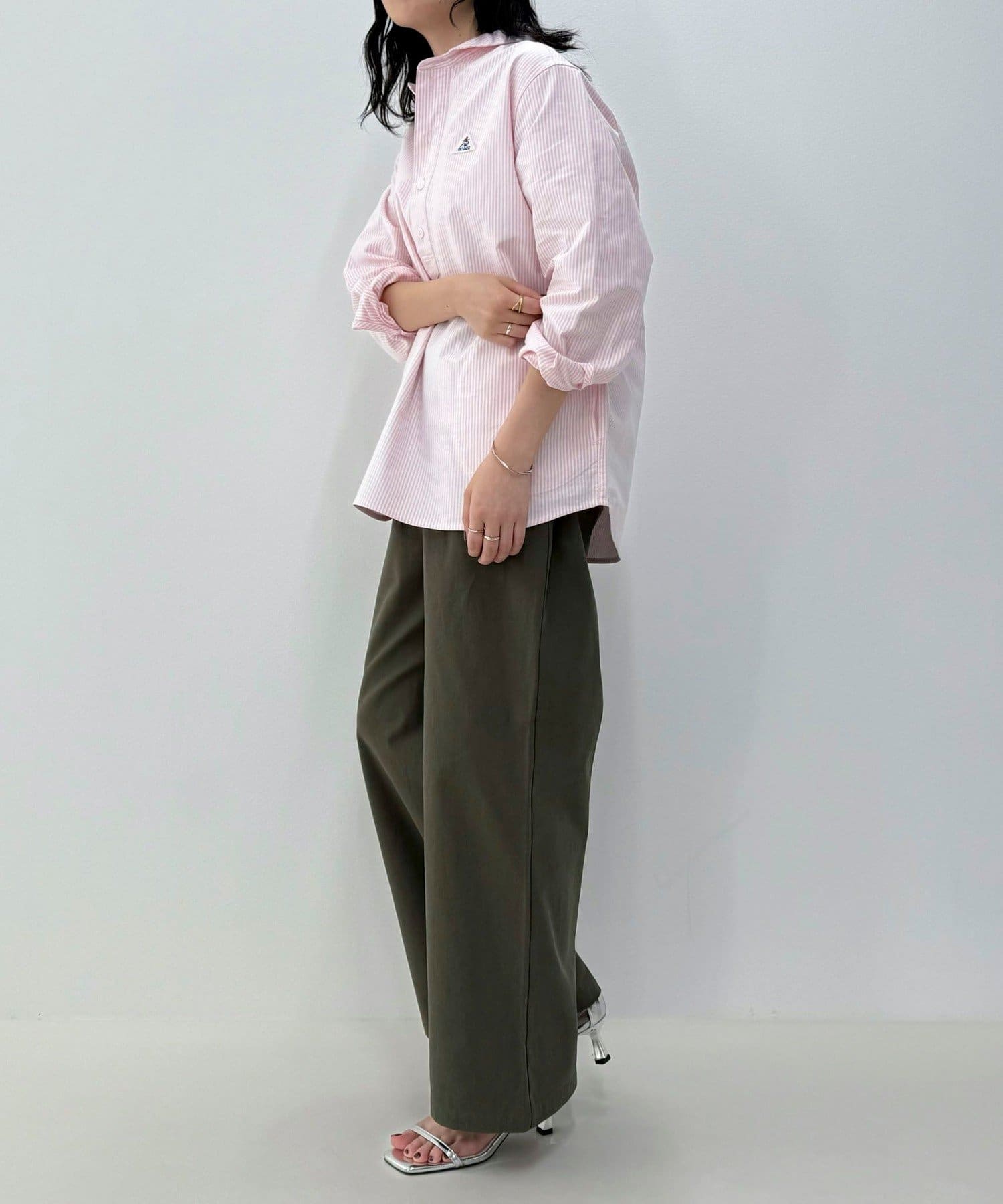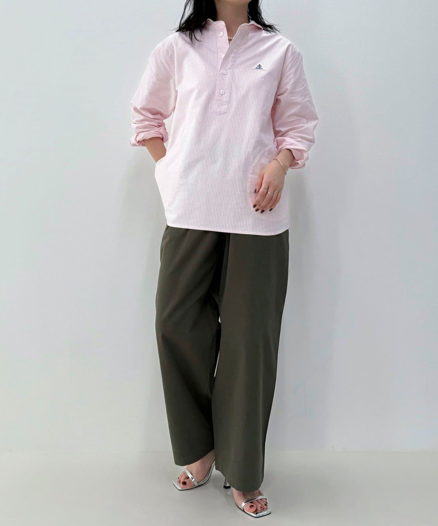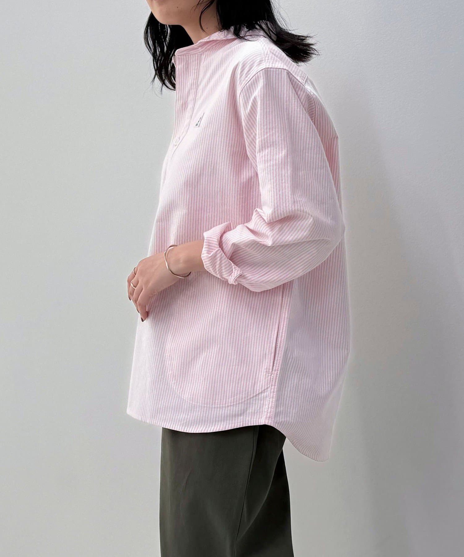 リラックス感ときちんと感を兼ね備えたプルオーバー丸襟シャツ