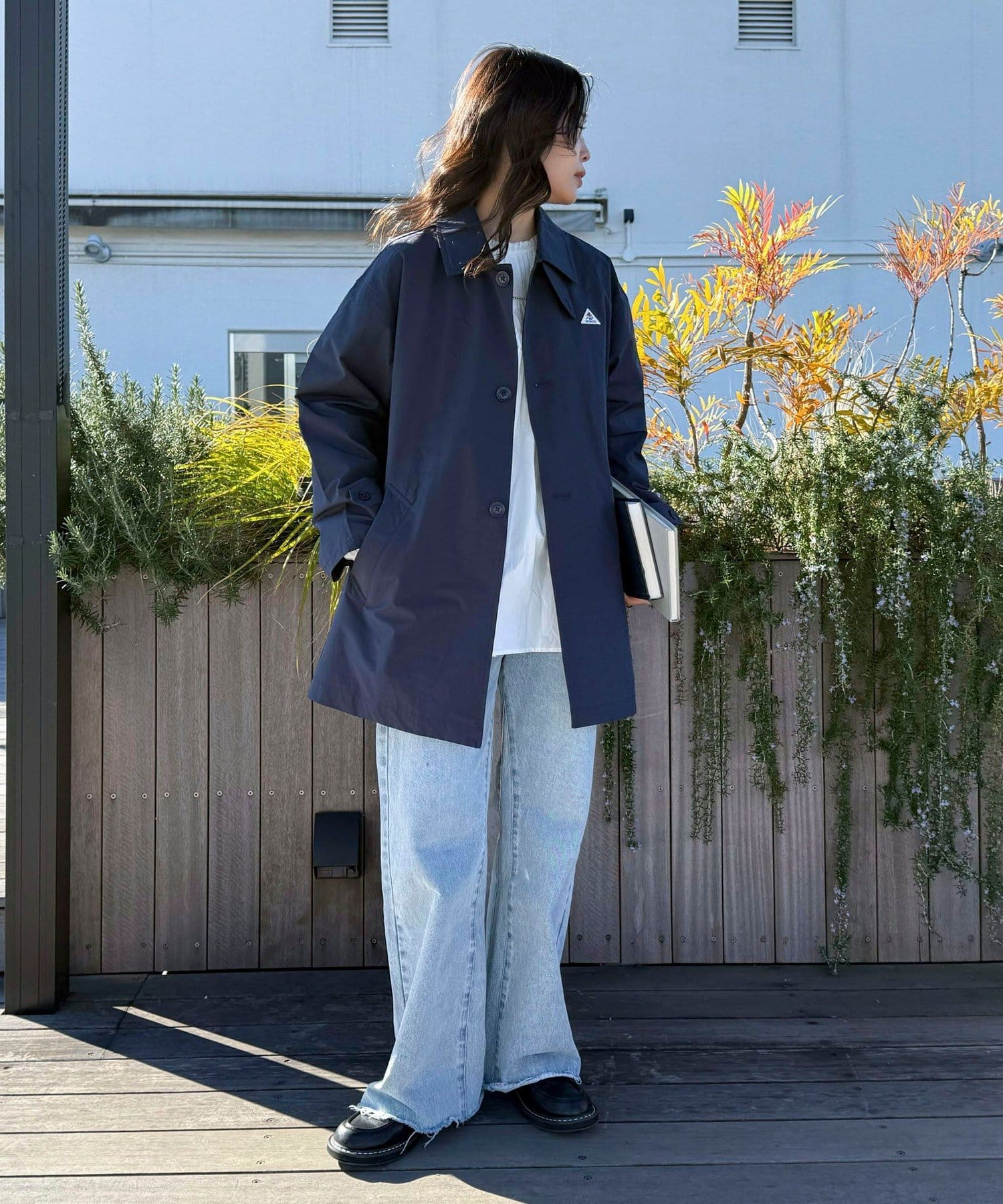 シンプルなデザインで着回しを楽しめるライトアウター
