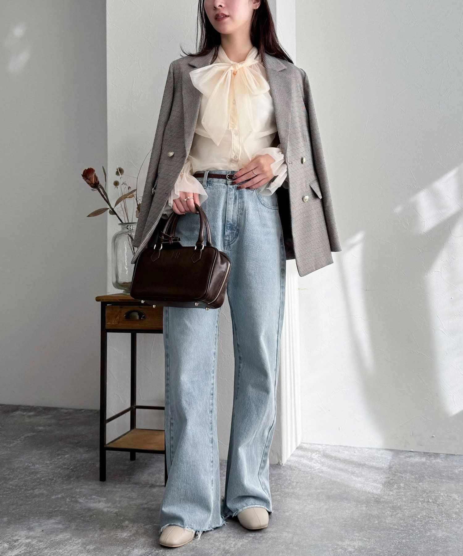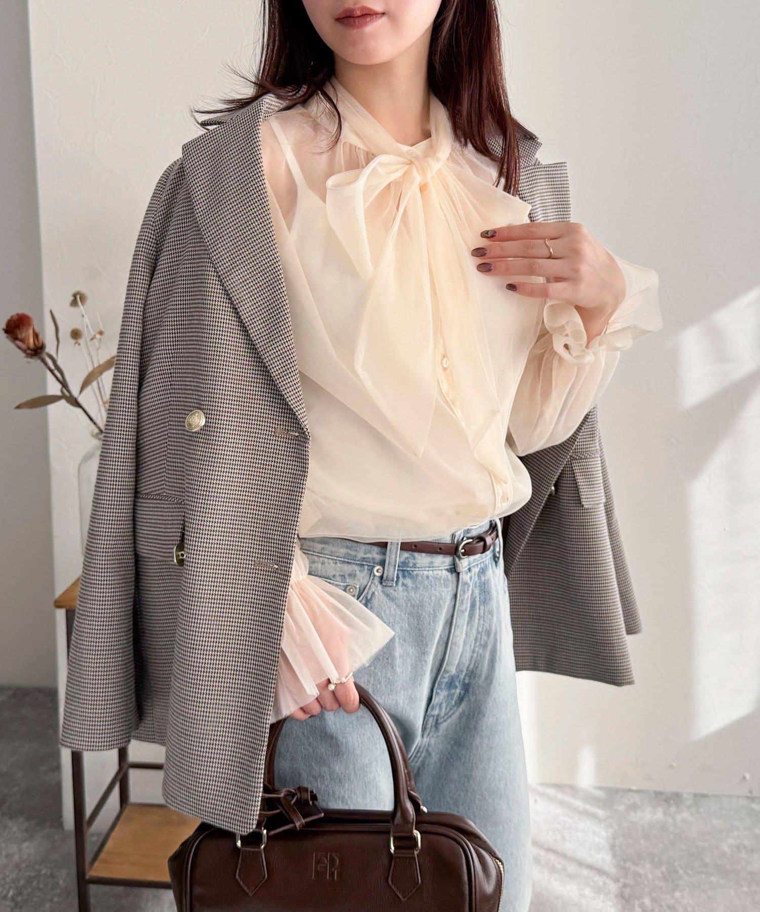 ・ボウタイを外すとシンプルなブラウスとしてキレイ目にも使えるのでオンオフお使いいただけます