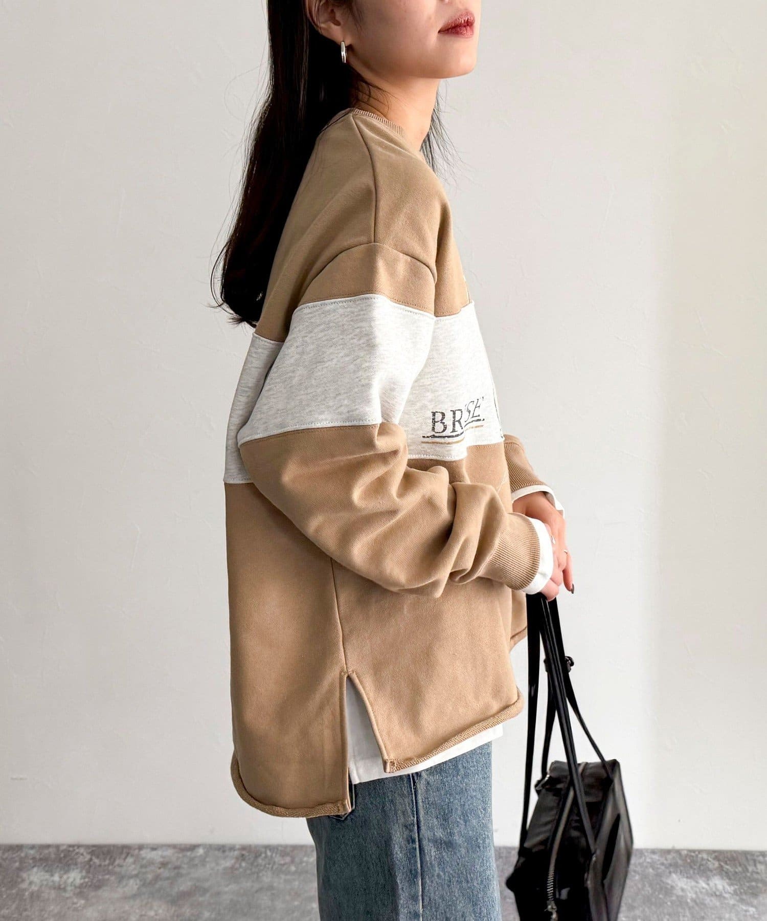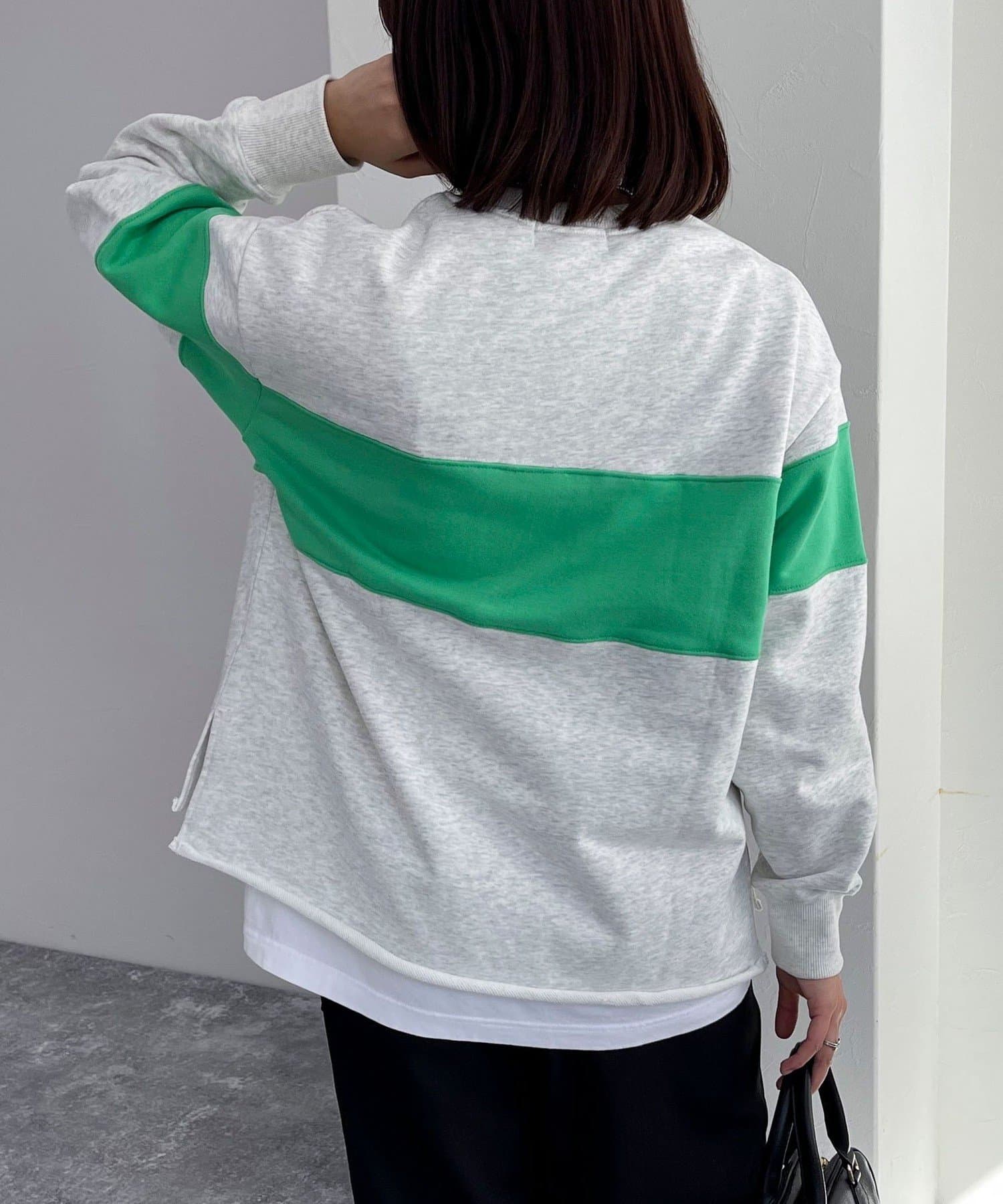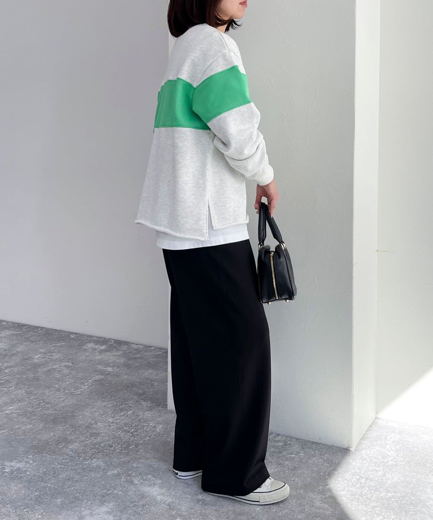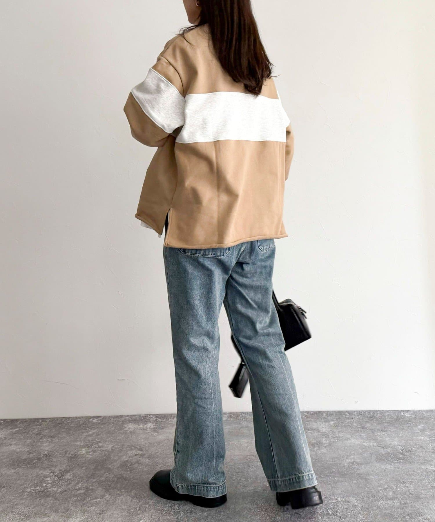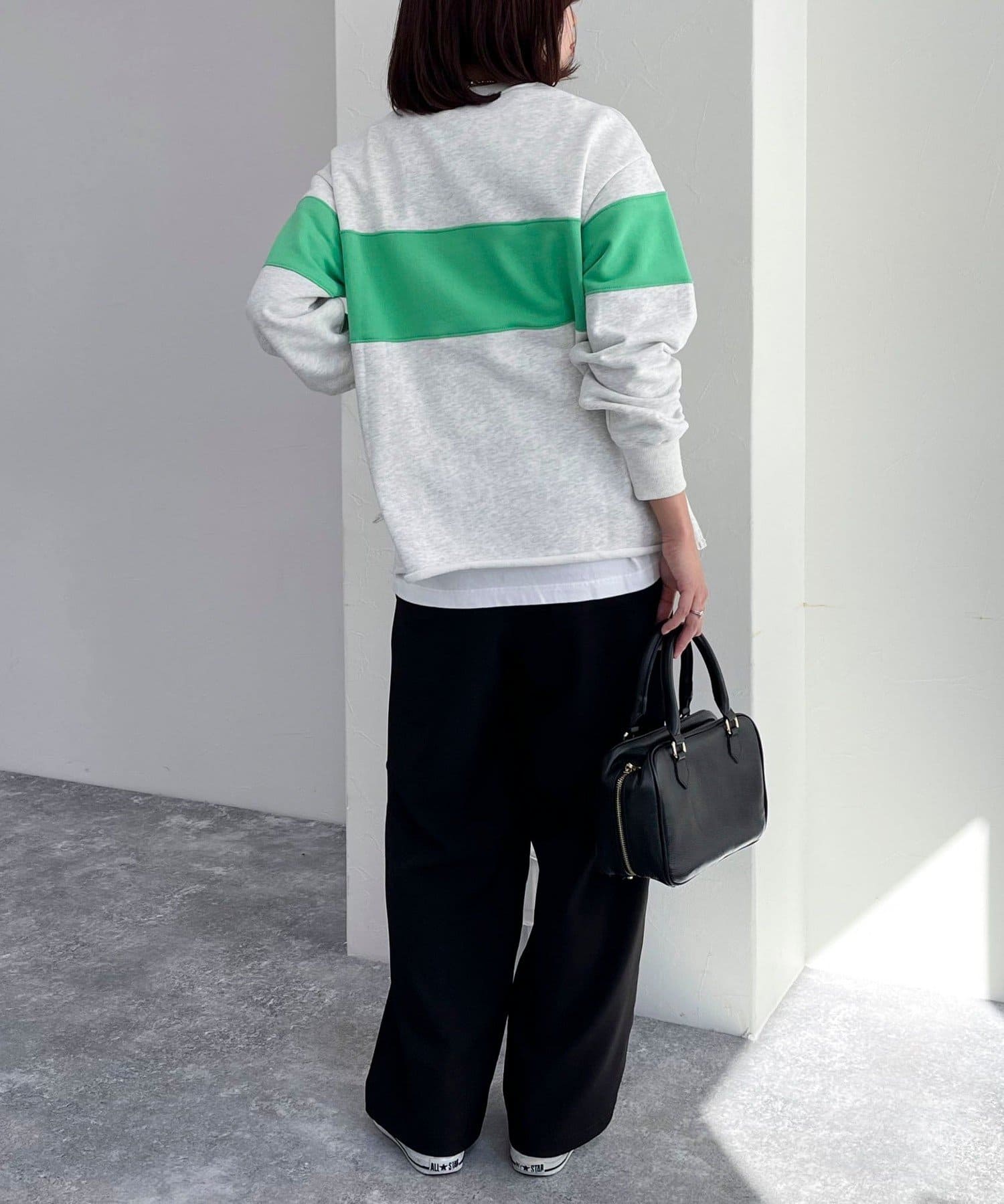・生地をつなぎ合わせたリメイク風のデザインがコーデの主役になるスウェットです