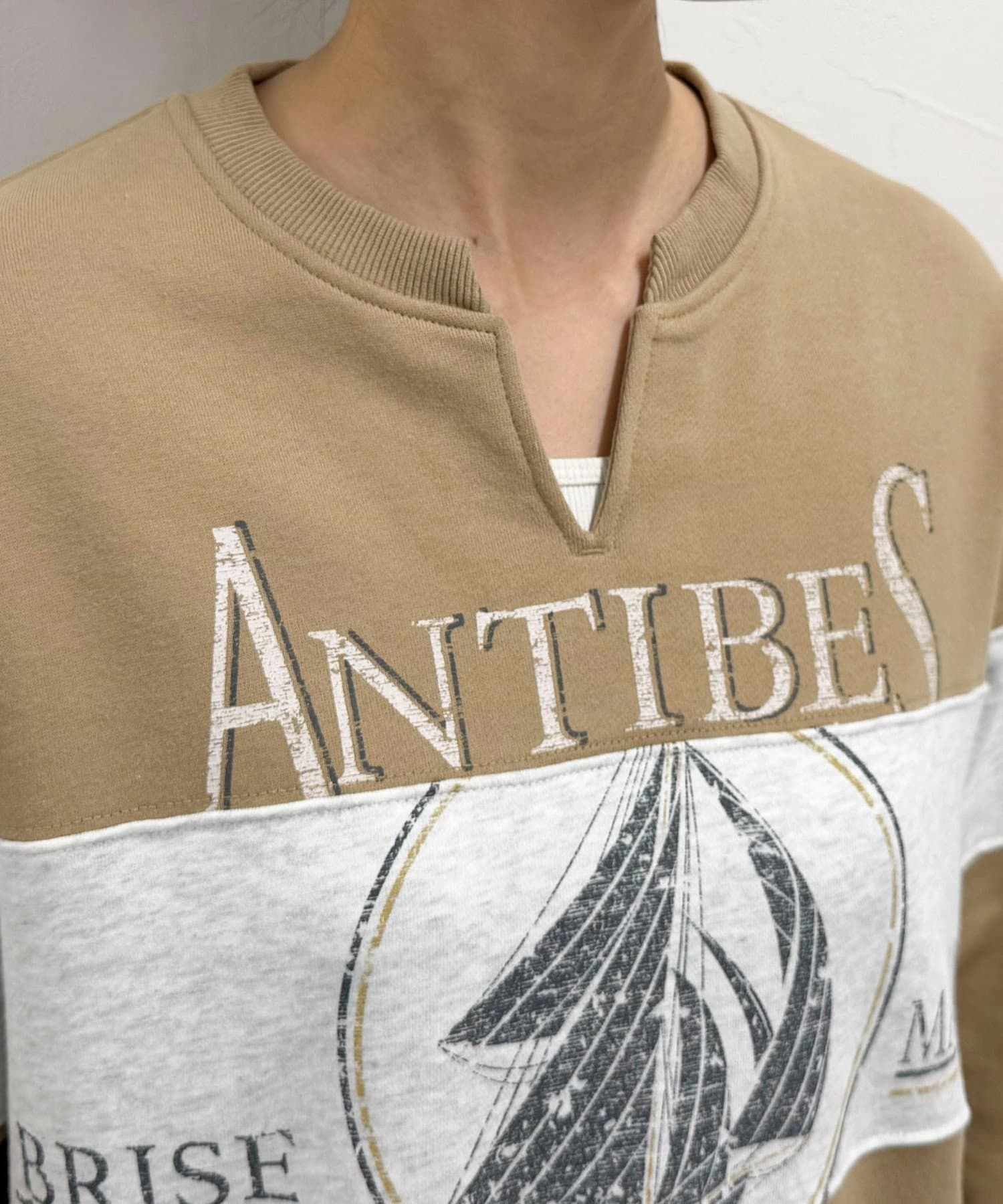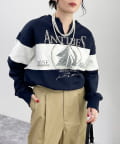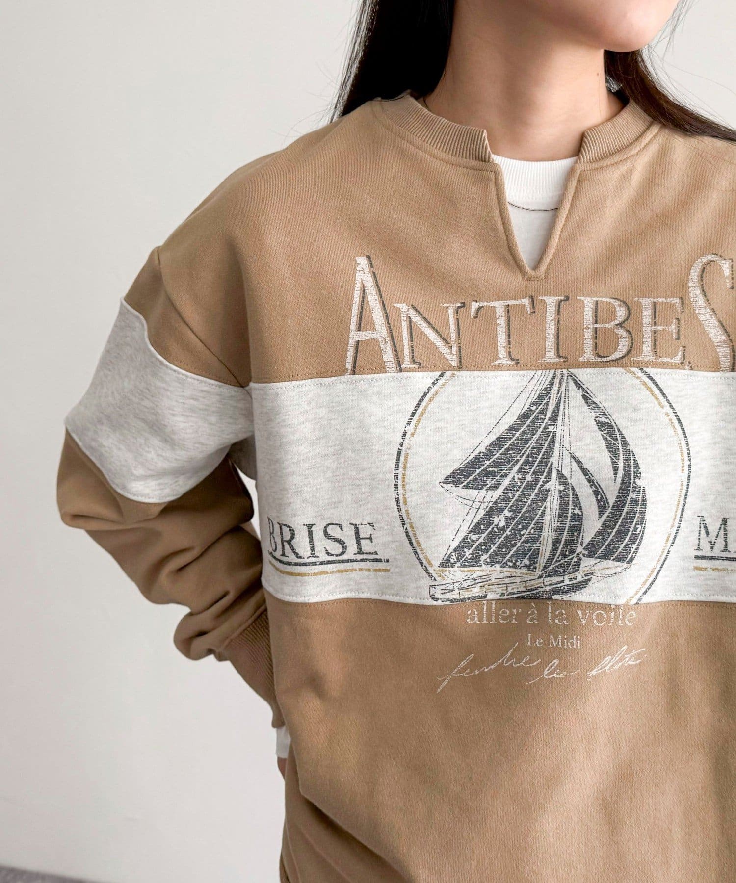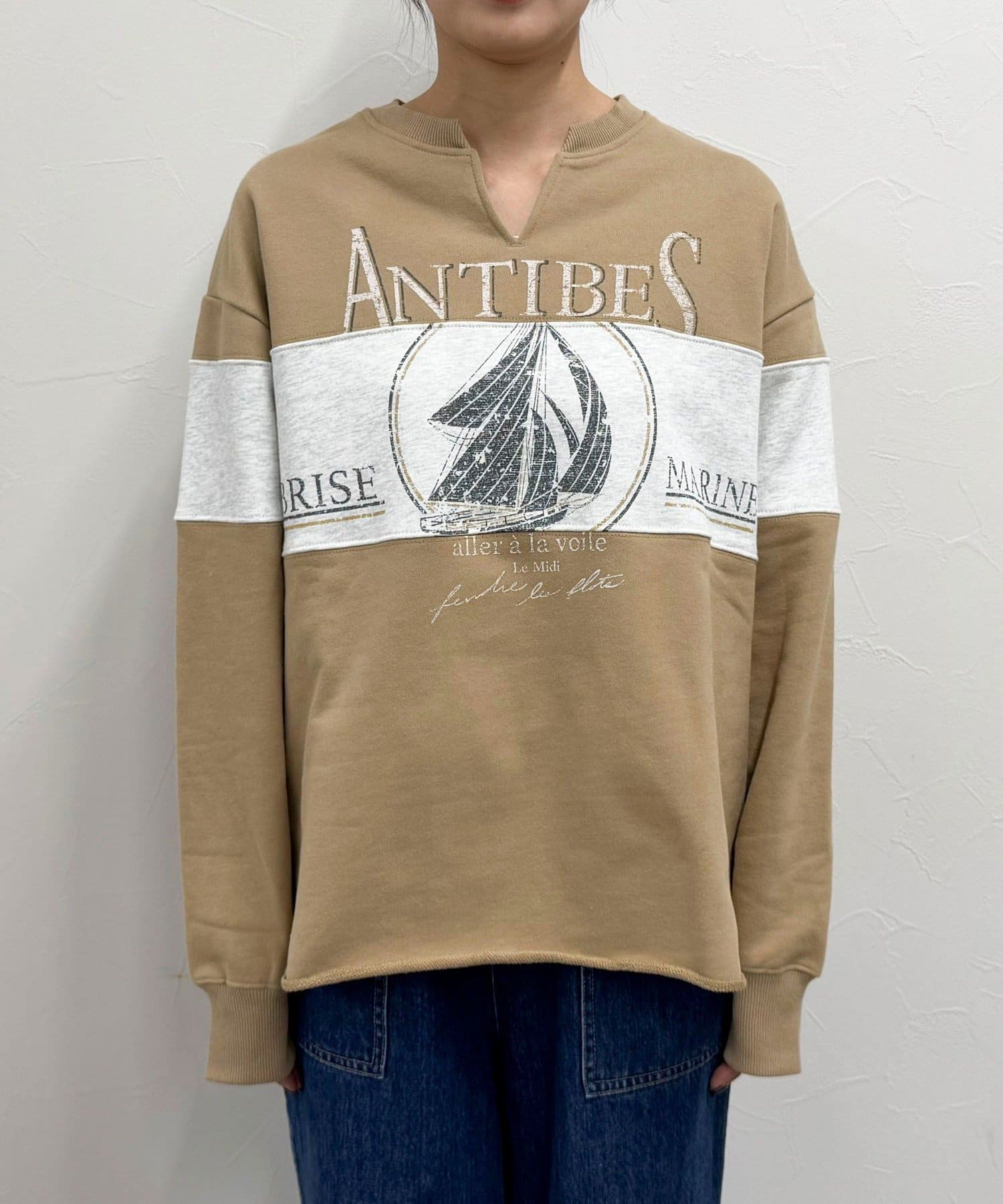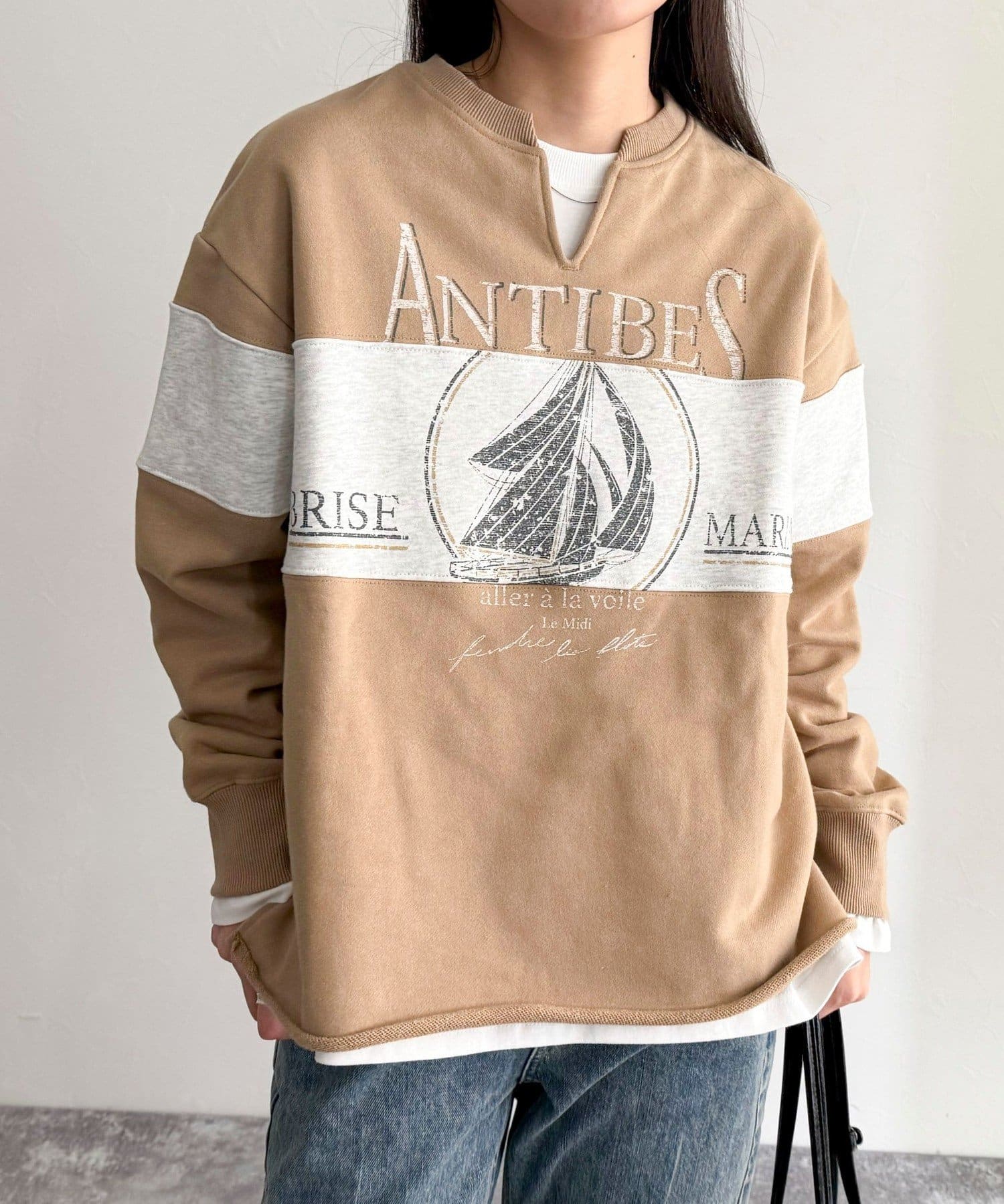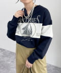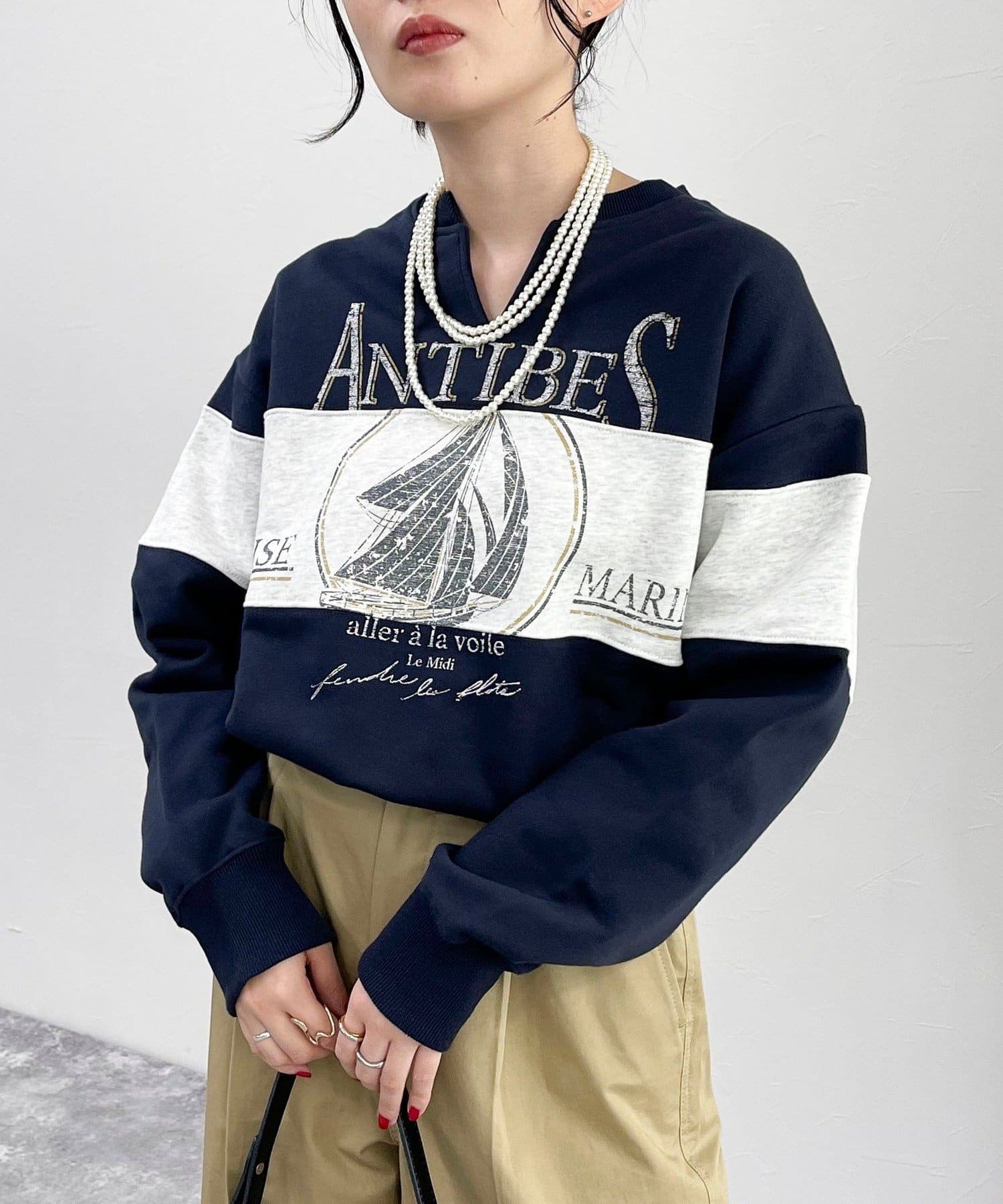 ・生地をつなぎ合わせたリメイク風のデザインがコーデの主役になるスウェットです