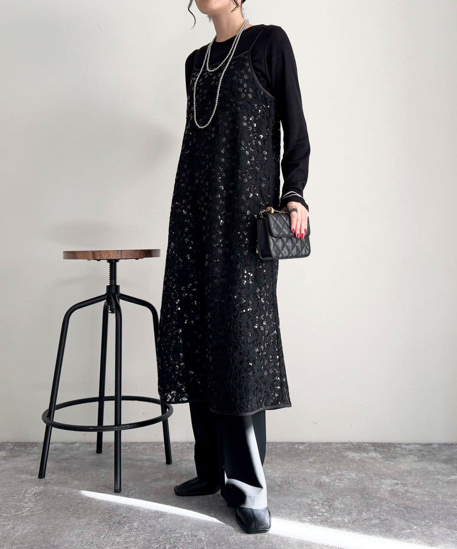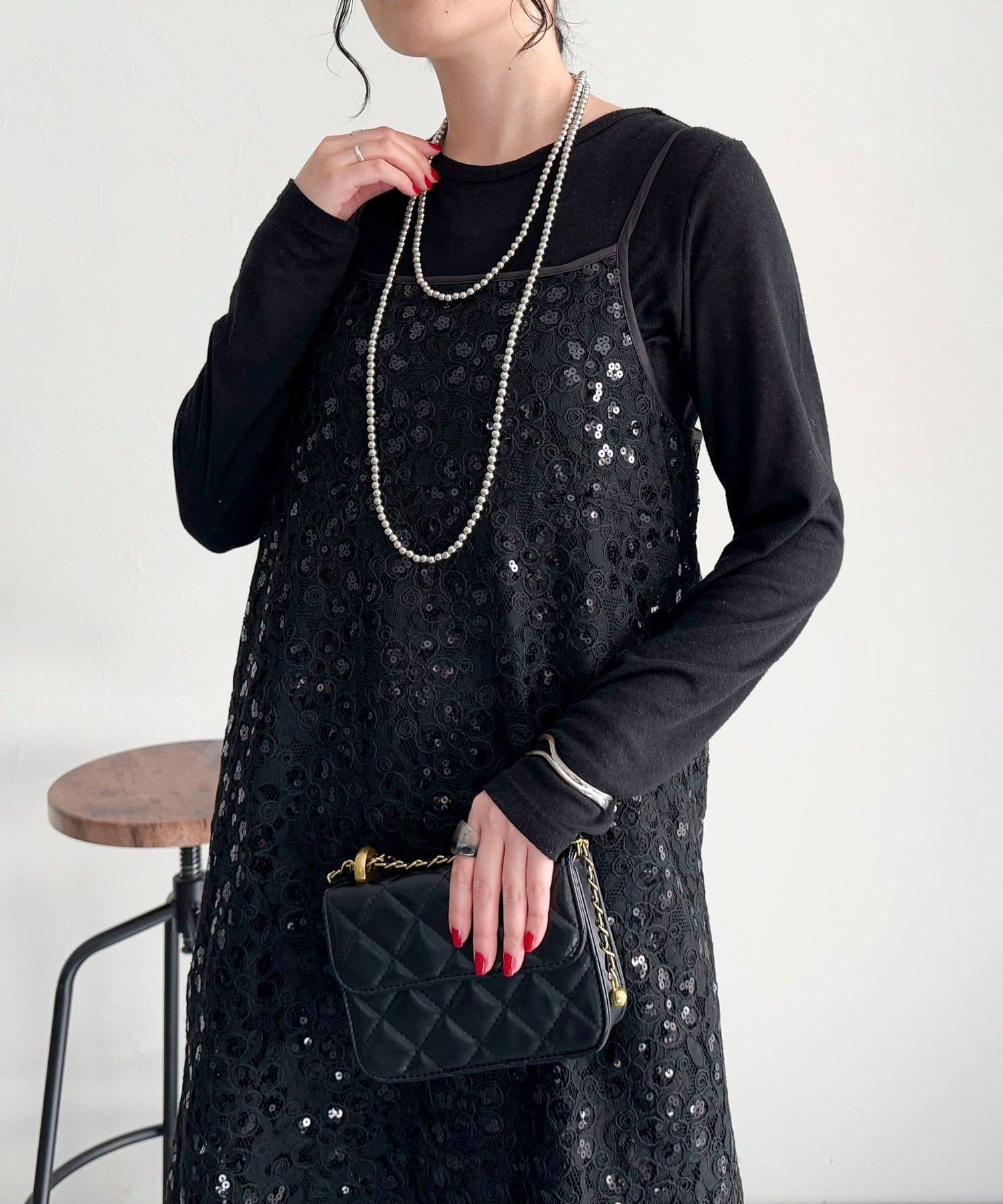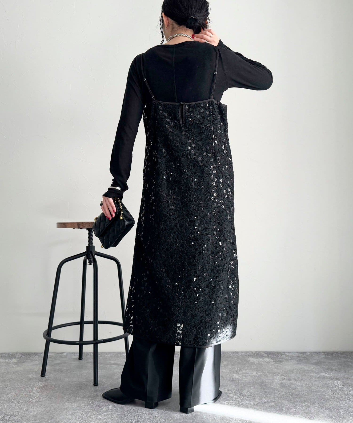 ・繊細なレース素材にスパンコールを散りばめた華やかなキャミワンピースです