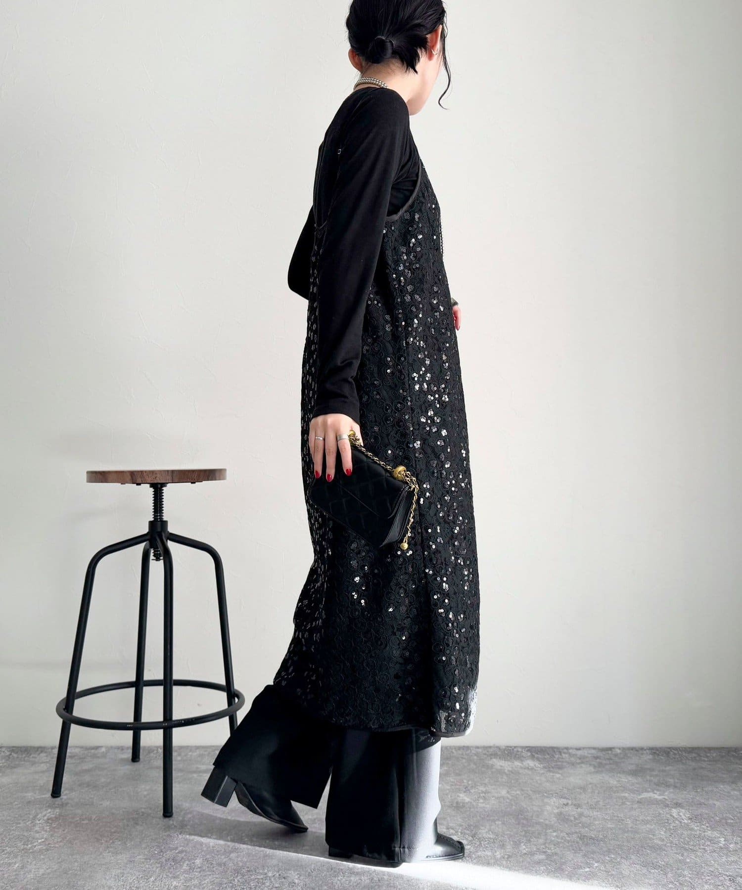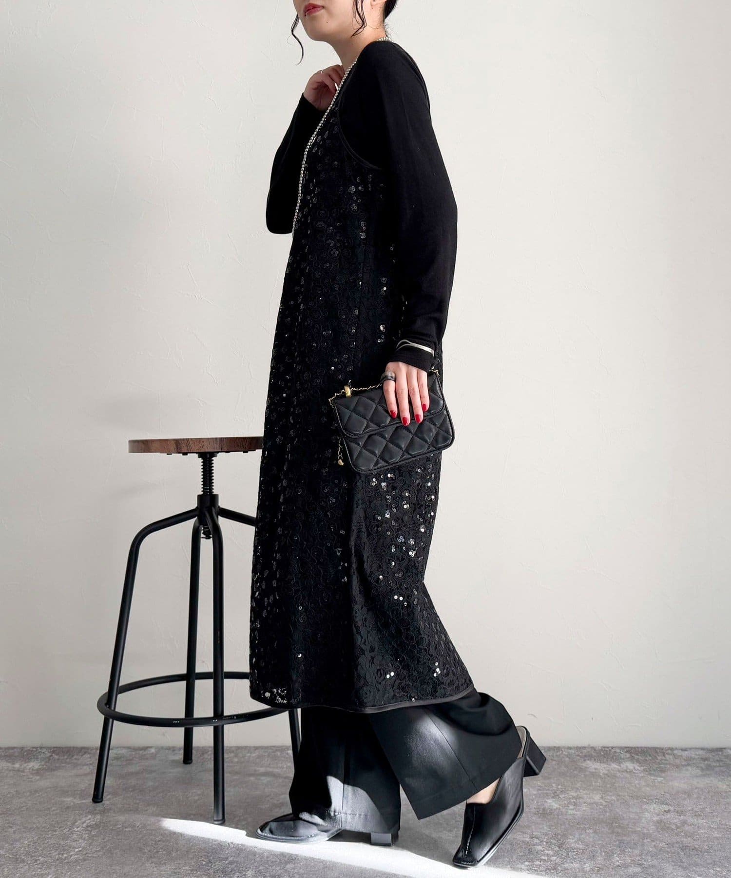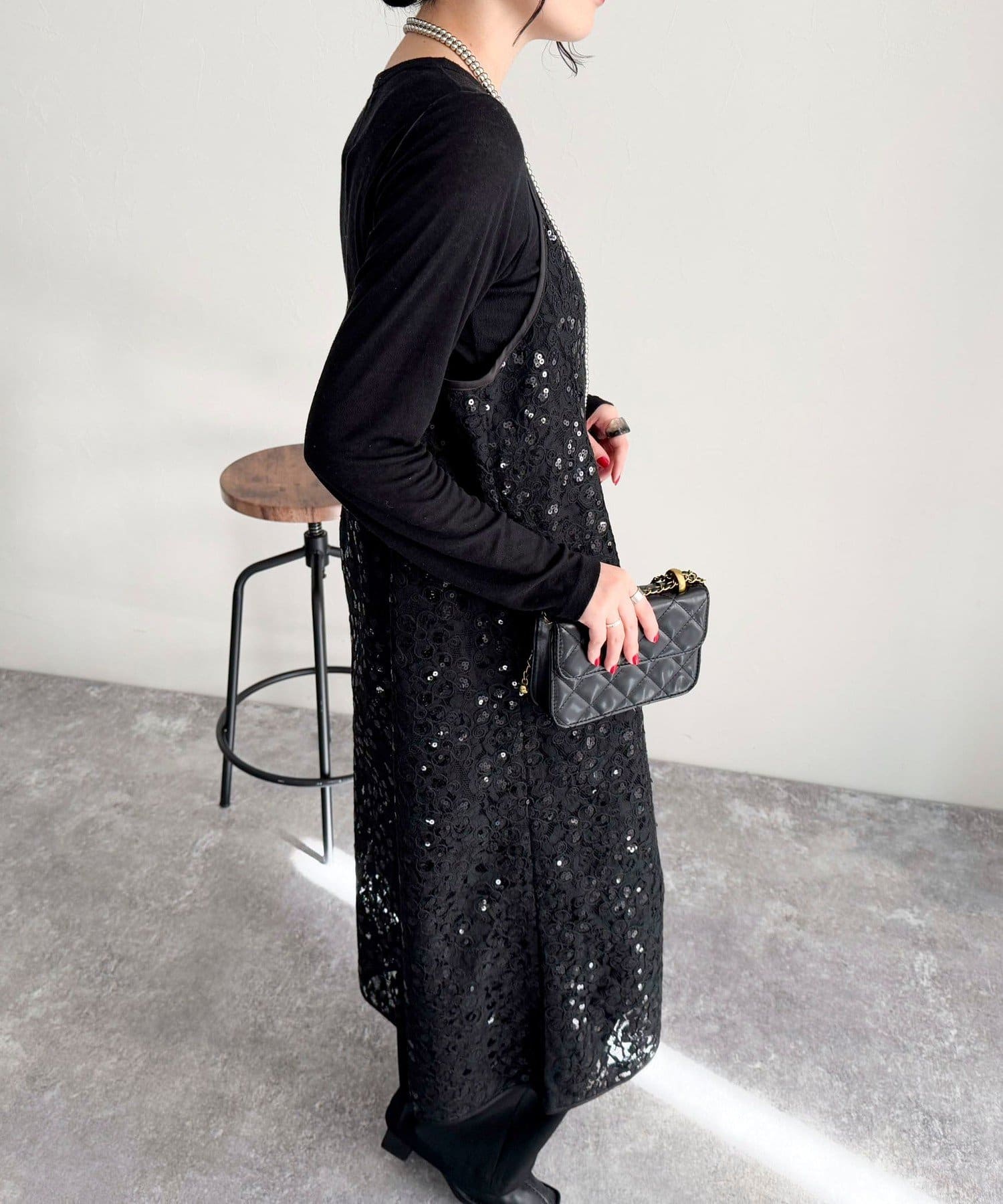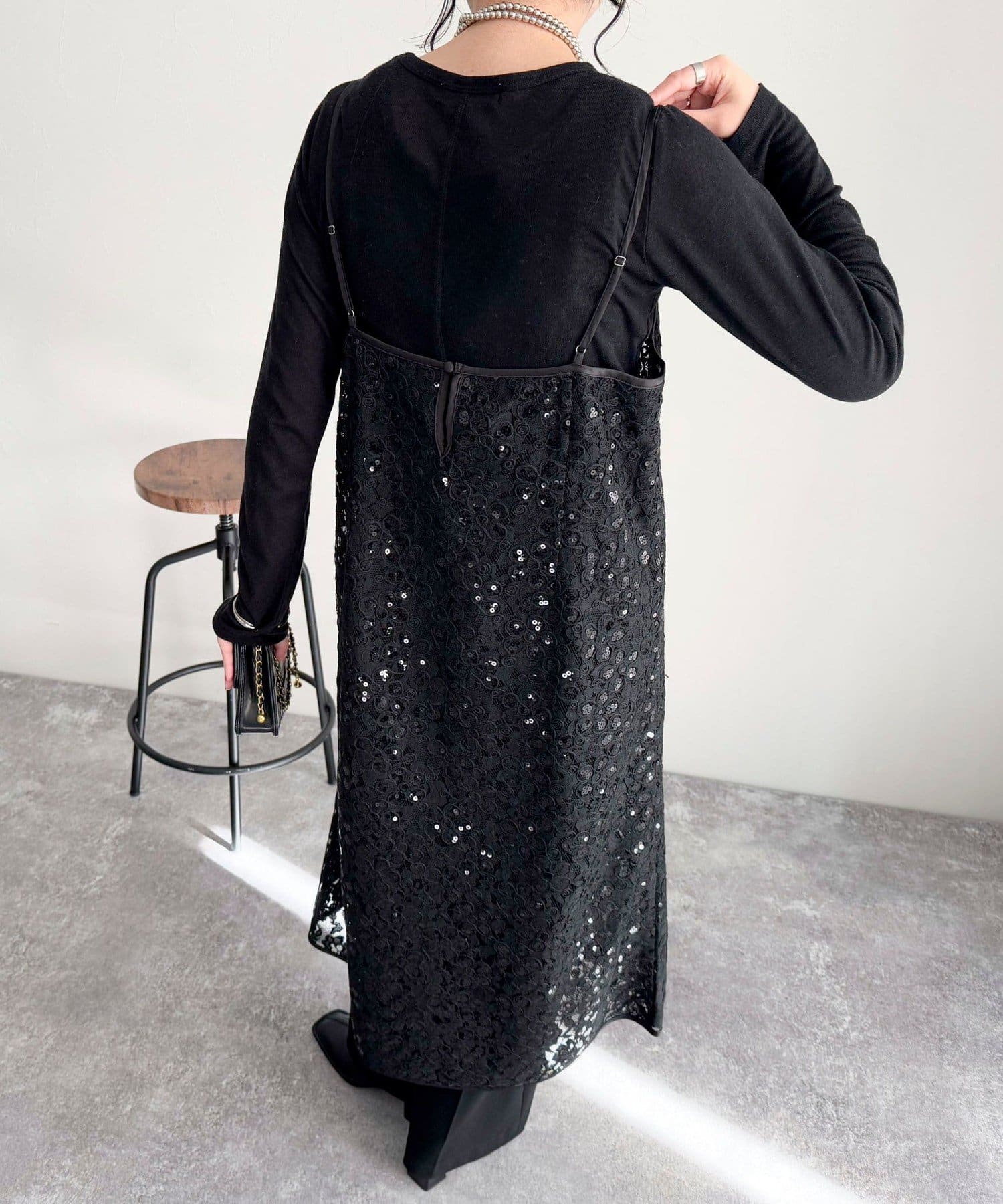 ・繊細なレース素材にスパンコールを散りばめた華やかなキャミワンピースです