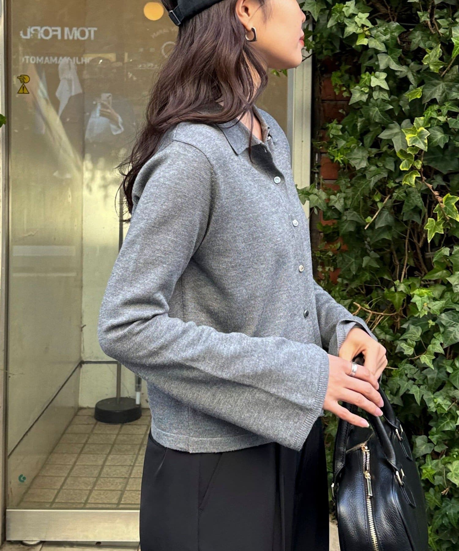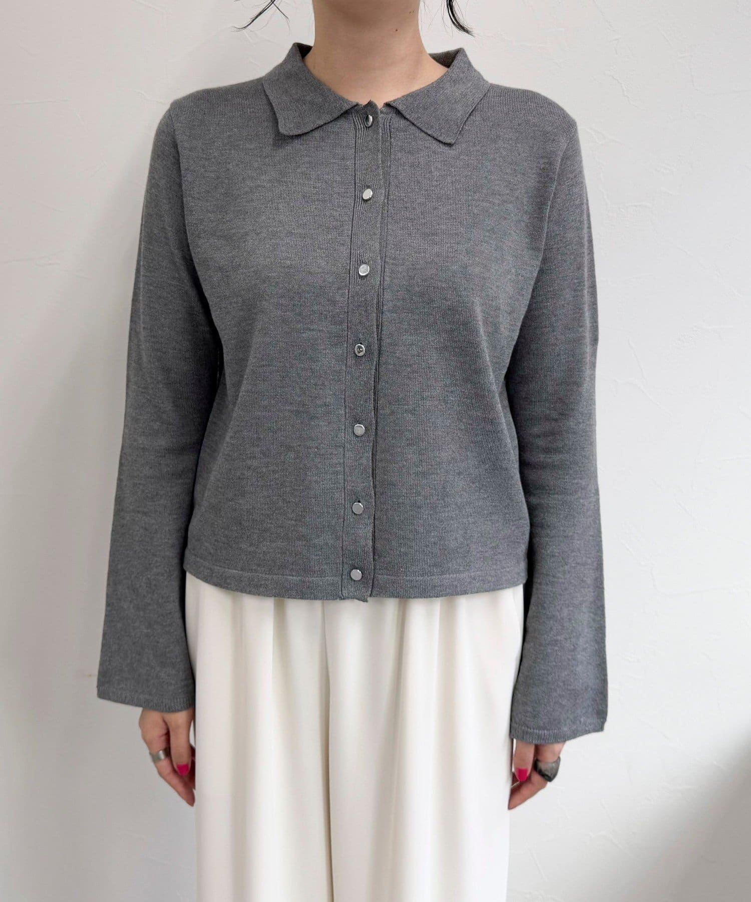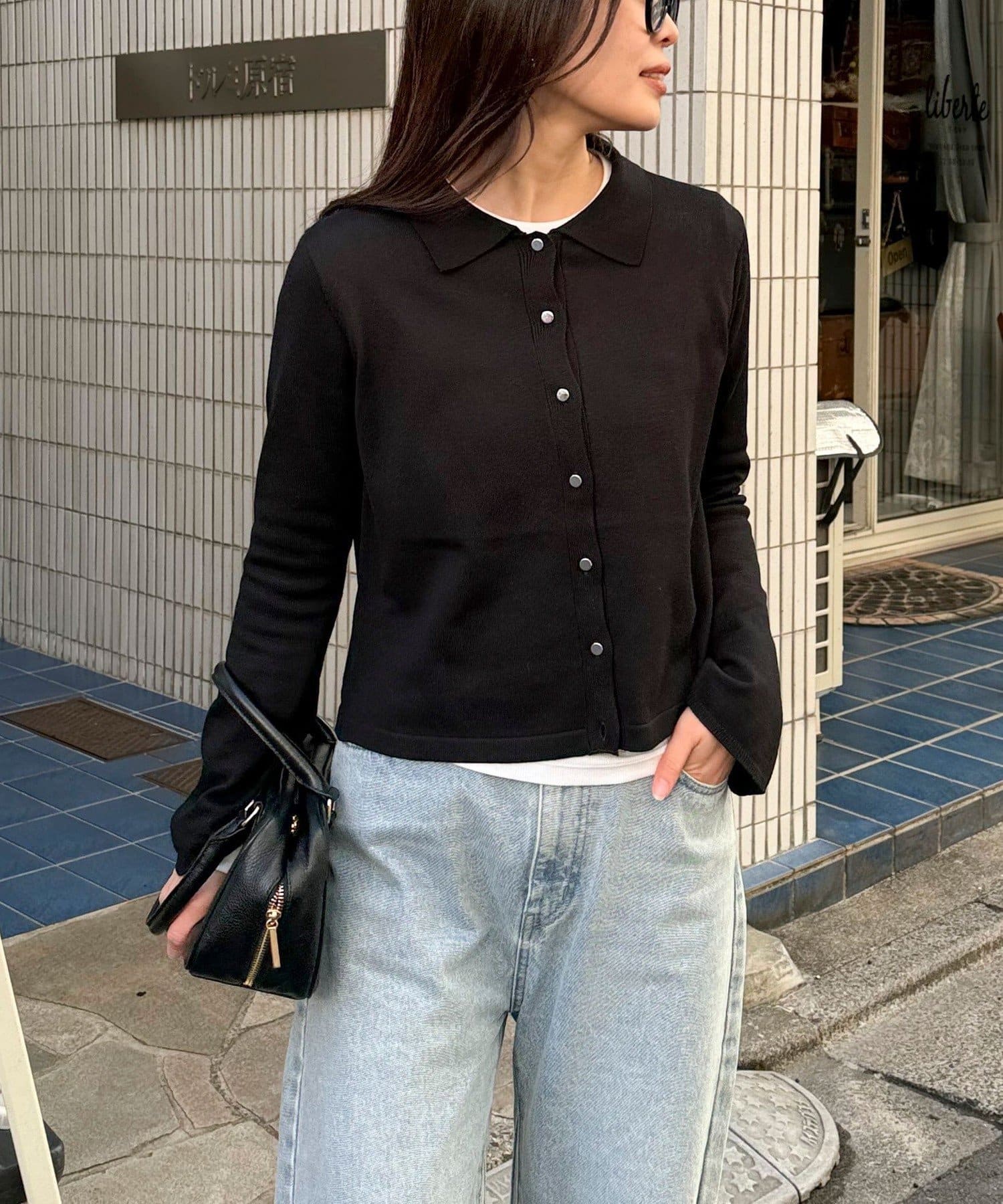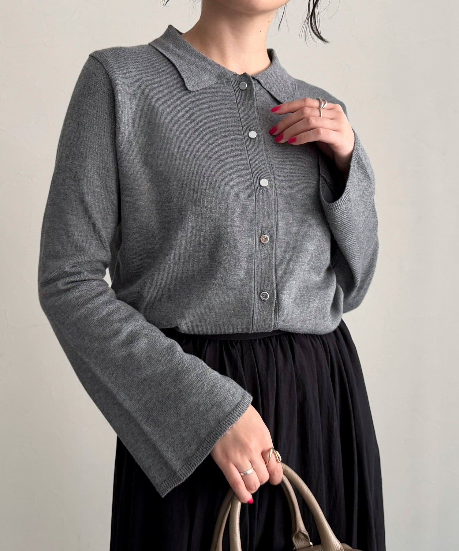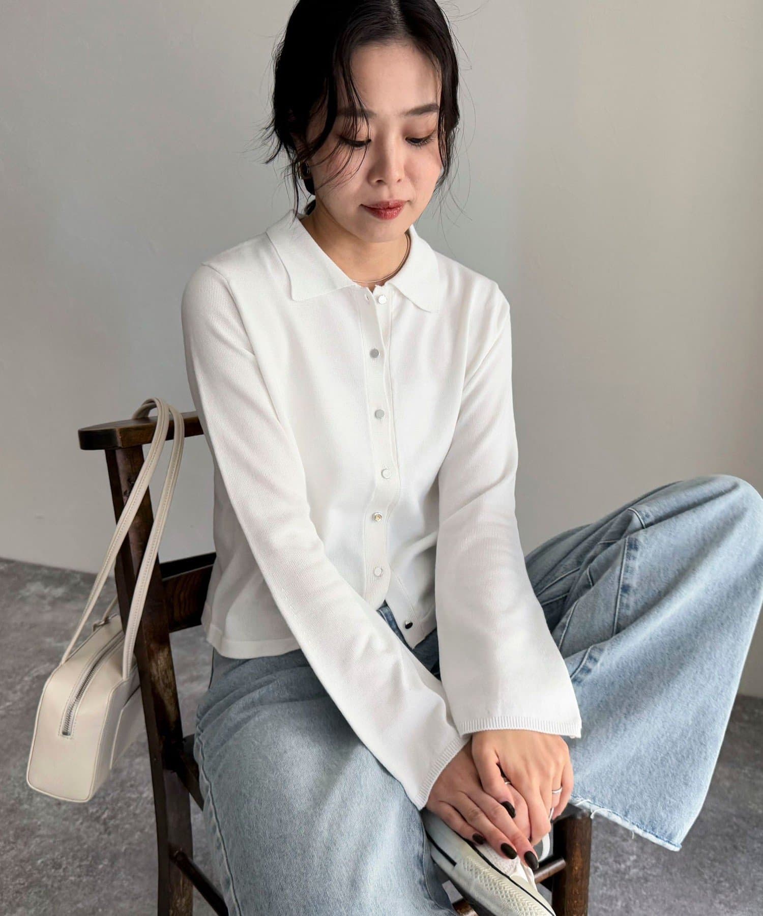 ・襟付きのデザインが今っぽいシャツカーディガンです