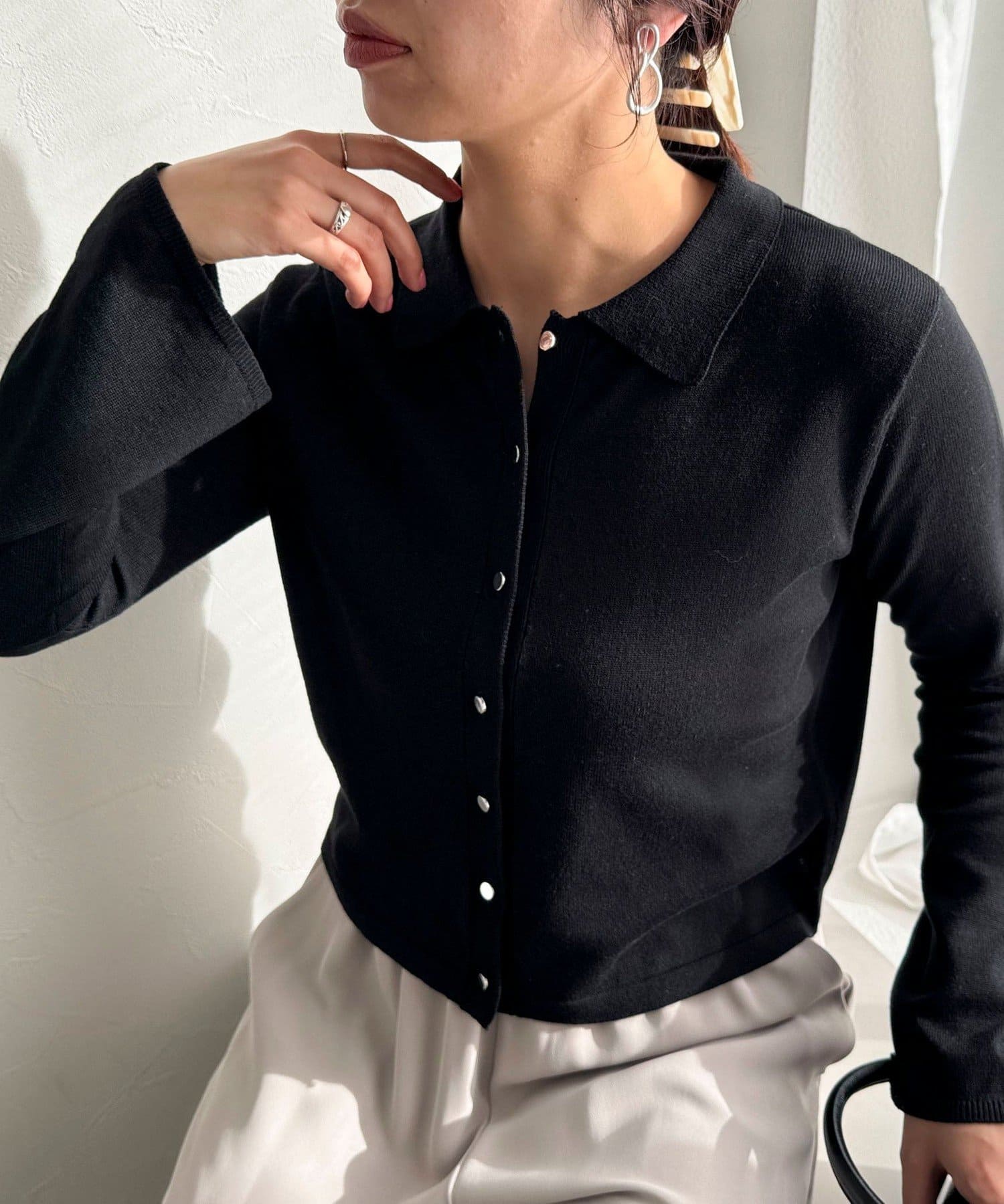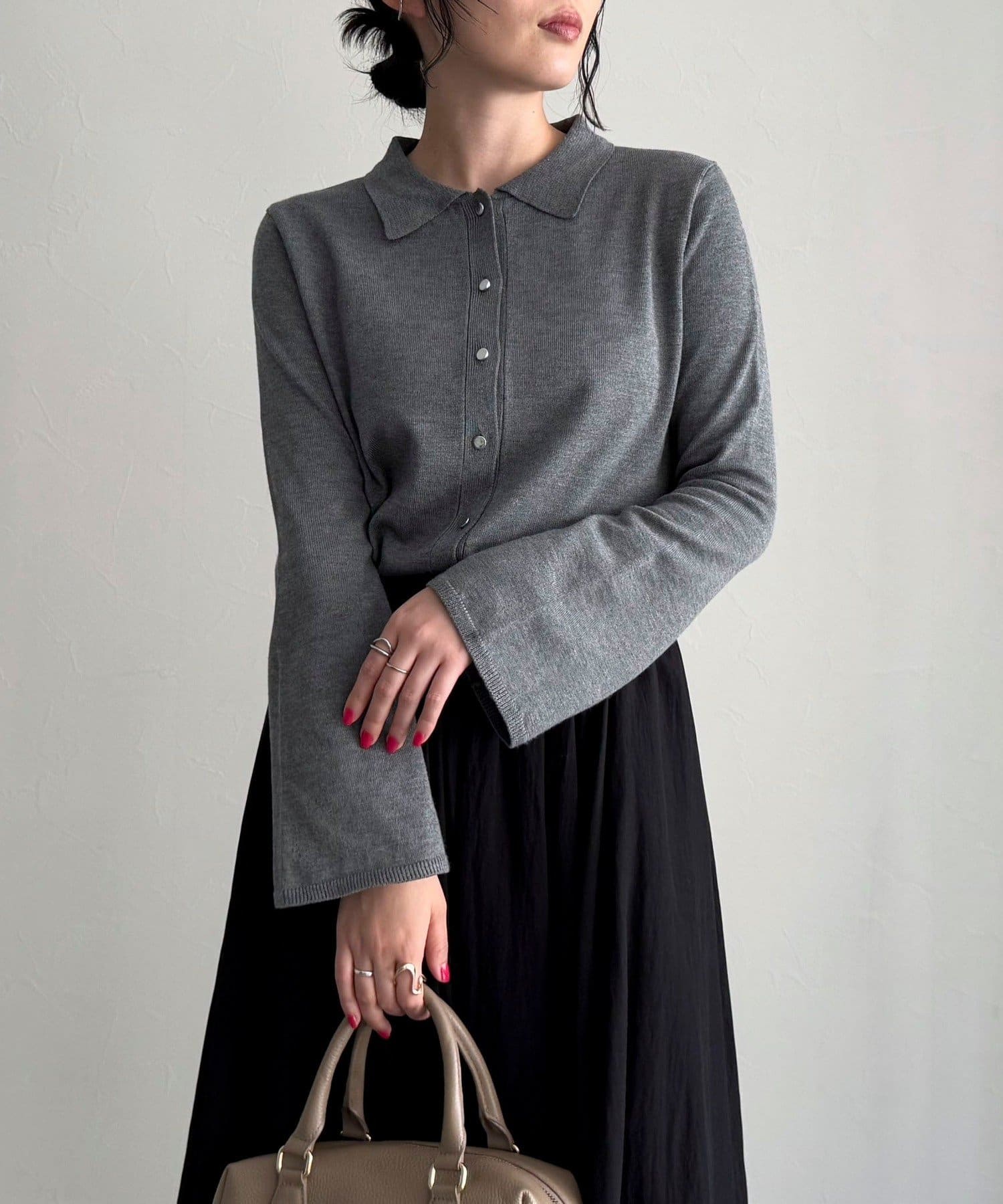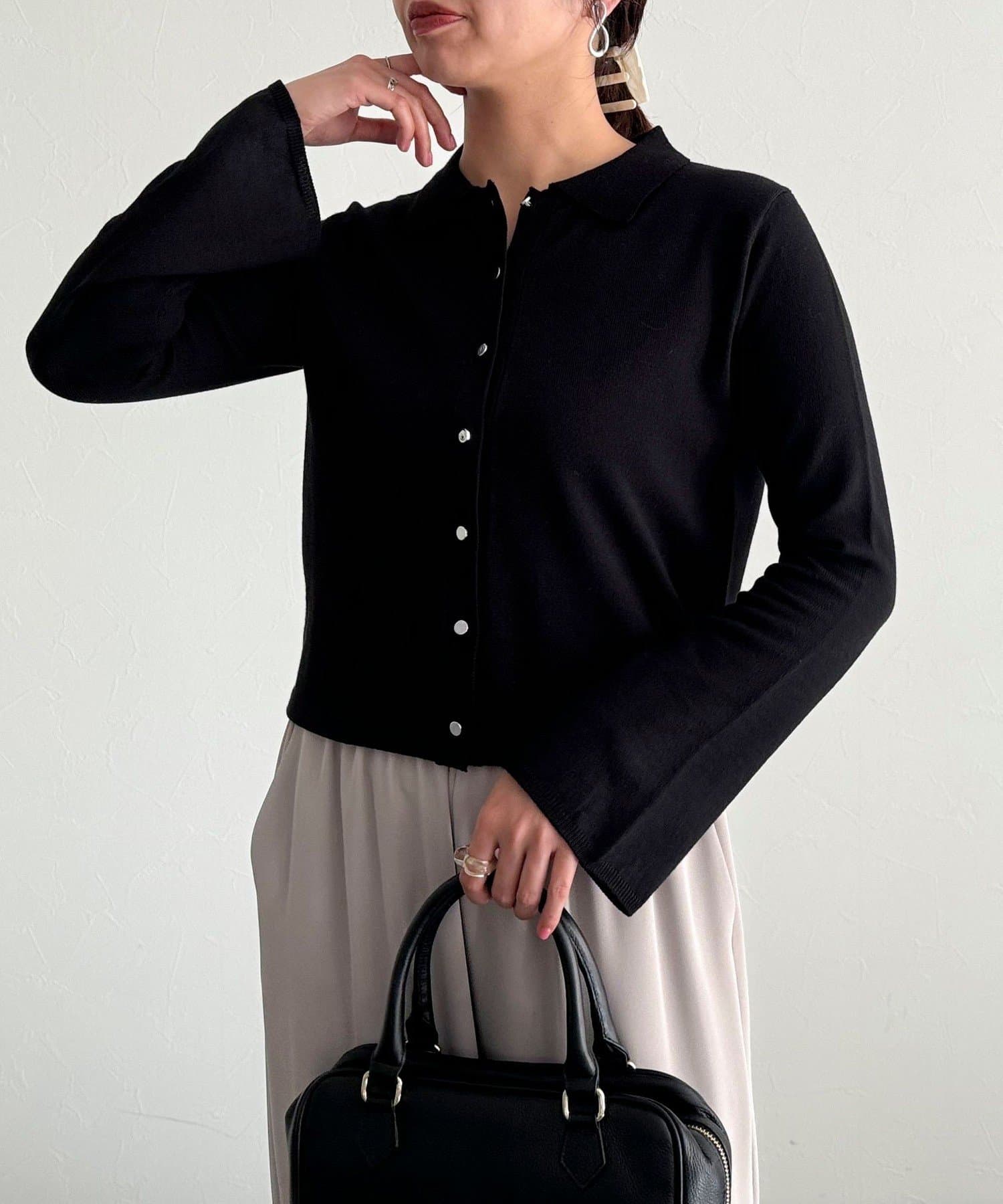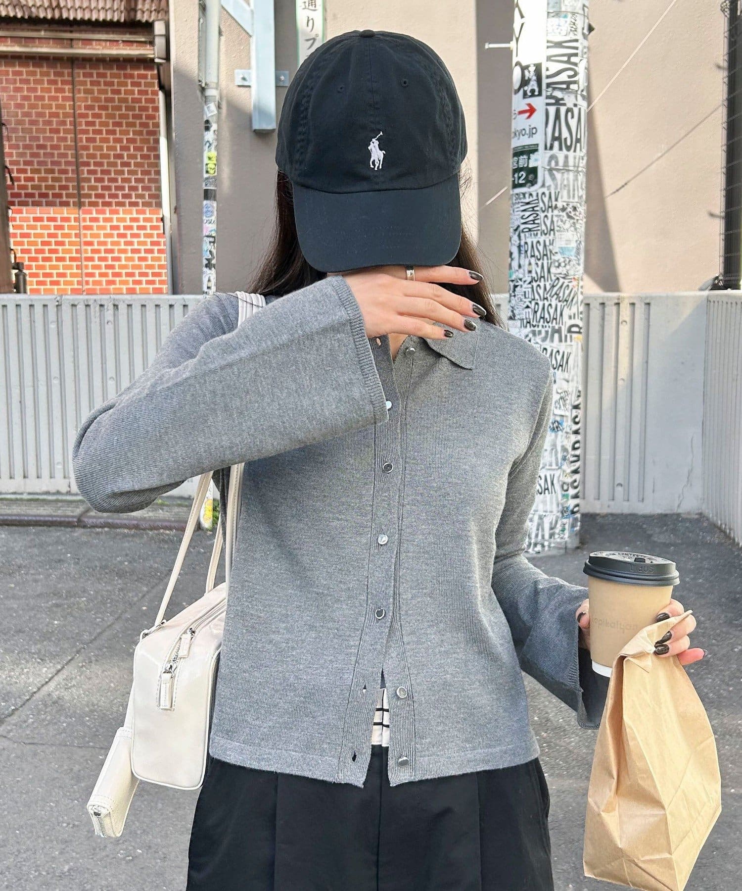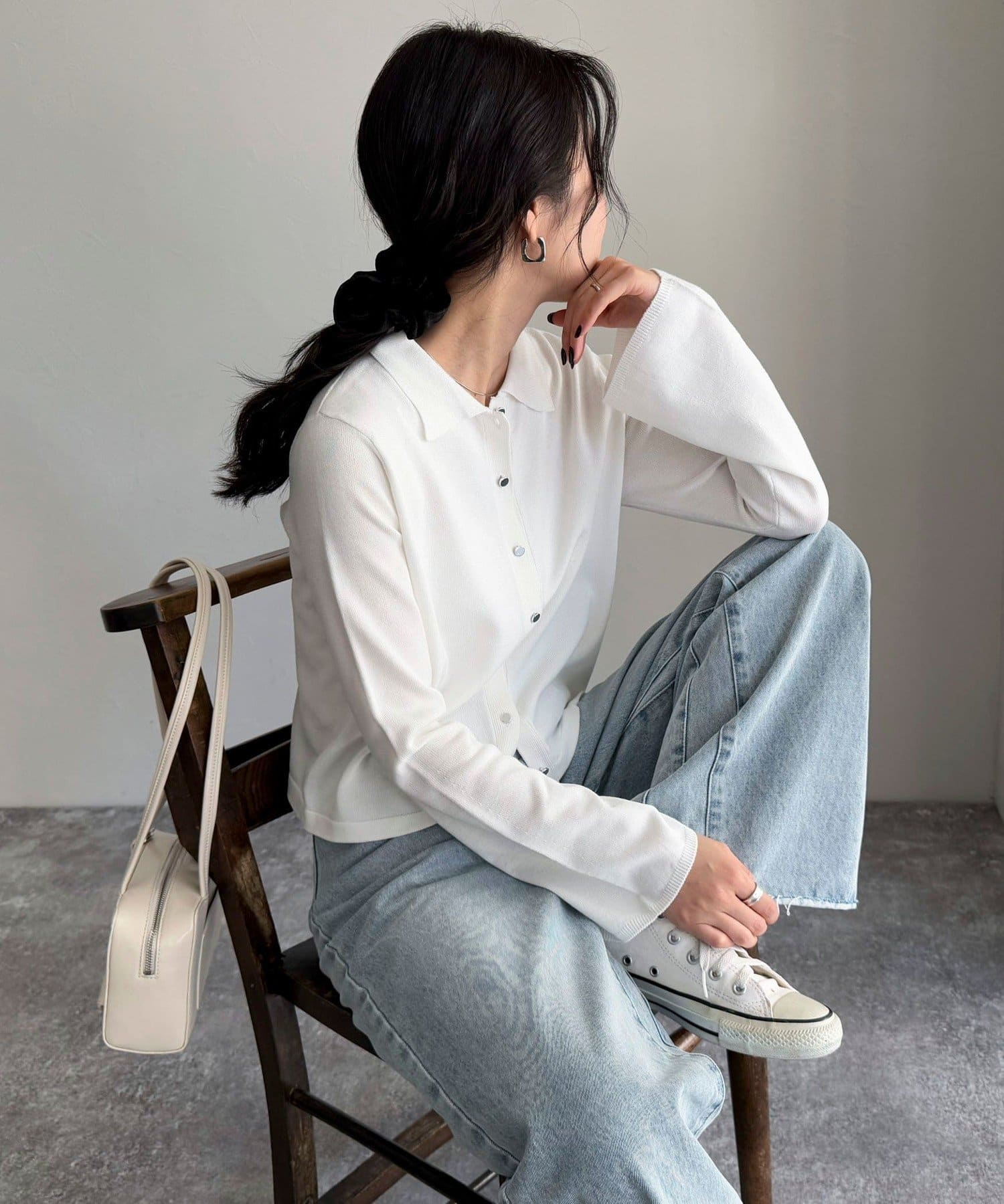 ・襟付きのデザインが今っぽいシャツカーディガンです