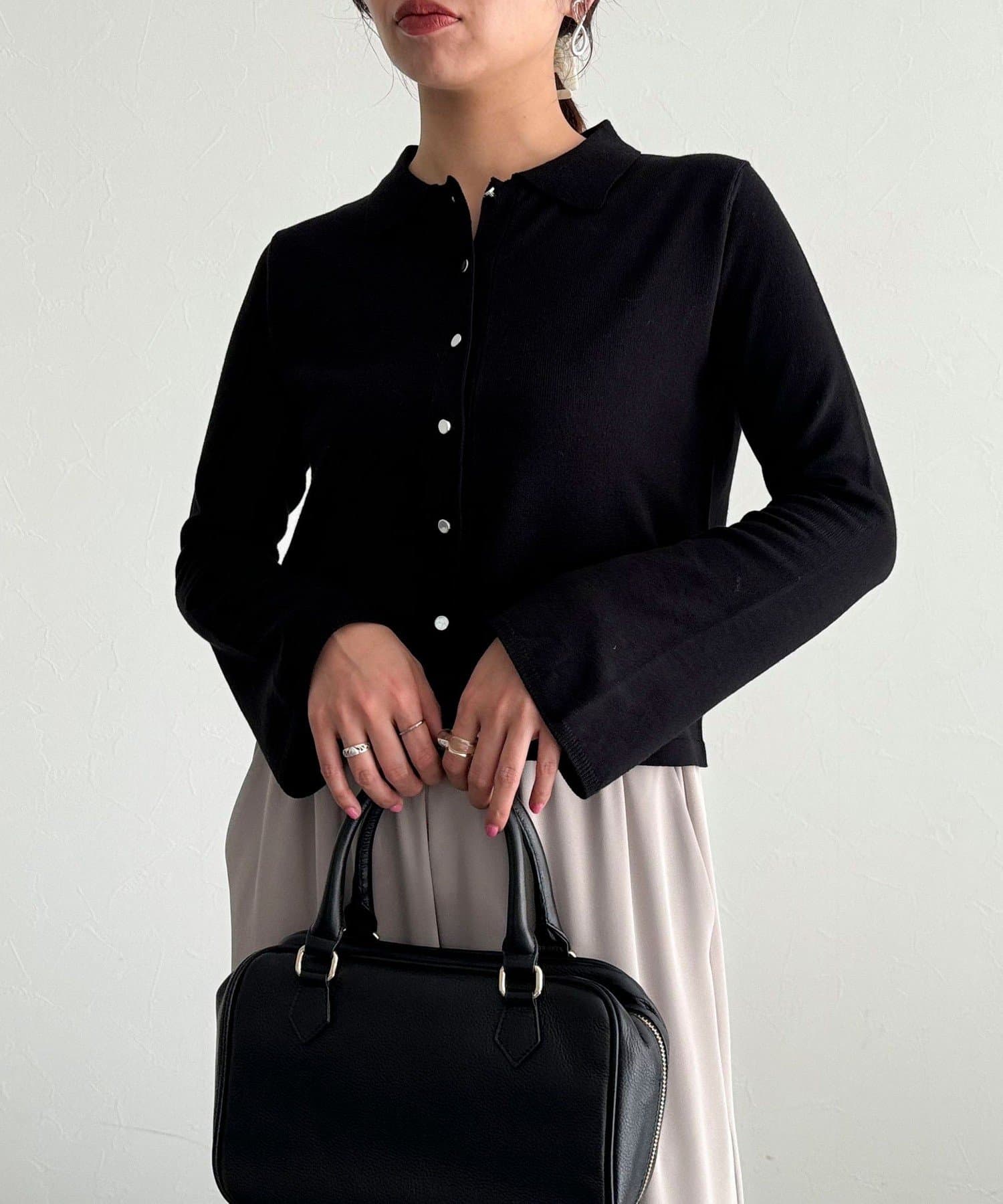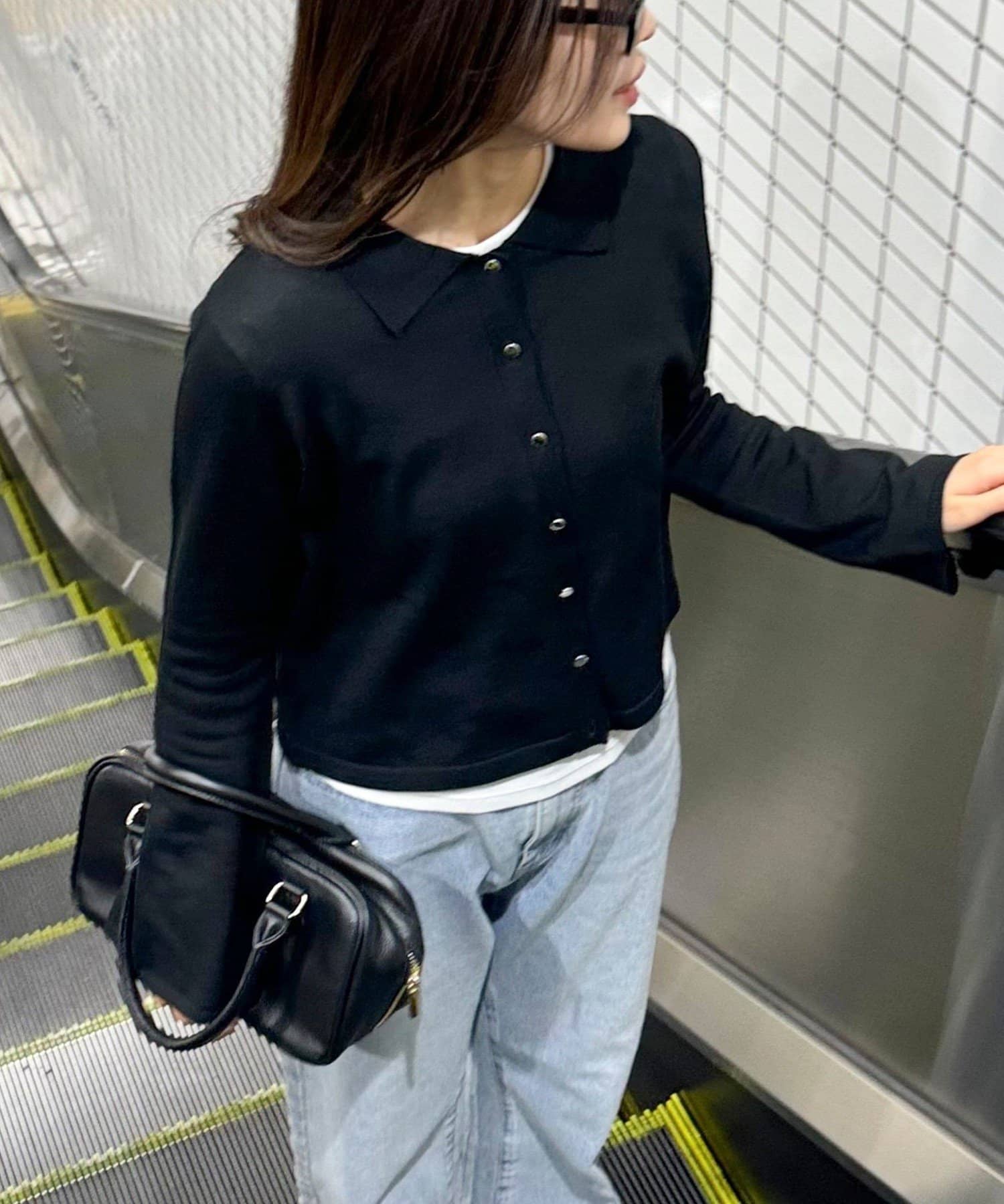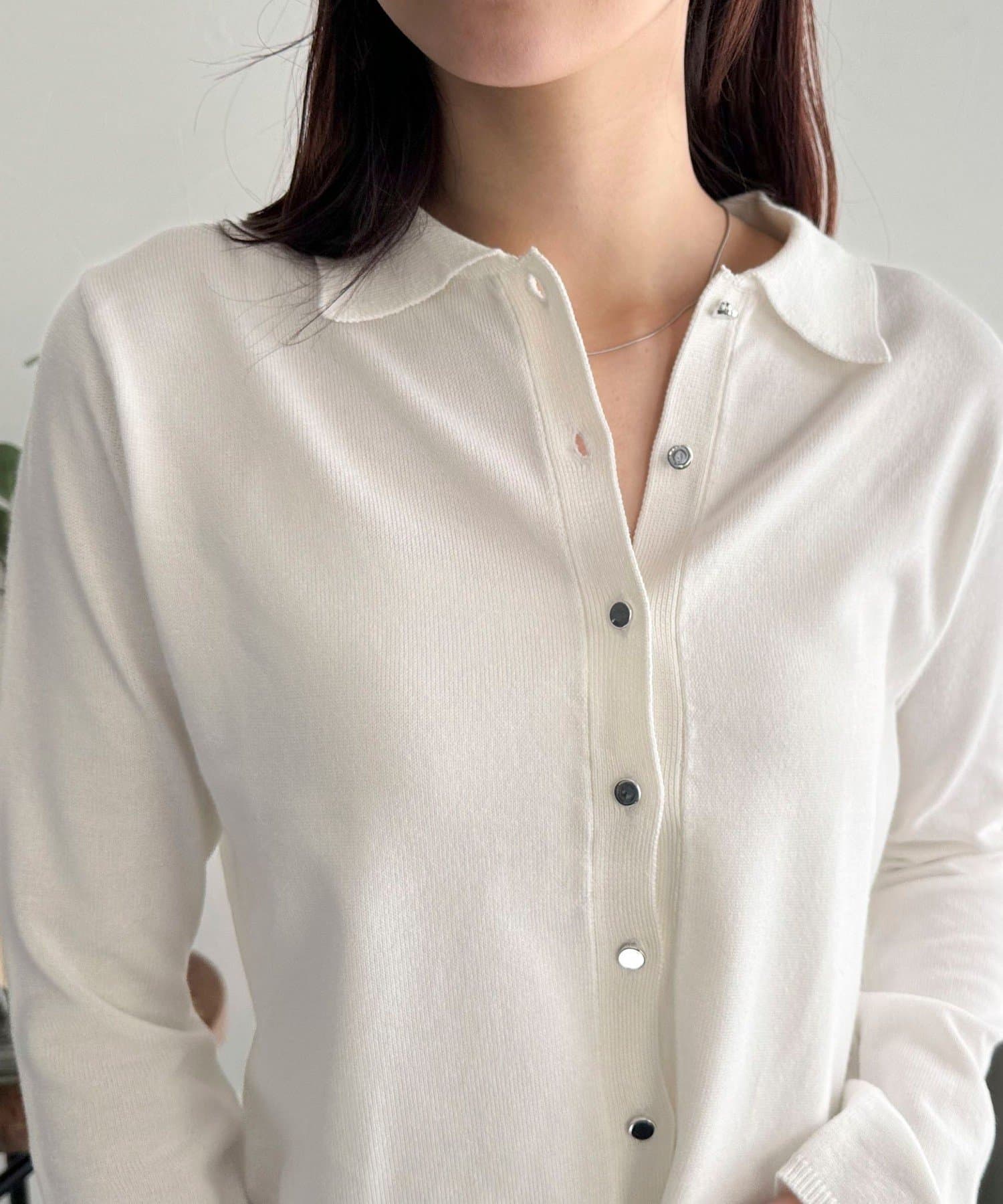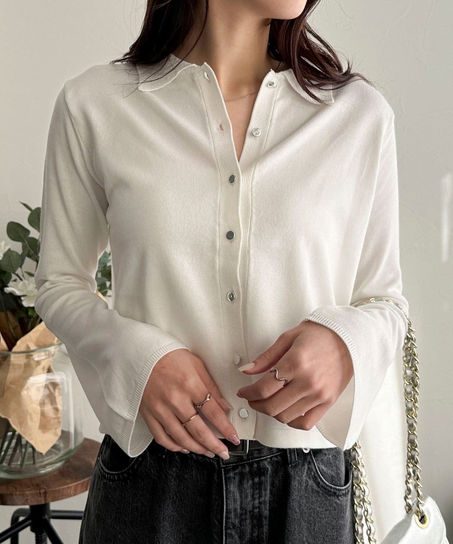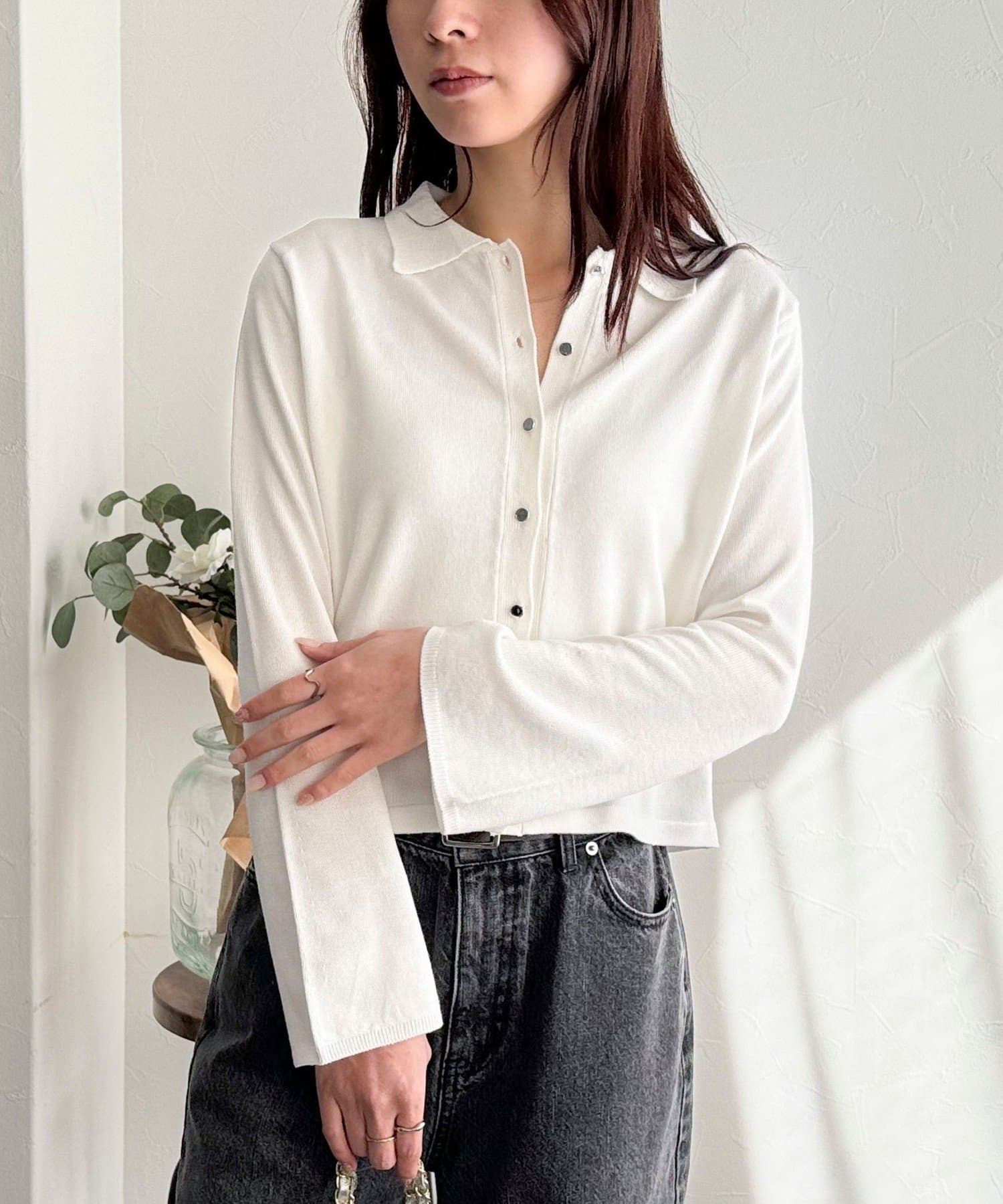 ・襟付きのデザインが今っぽいシャツカーディガンです