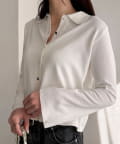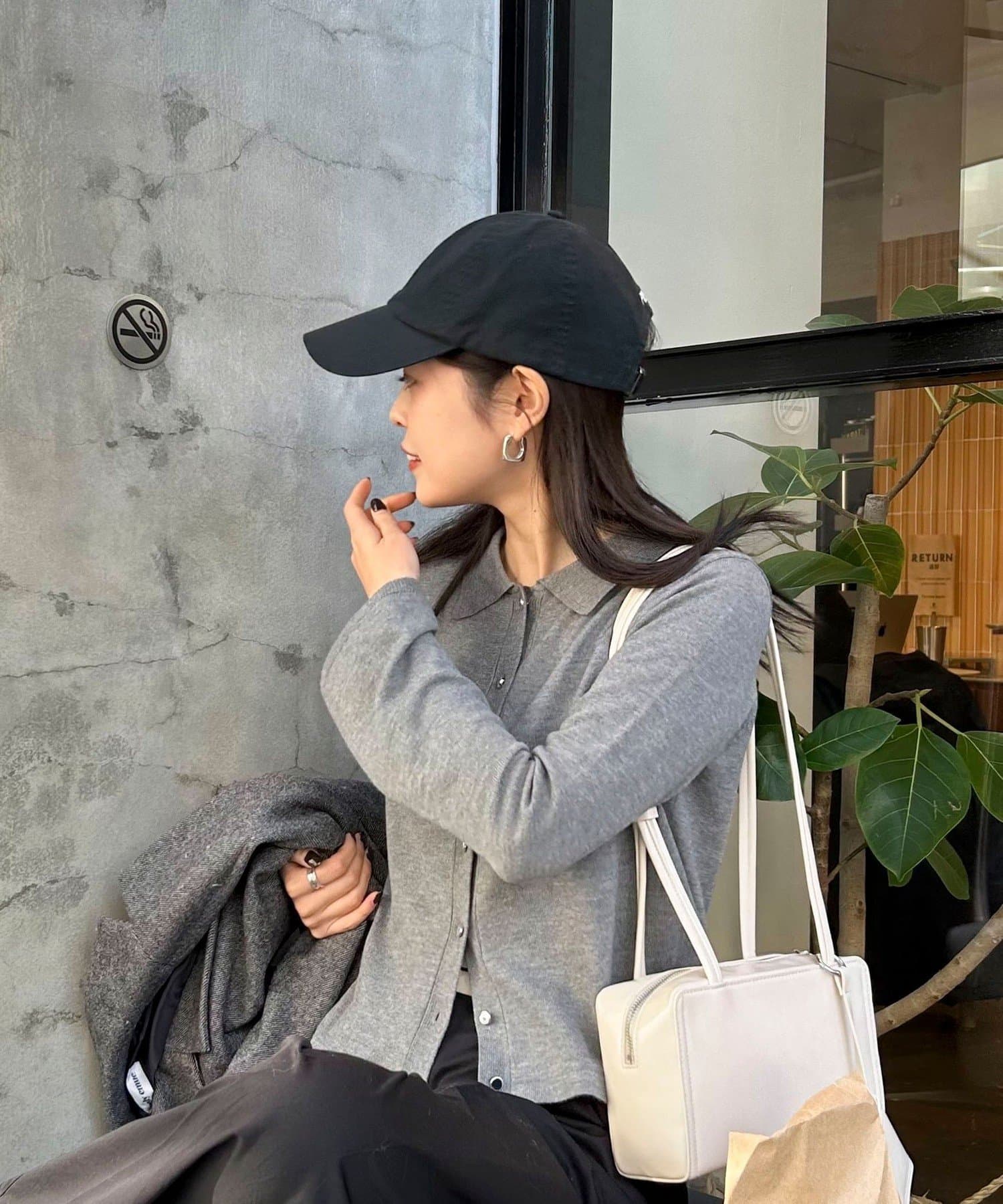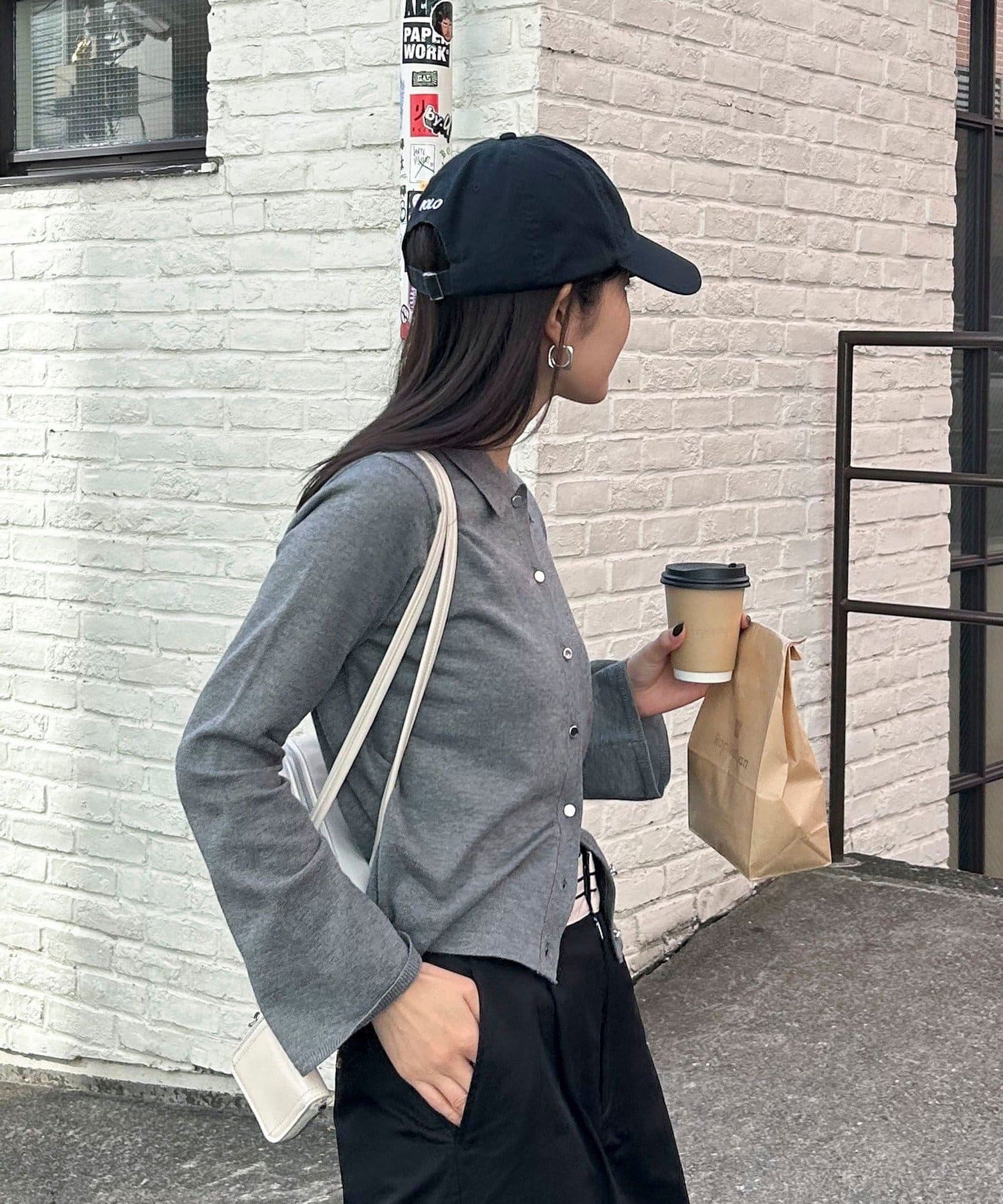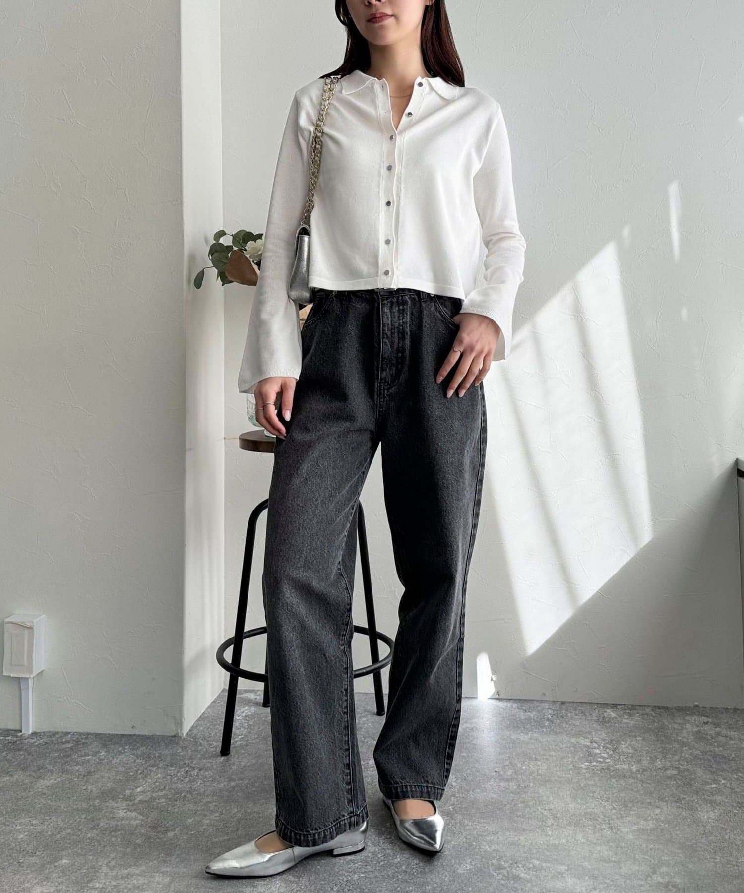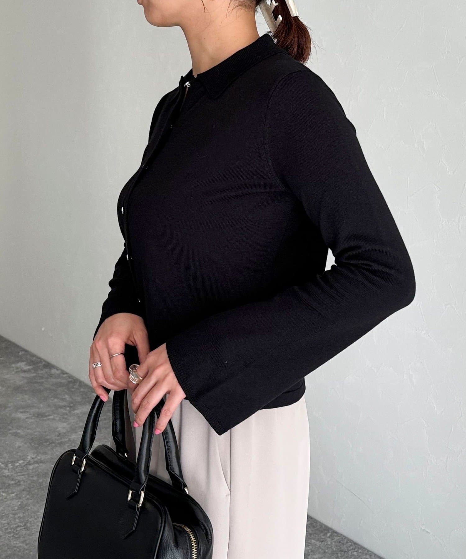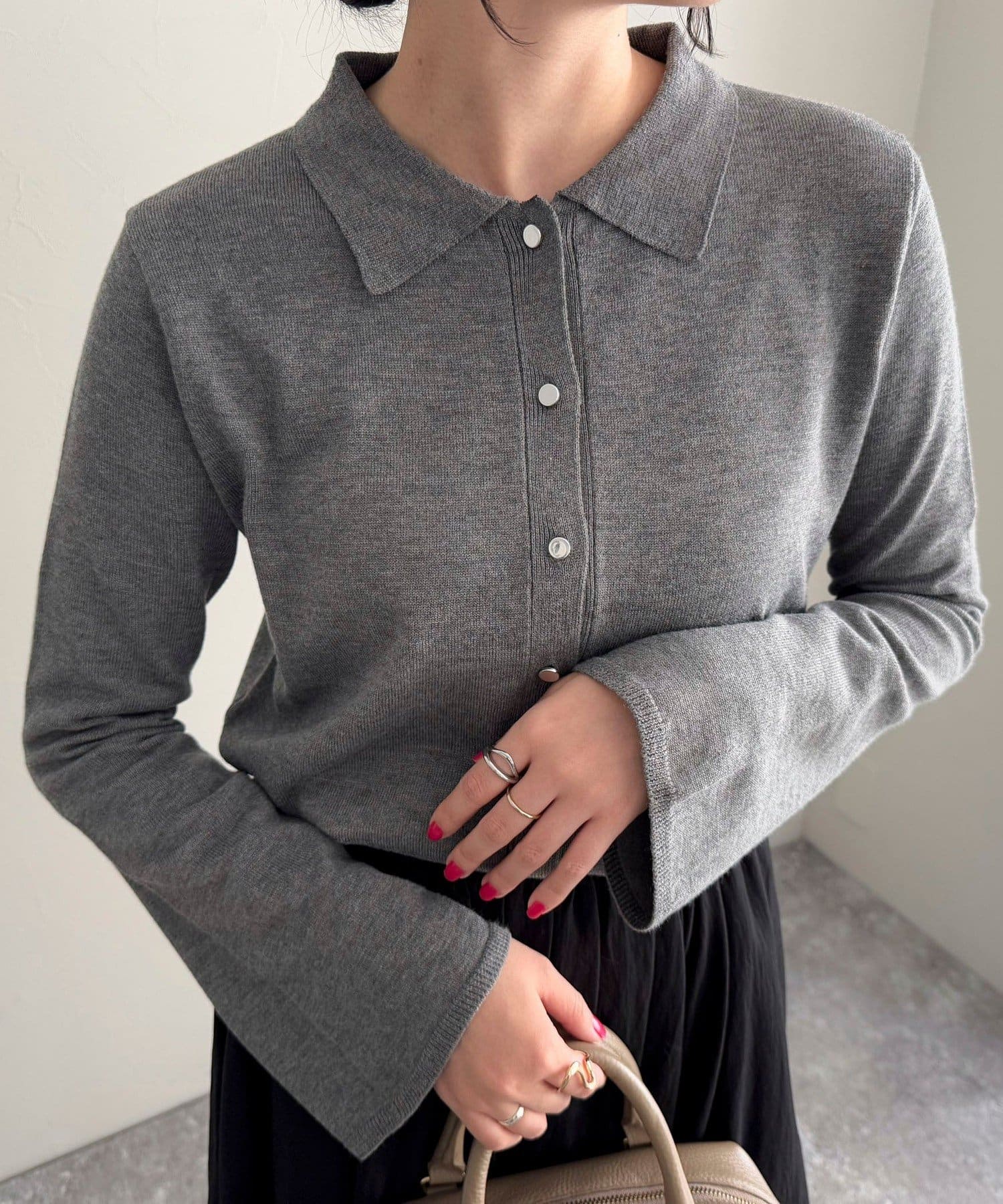 ・襟付きのデザインが今っぽいシャツカーディガンです