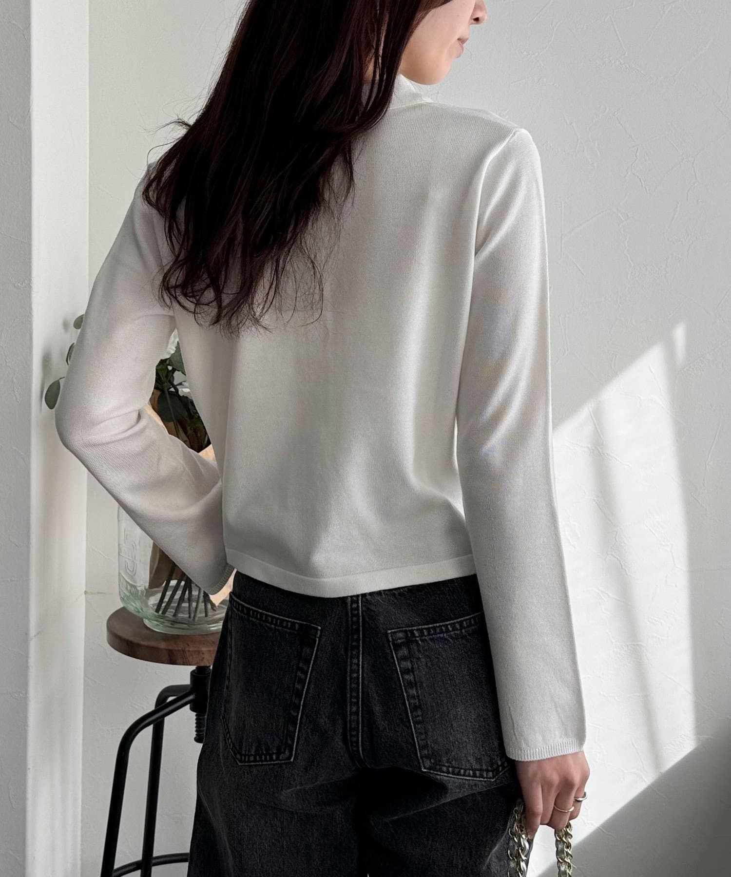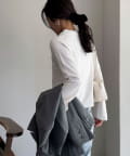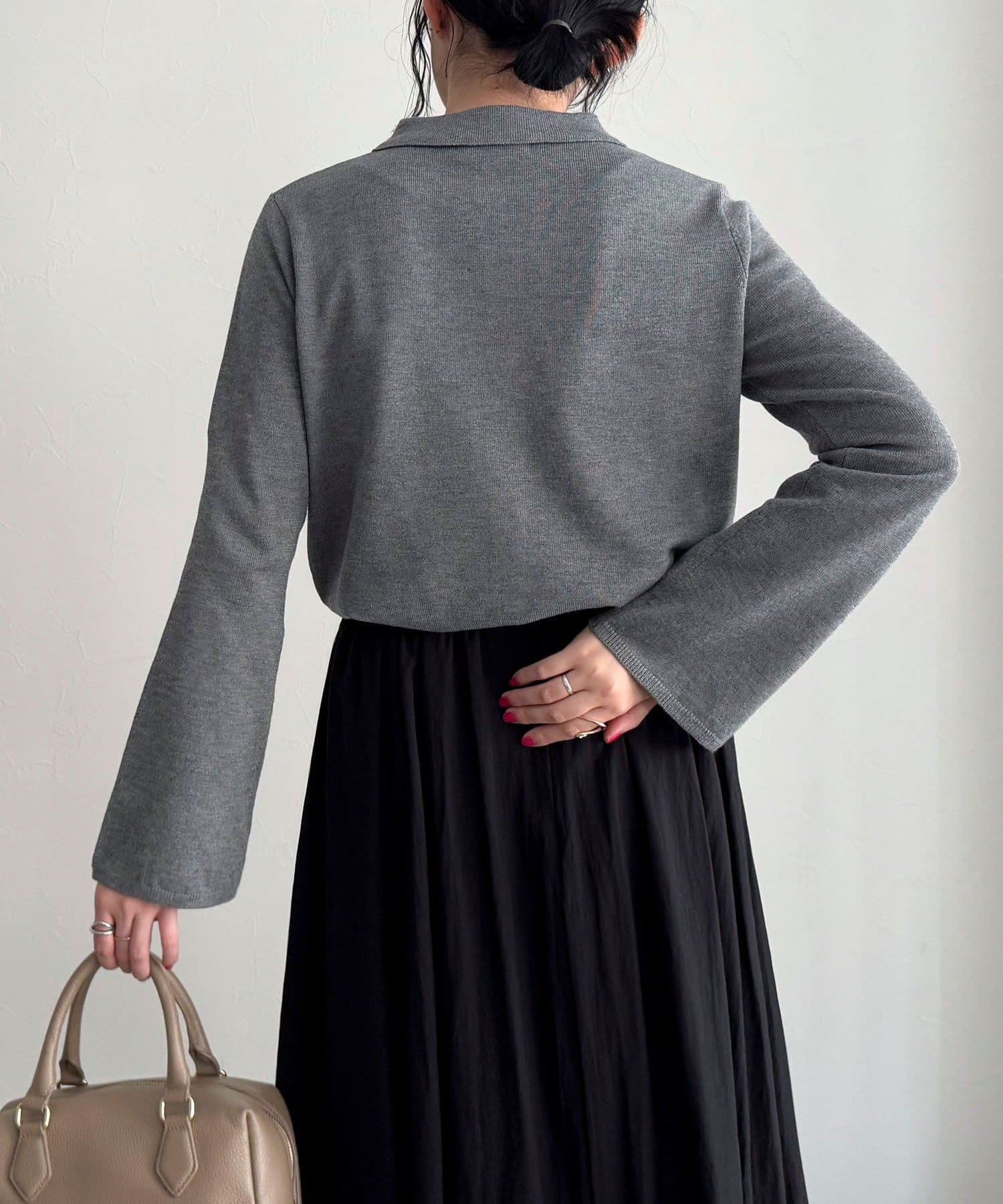 ・シンプルなデザインながらも袖に向かって広がるフレアスリーブやスッキリとしたややタイト目のシルエットが女性らしく着こなせる1点!