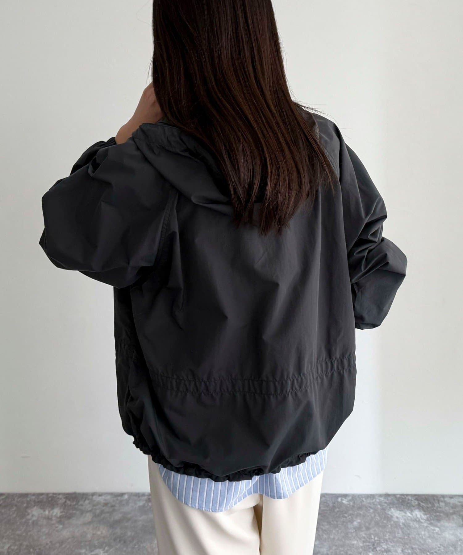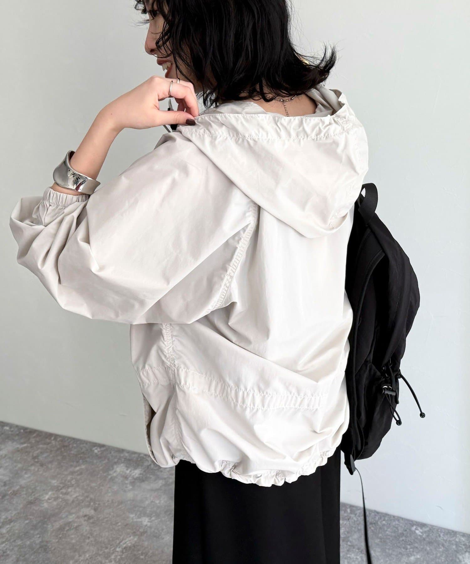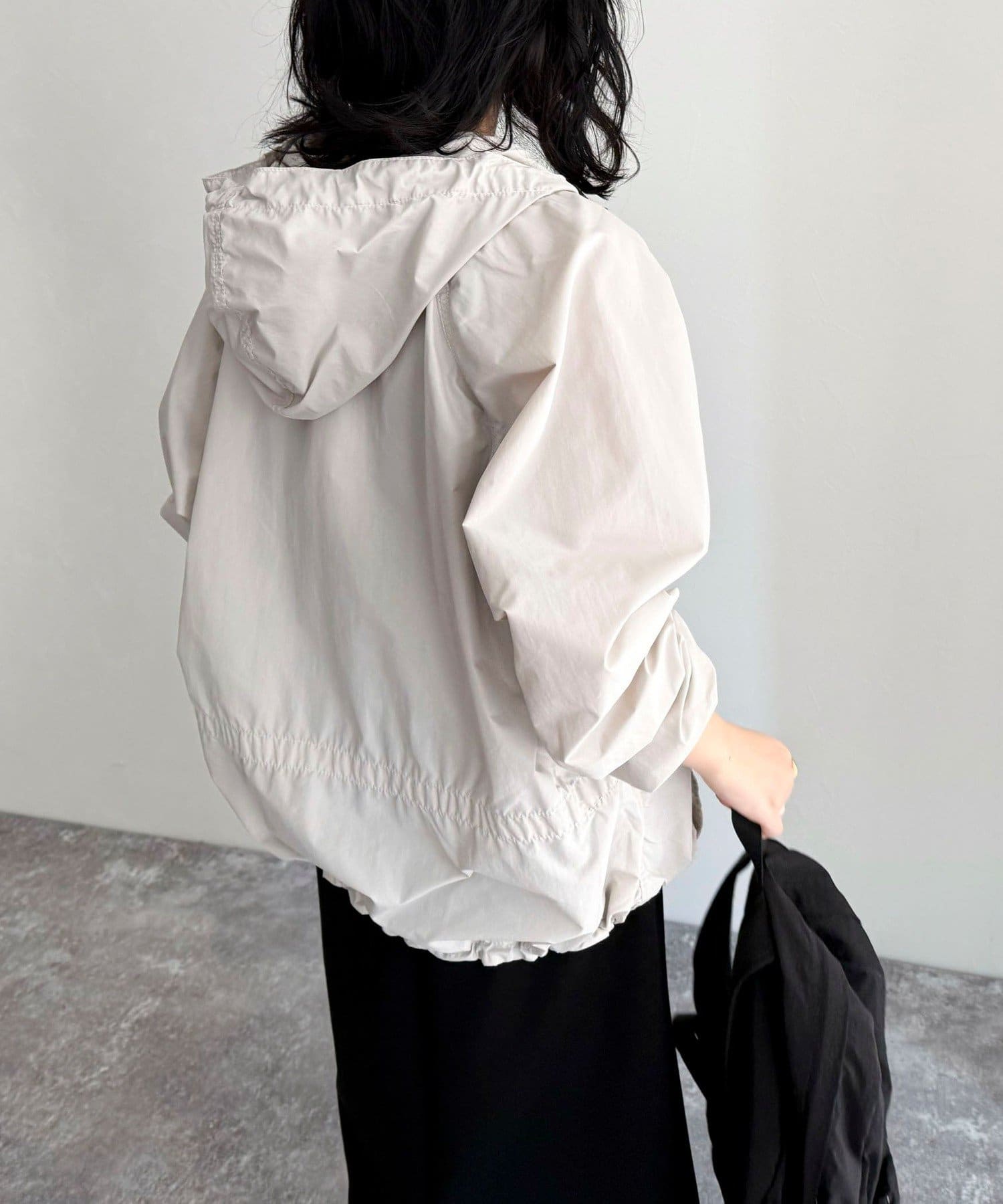 ・フード部分と裾にドローコードが付いているのでシルエットを微調整して着用していただけます