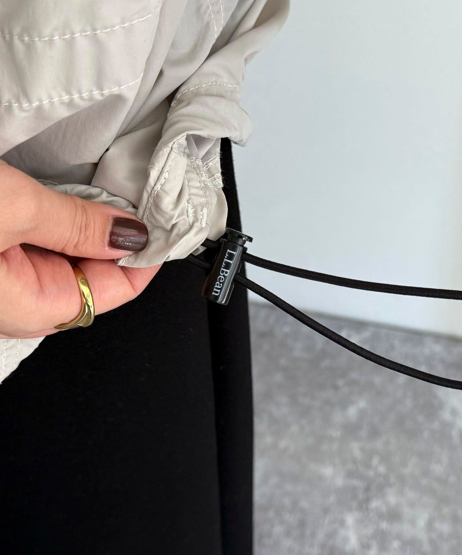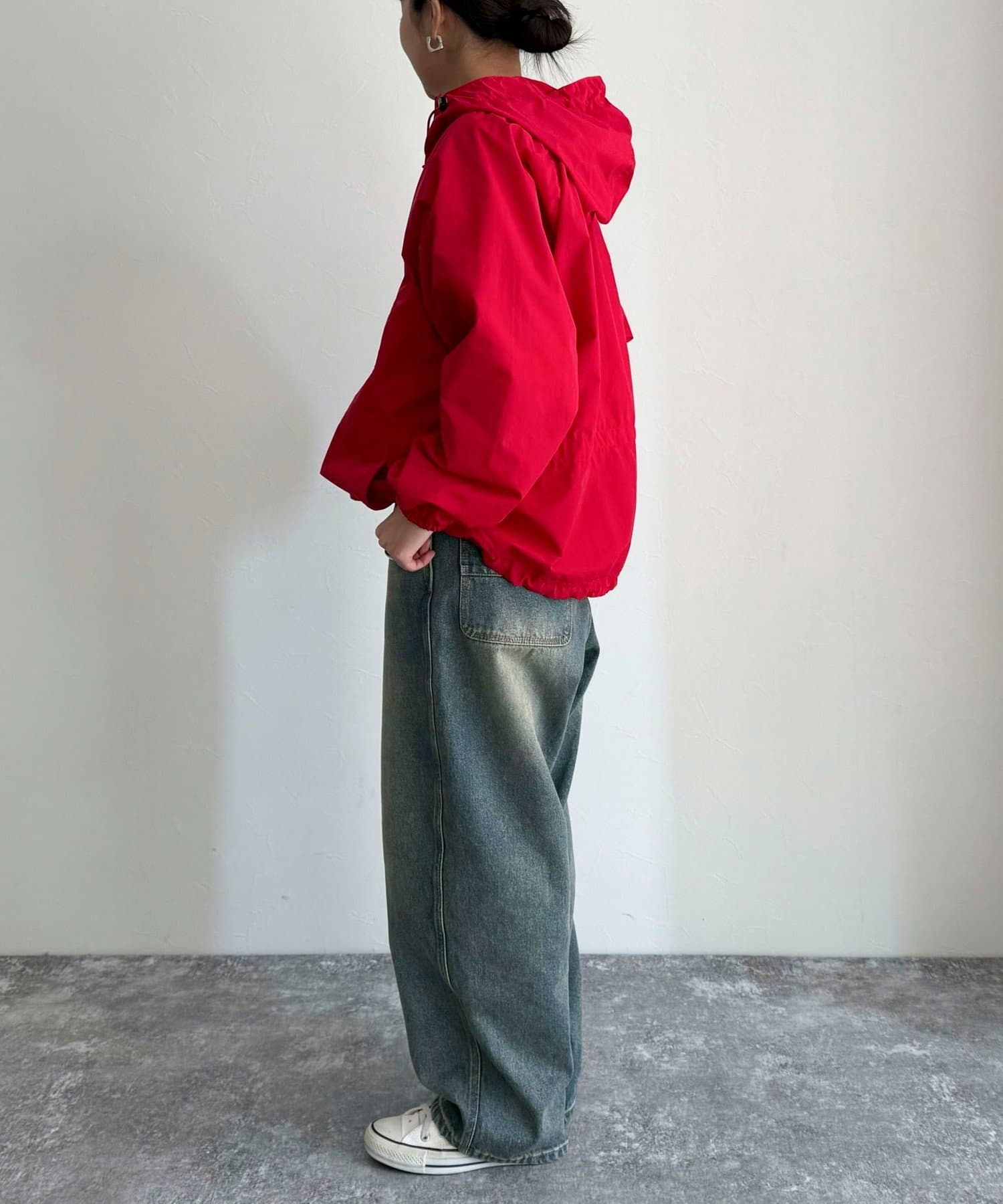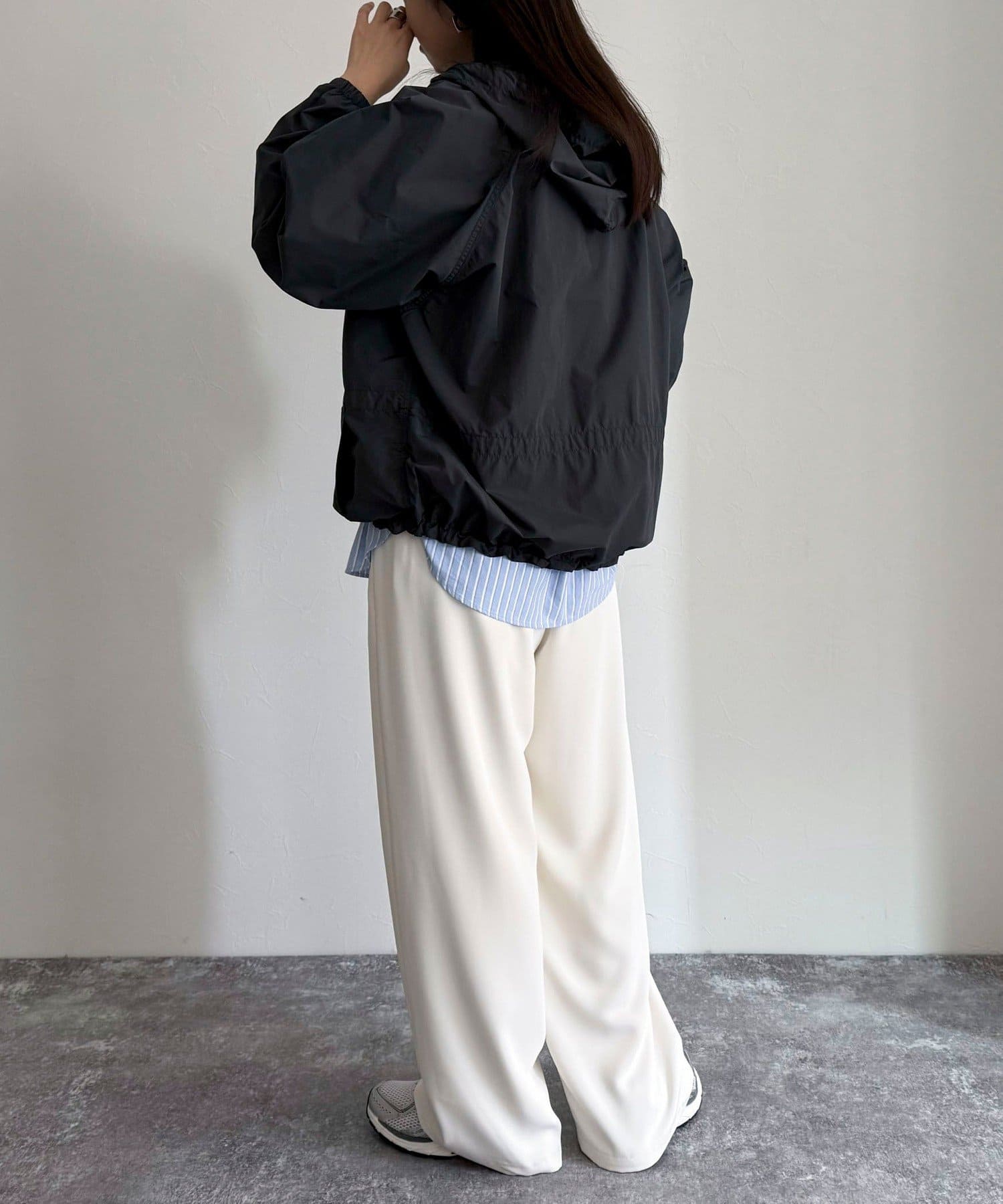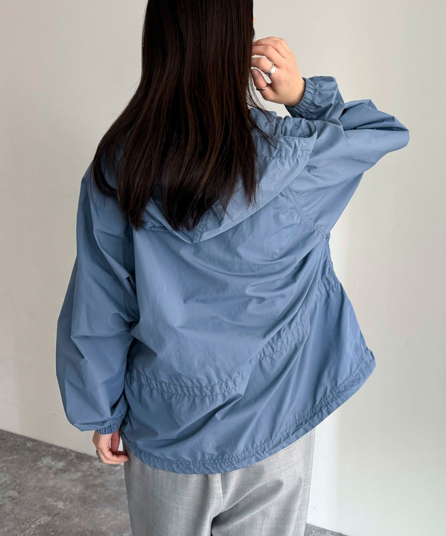 ・フード部分と裾にドローコードが付いているのでシルエットを微調整して着用していただけます