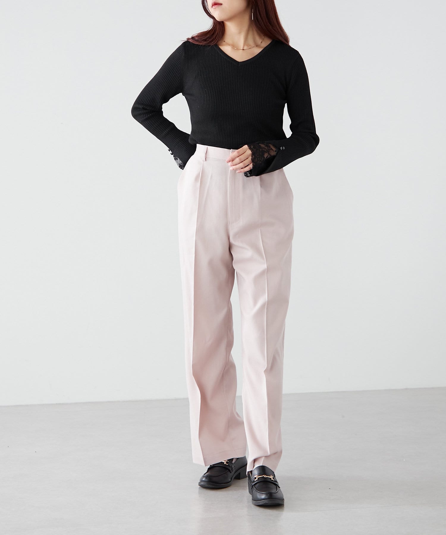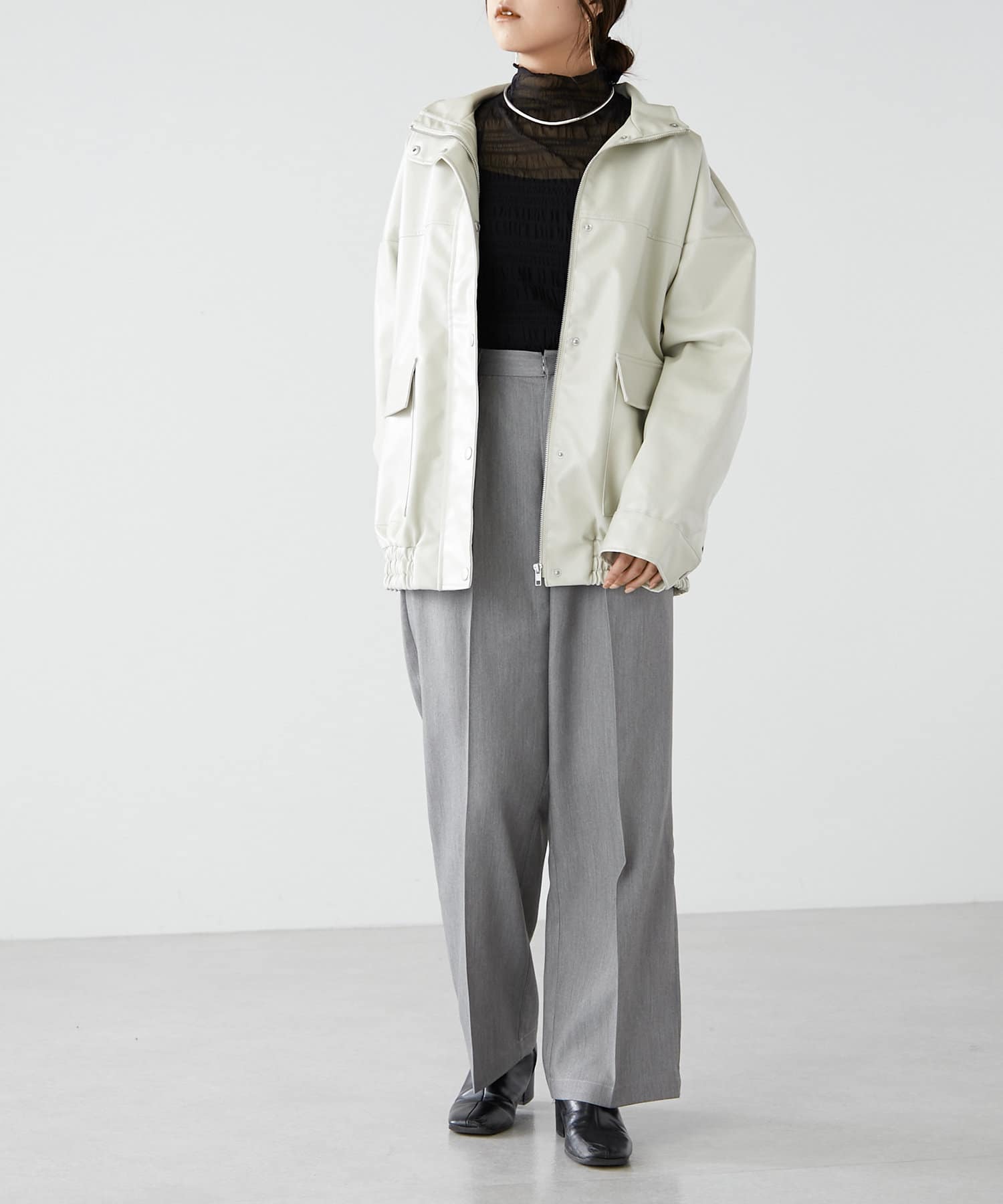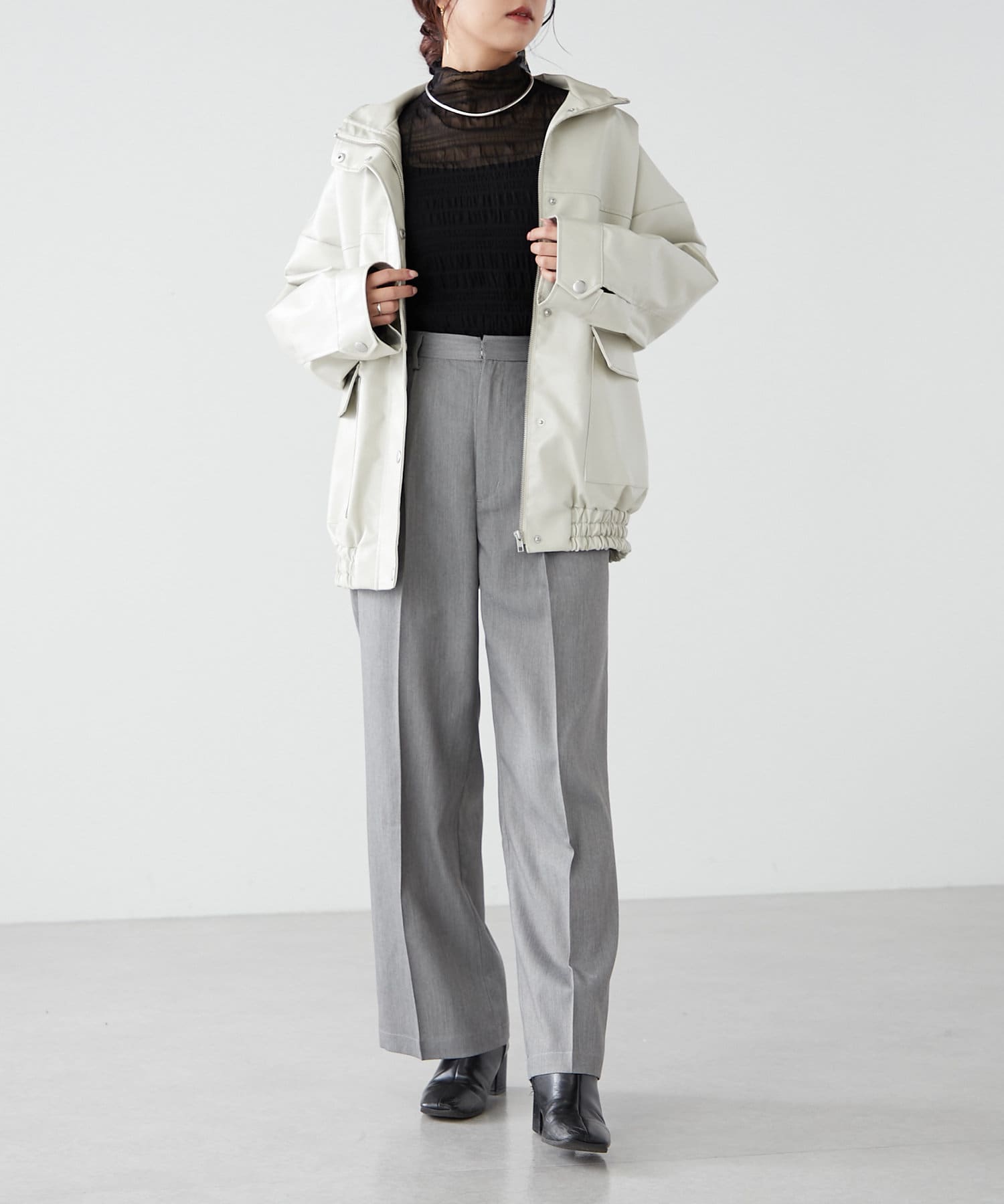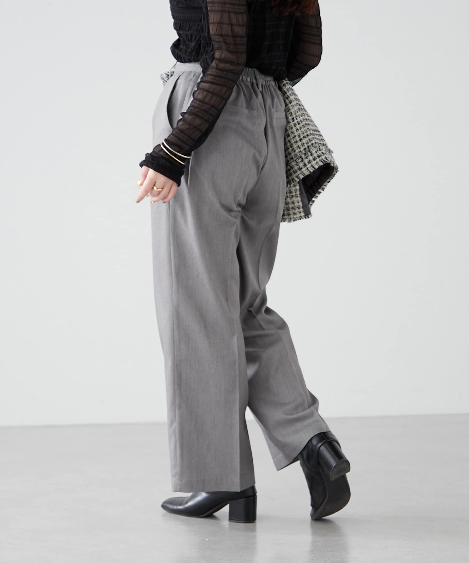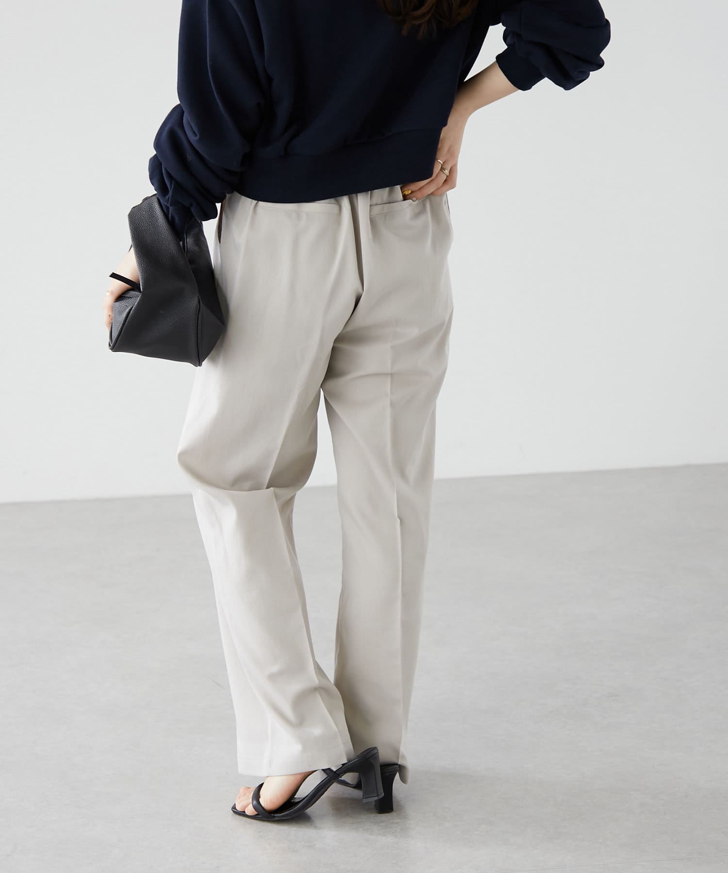 ・シャツやリブニットなどきれいめなアイテムと合わせたオフィス系コーデから、スウェットやオーバーニットのカジュアルコーデまで、幅広いテイストに対応