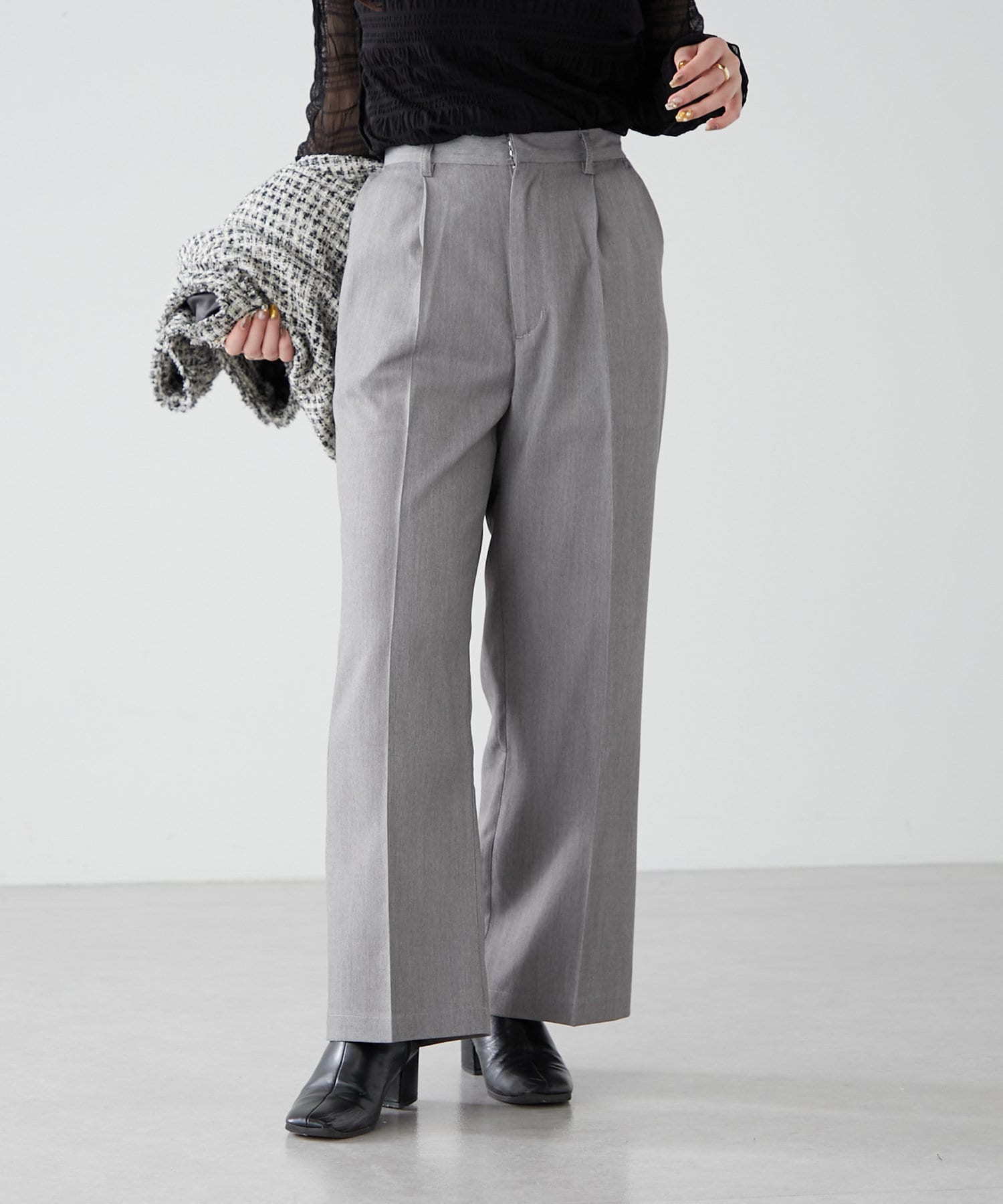 Remind me and forever(リマインドミーアンドフォーエバー) 【S/Mサイズ展開】美シルエットタックワイドパンツ