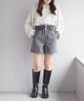・トップスには存在感のあるボウタイブラウスやデザインニットを合わせるのがおすすめ。