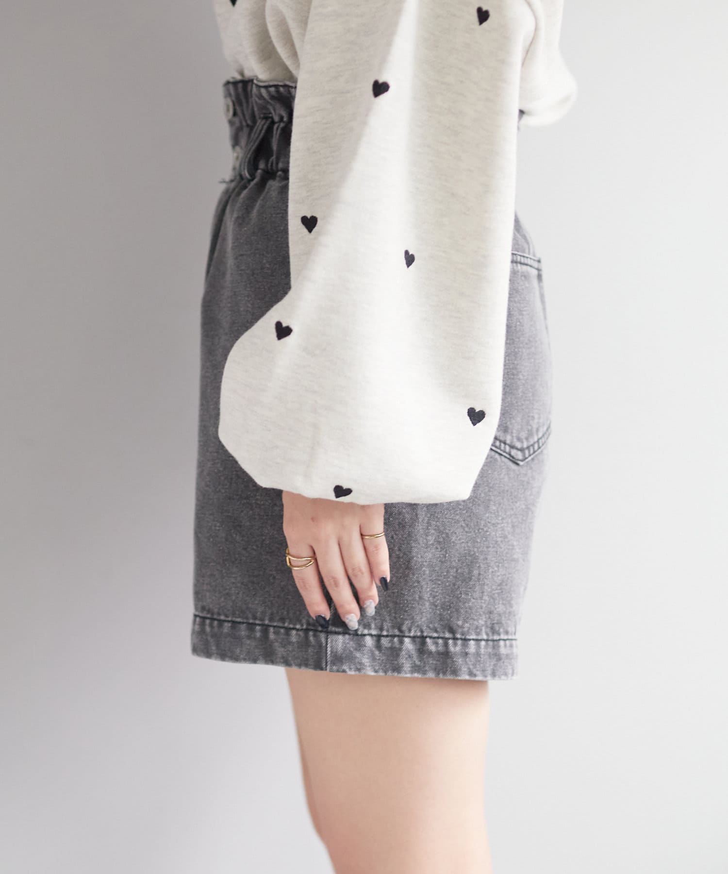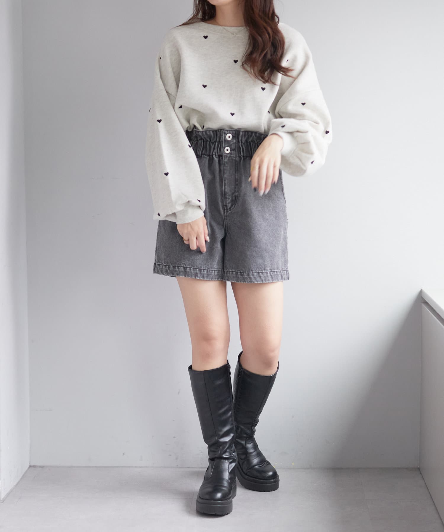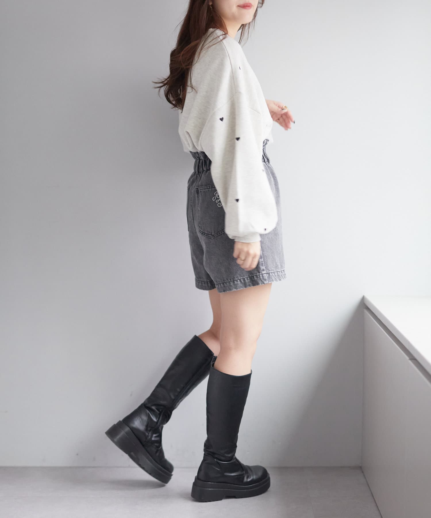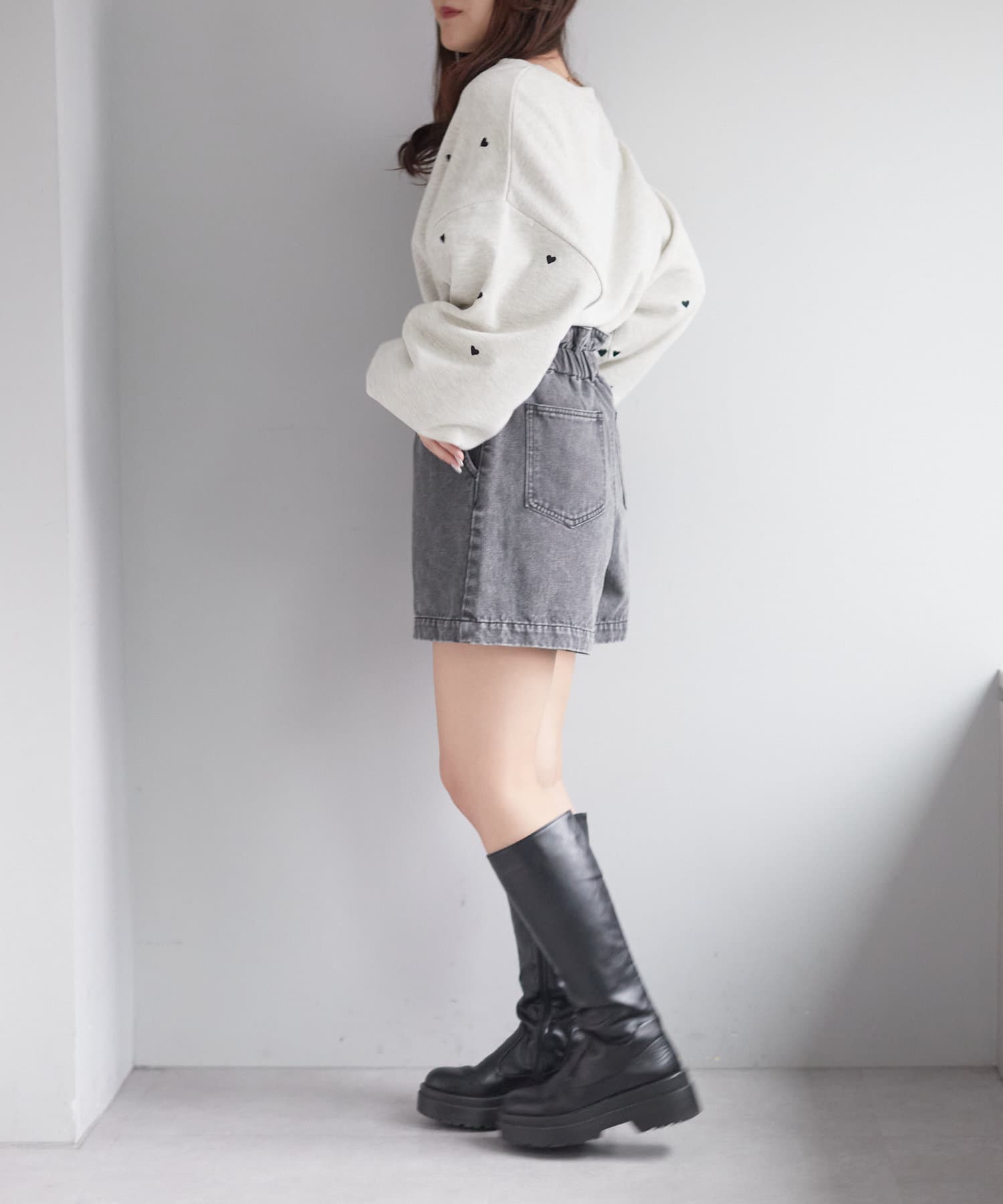 ・刺繍がワンポイントになるのでショート丈のニットやロンTも相性◎