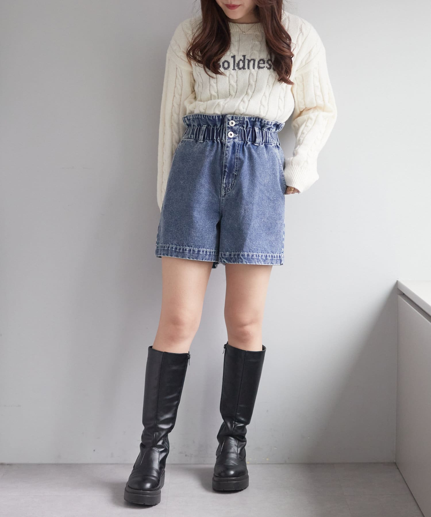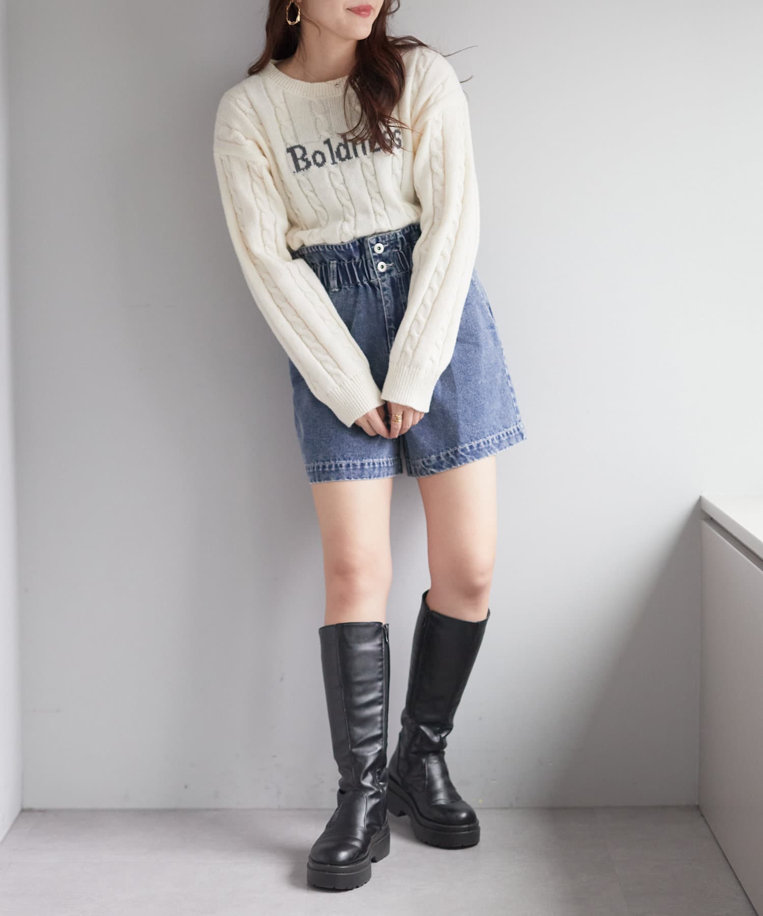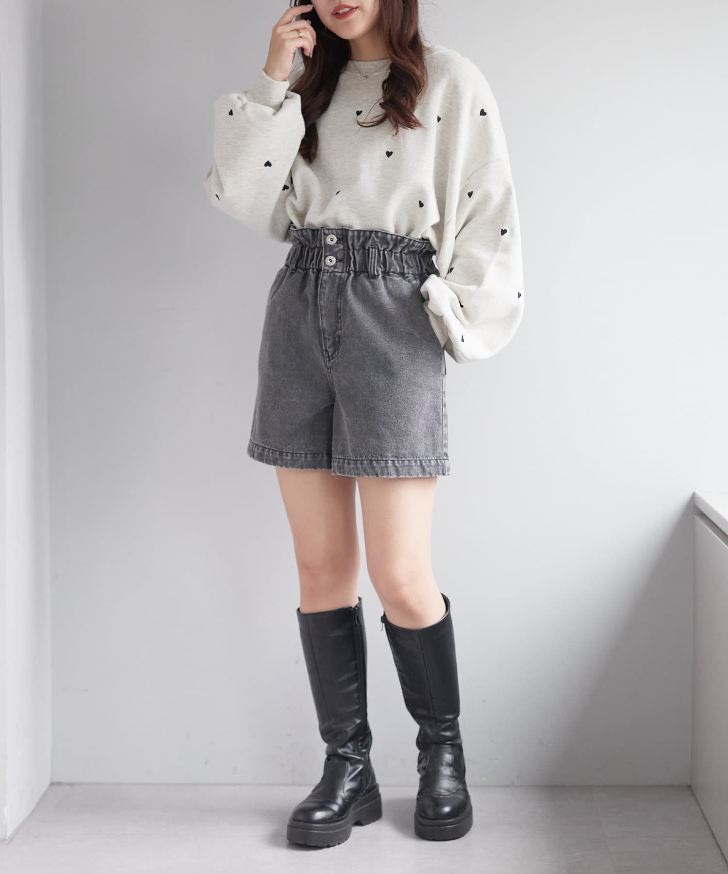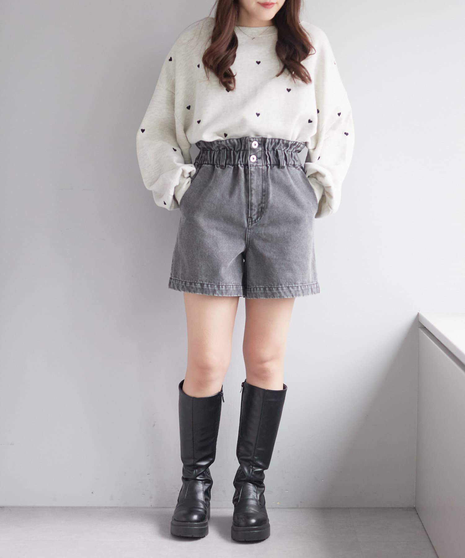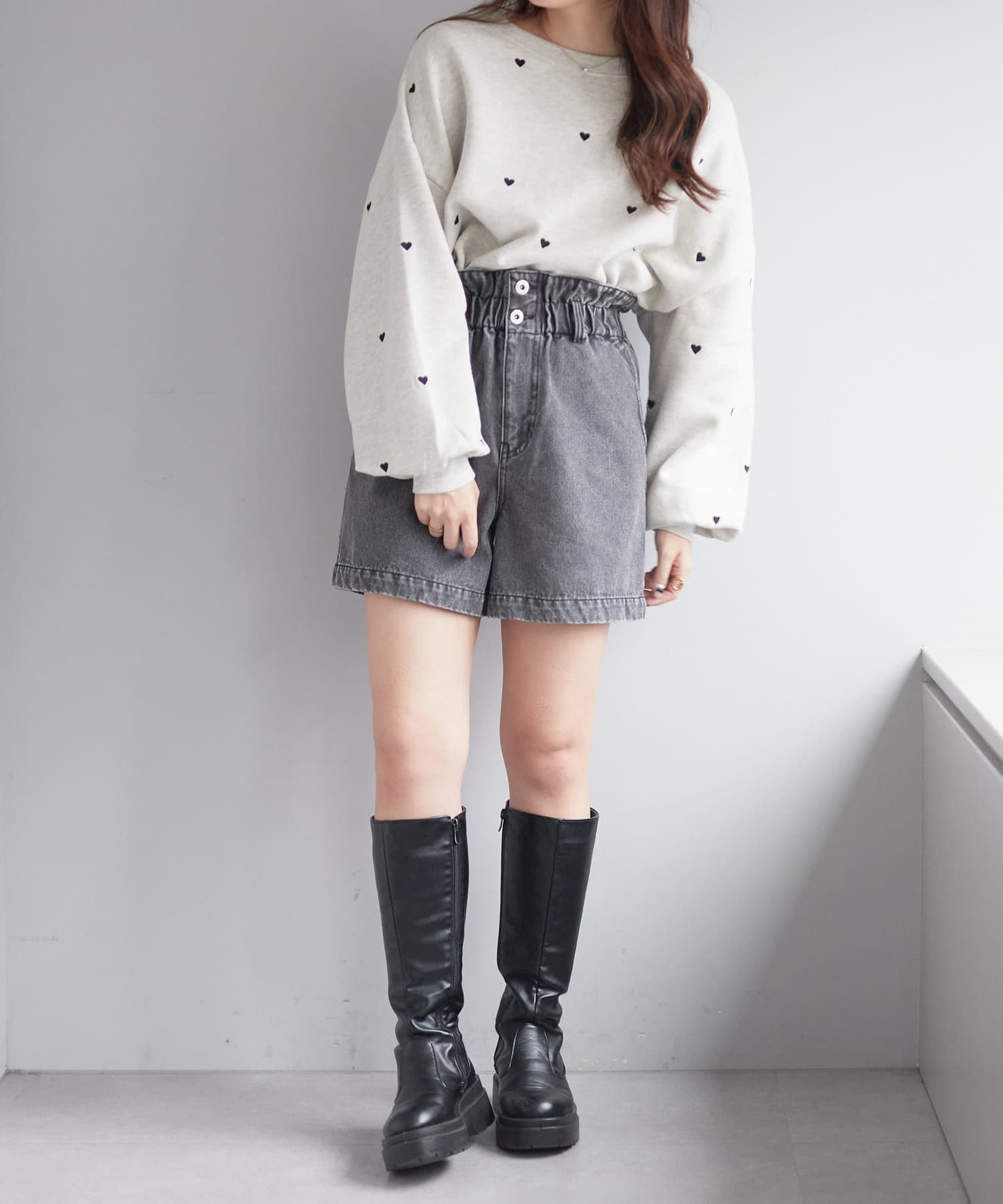 ・刺繍がワンポイントになるのでショート丈のニットやロンTも相性◎