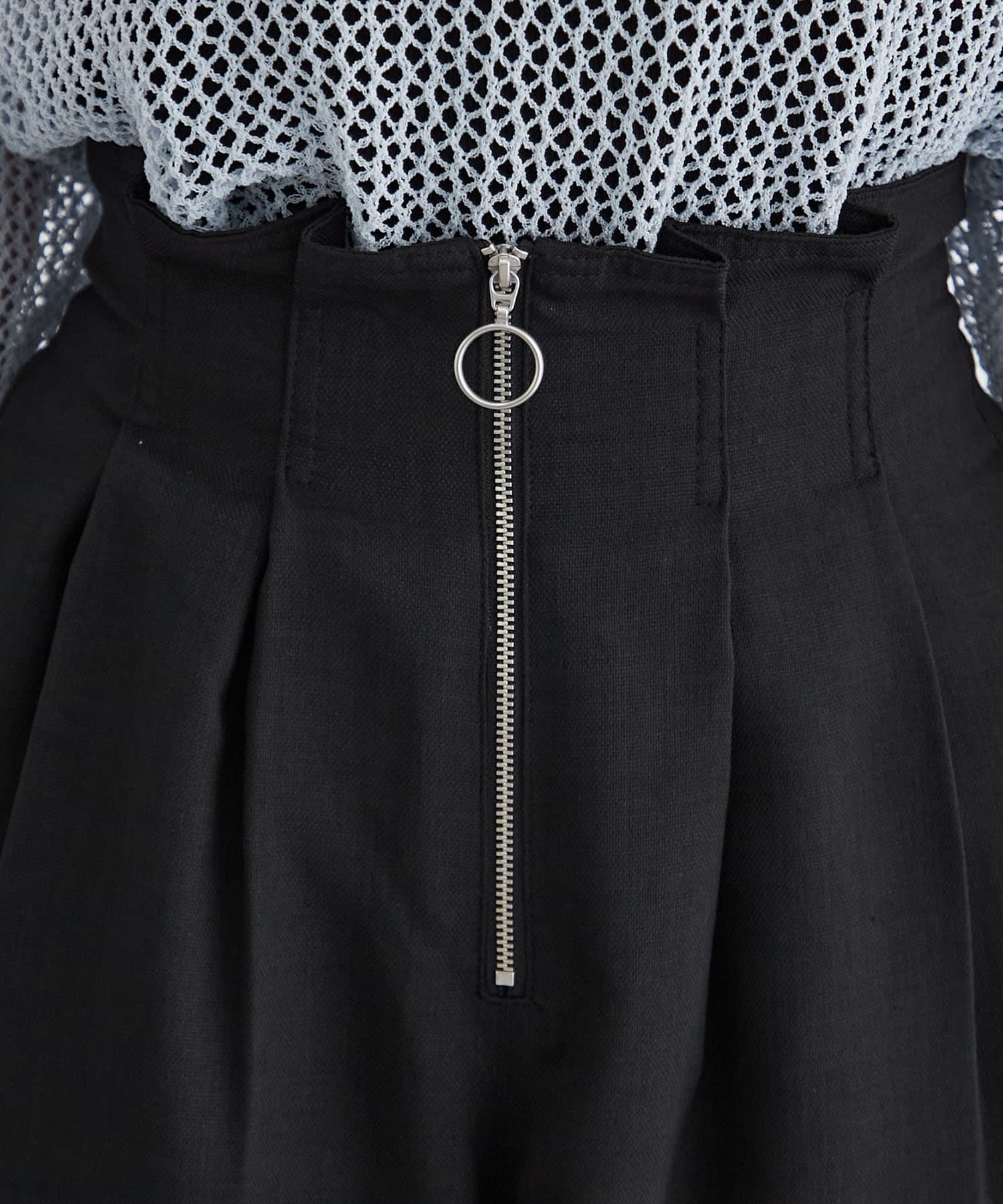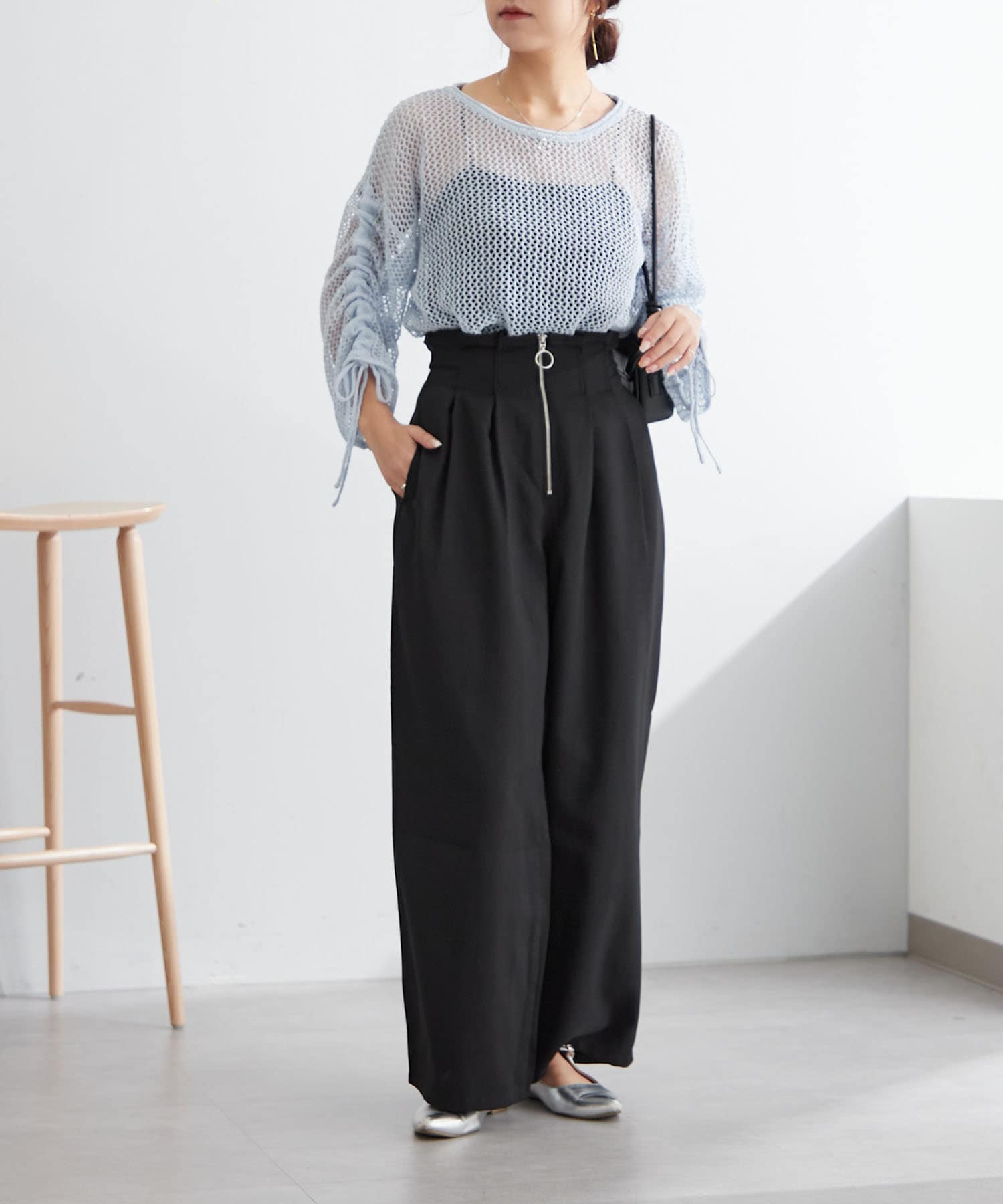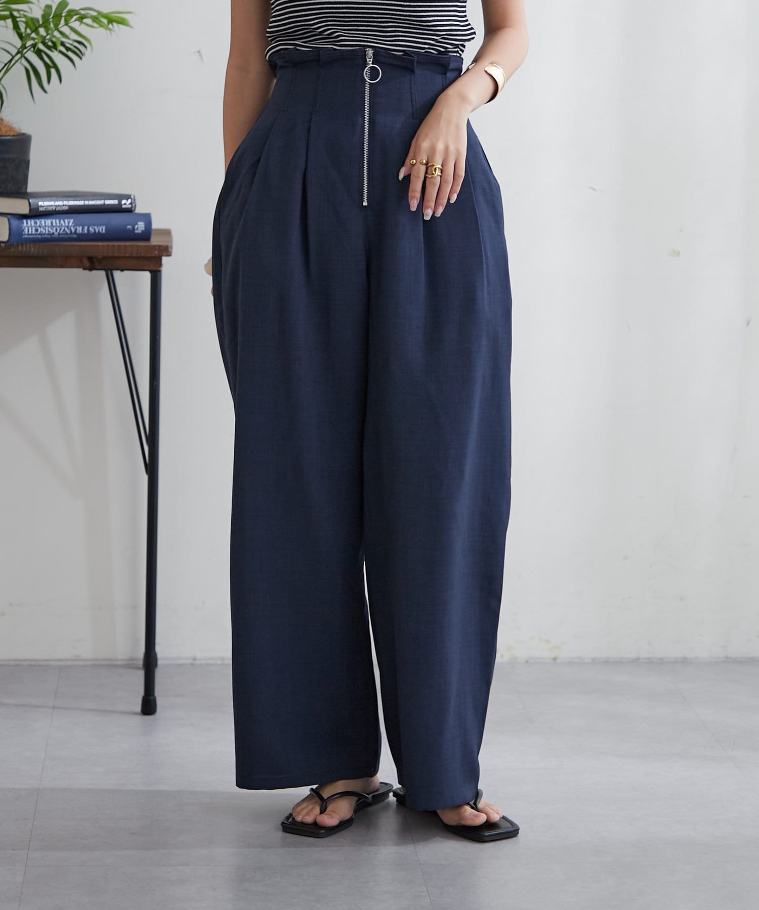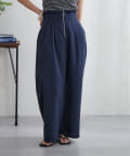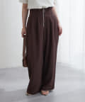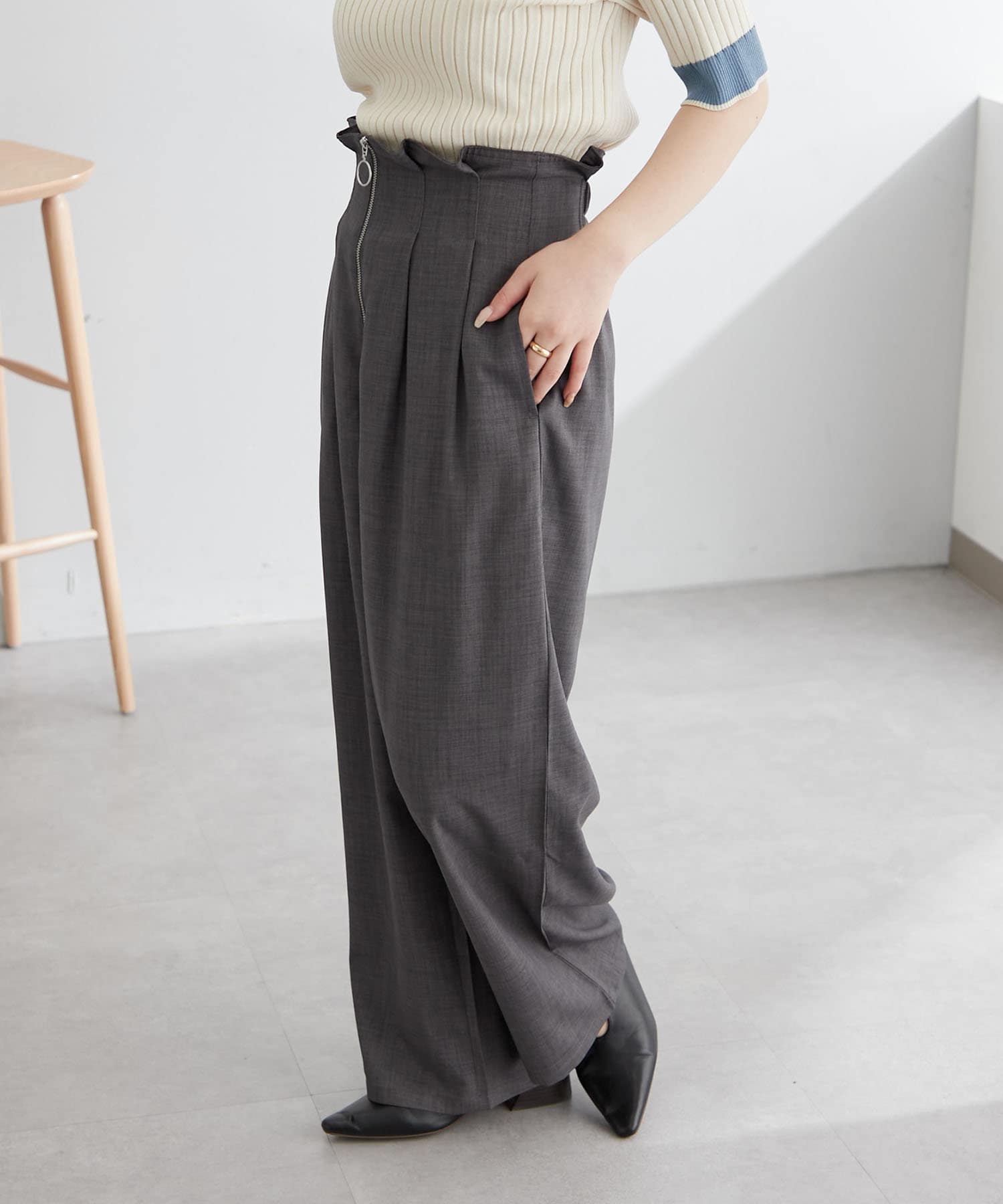 ・フロントジップがすっきりとした印象になるワイドパンツ