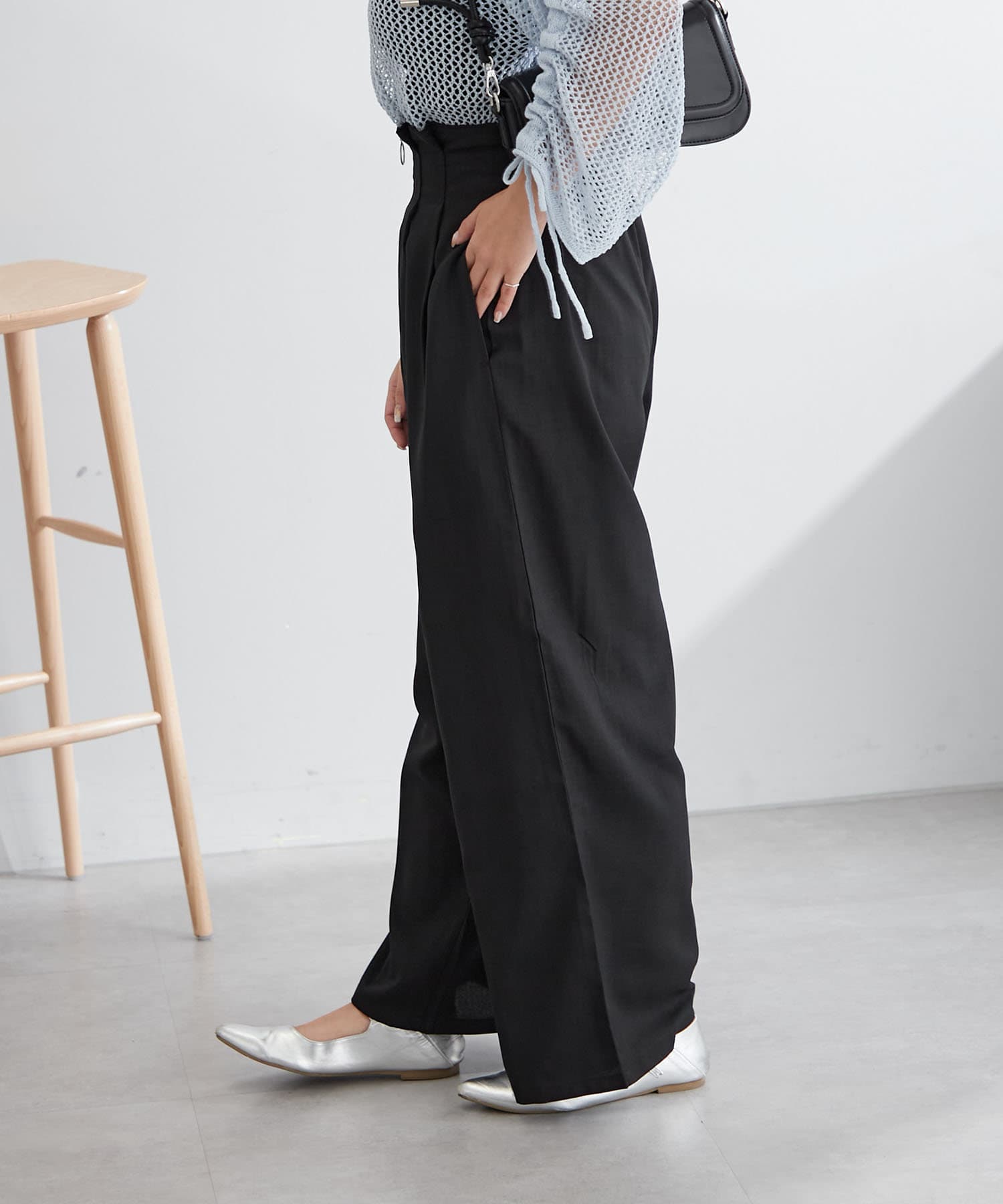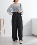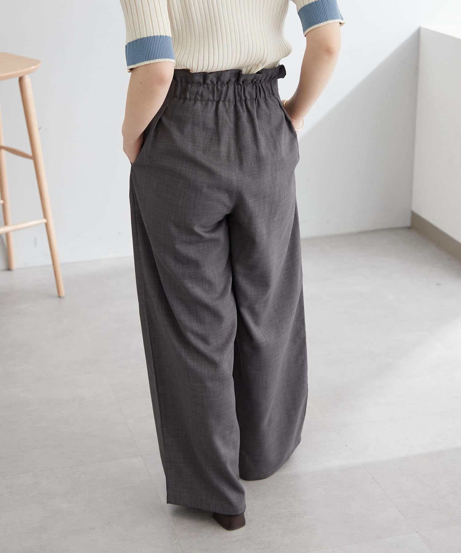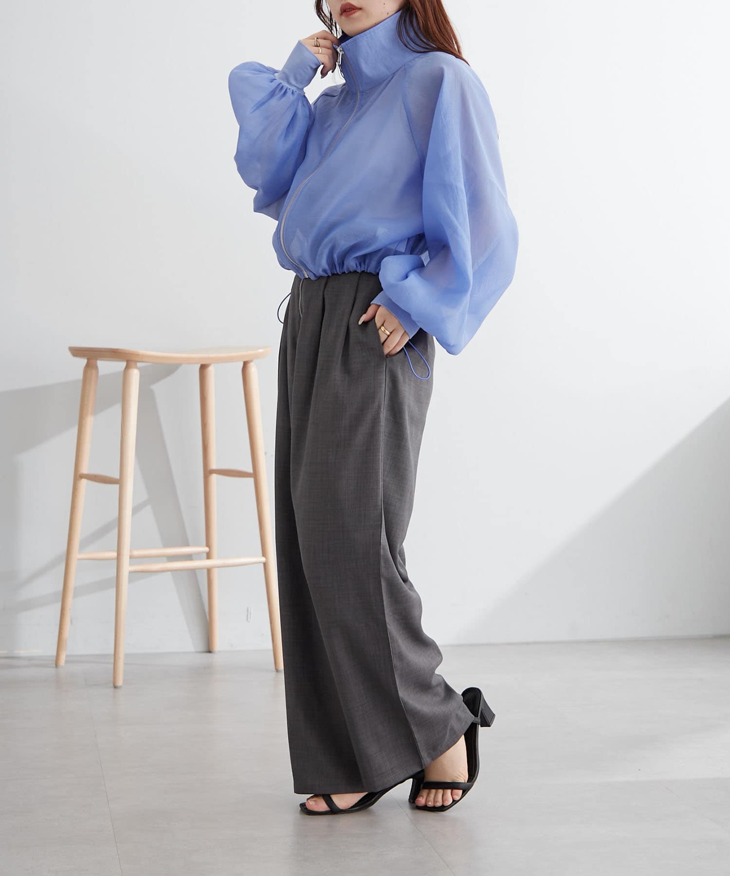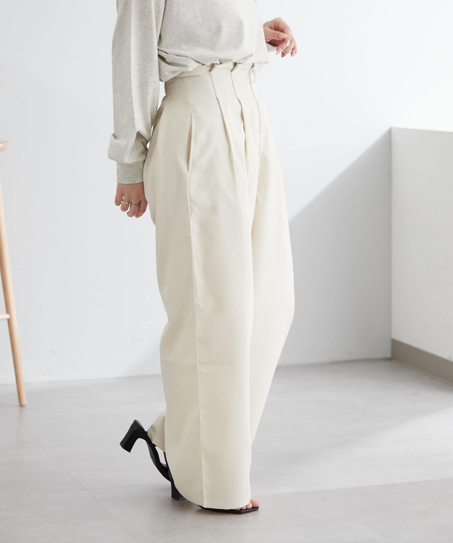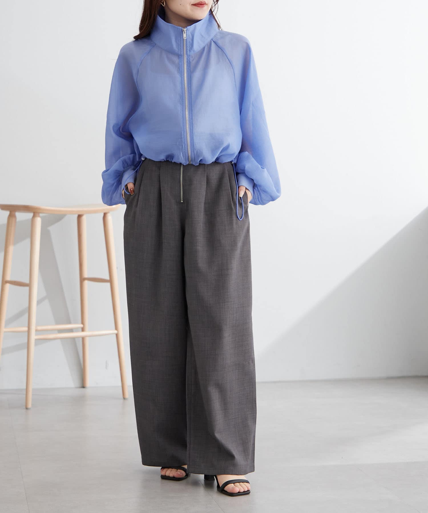 ・フロントジップがすっきりとした印象になるワイドパンツ