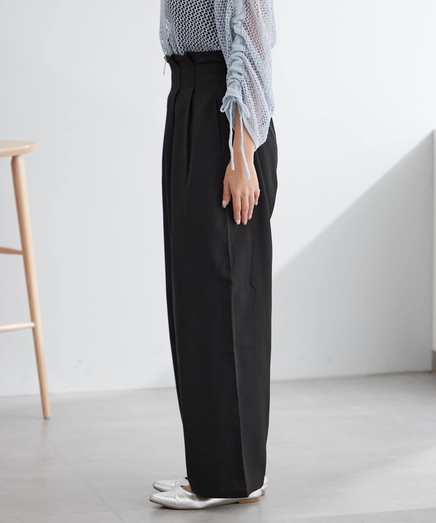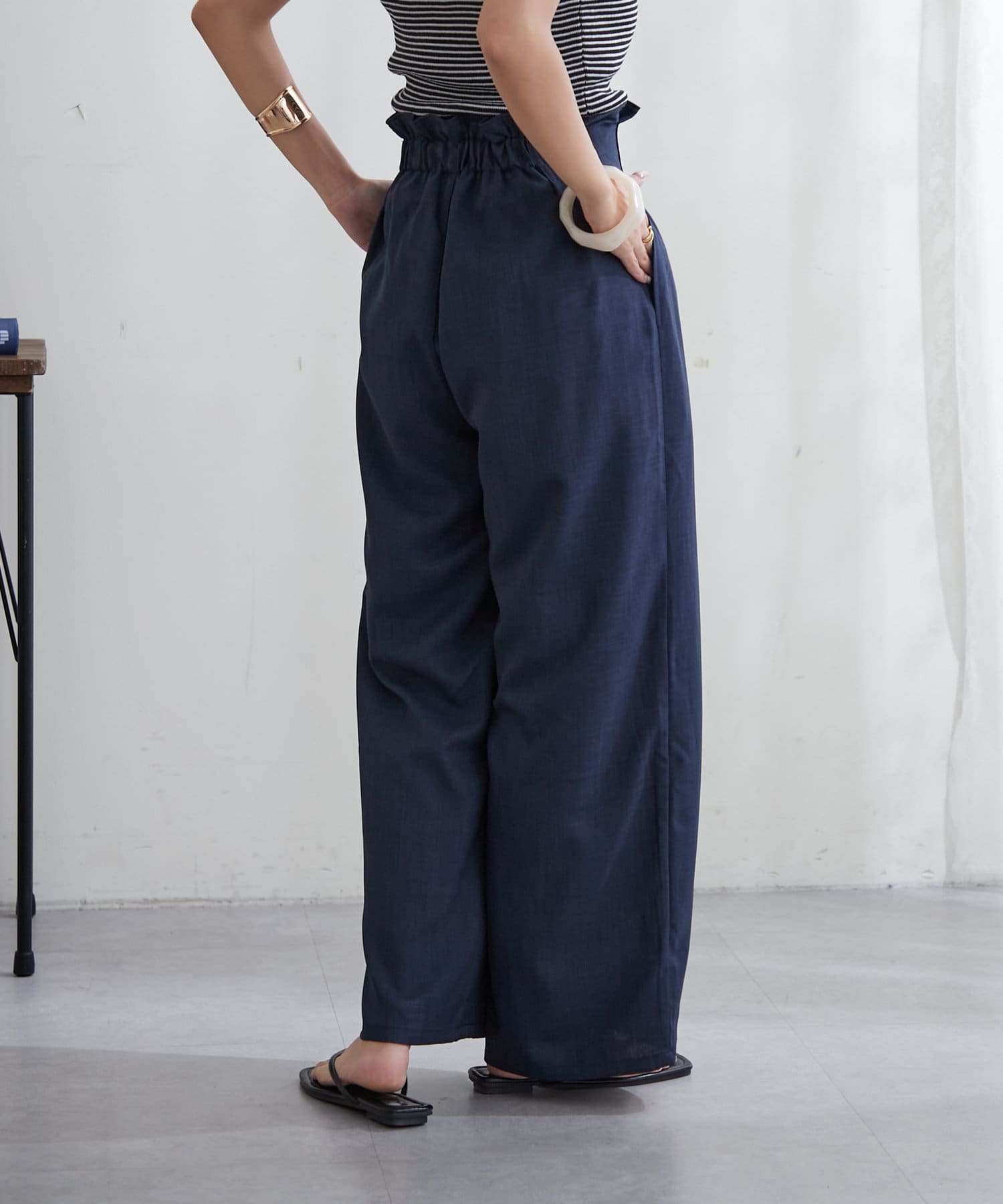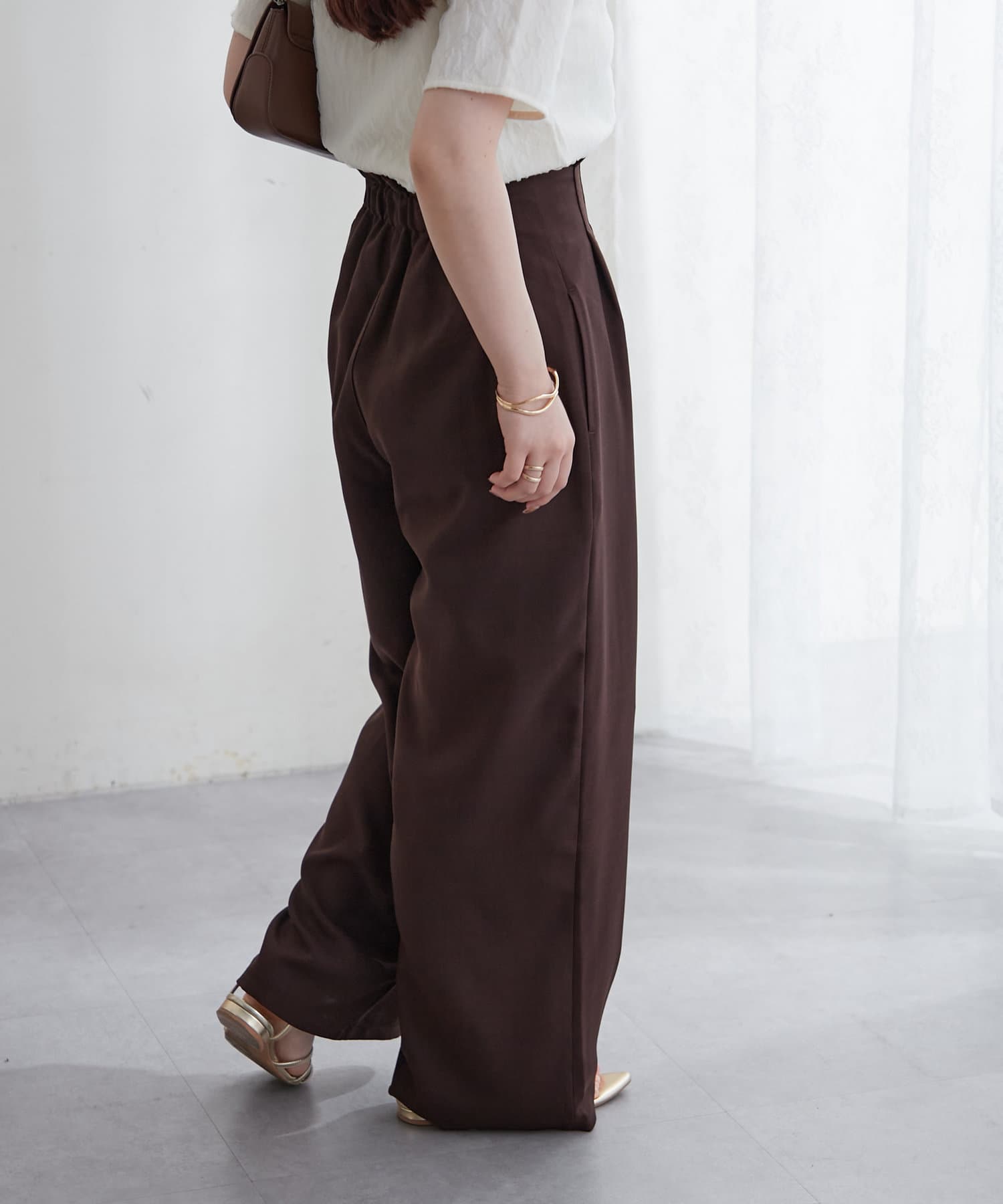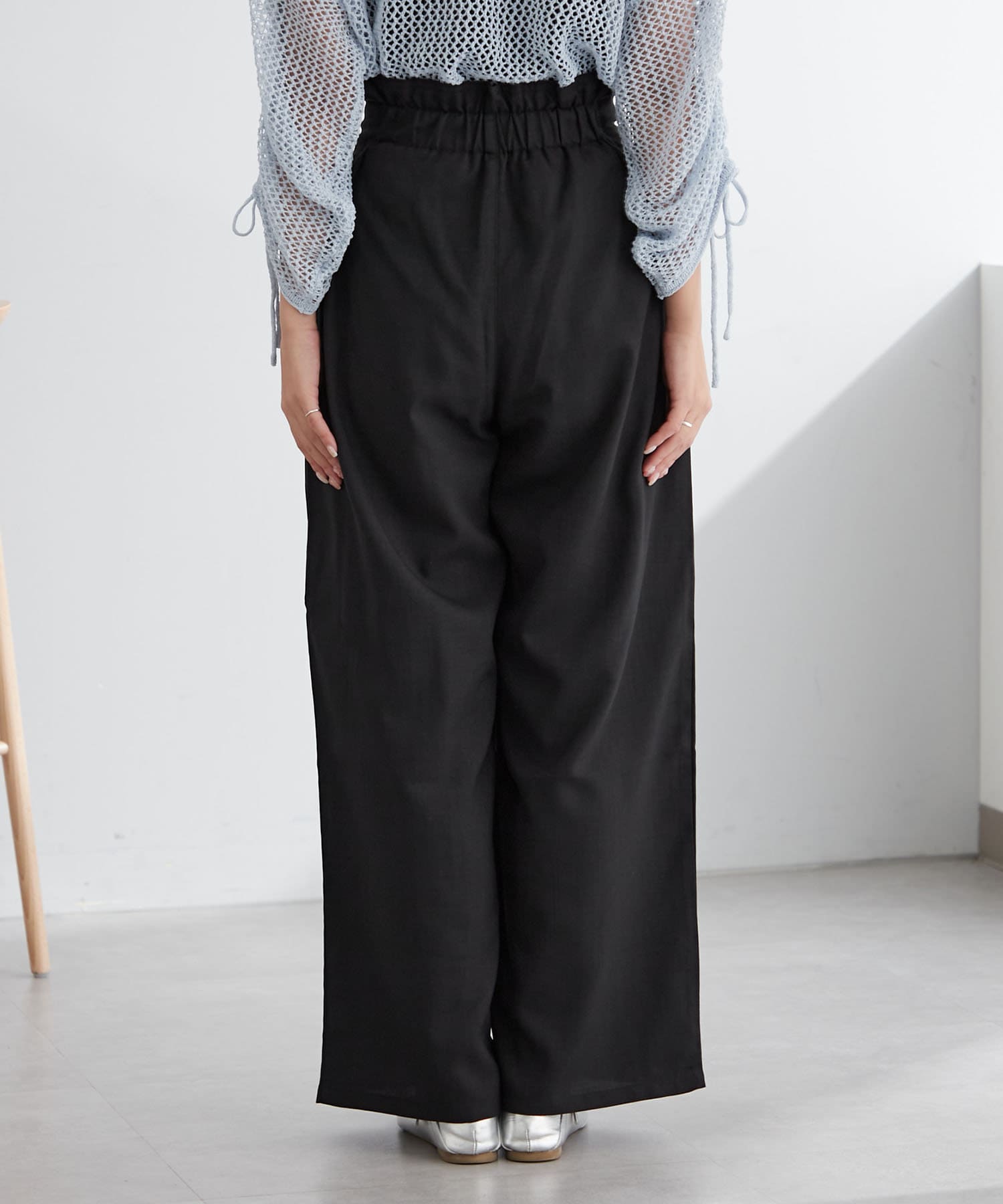 ・フロントジップがすっきりとした印象になるワイドパンツ