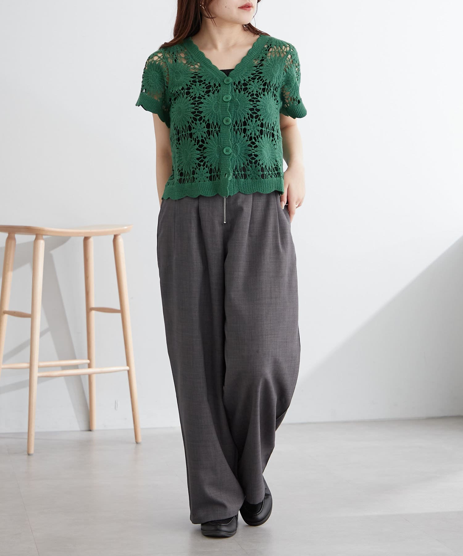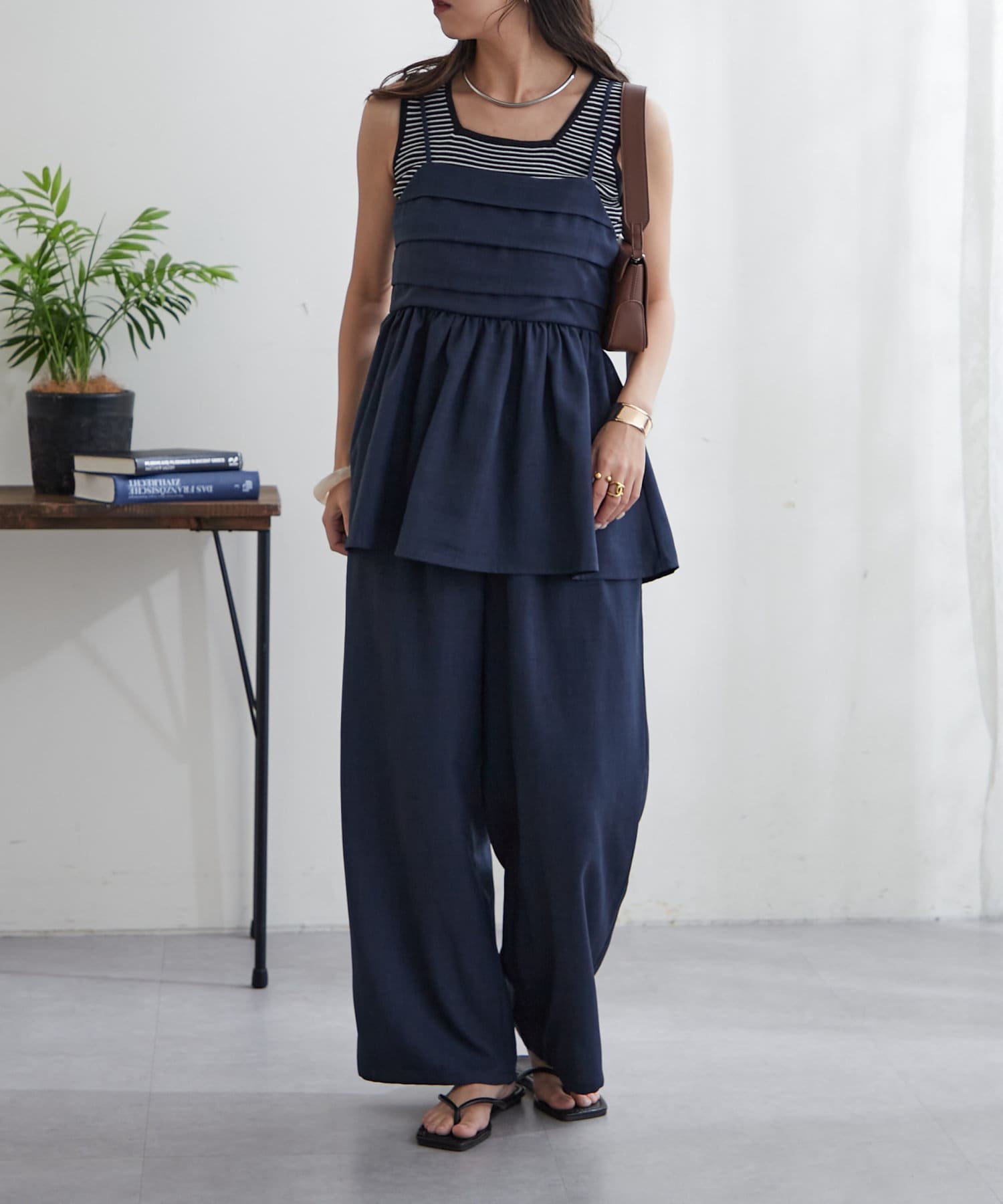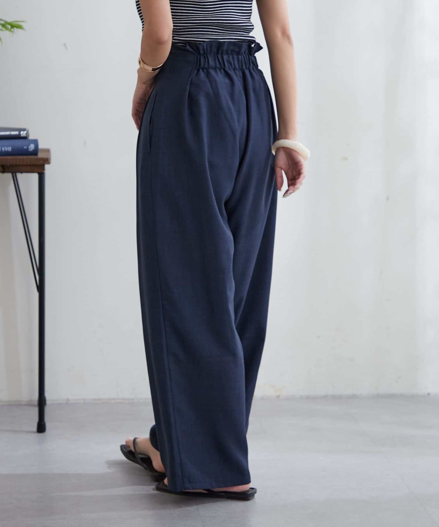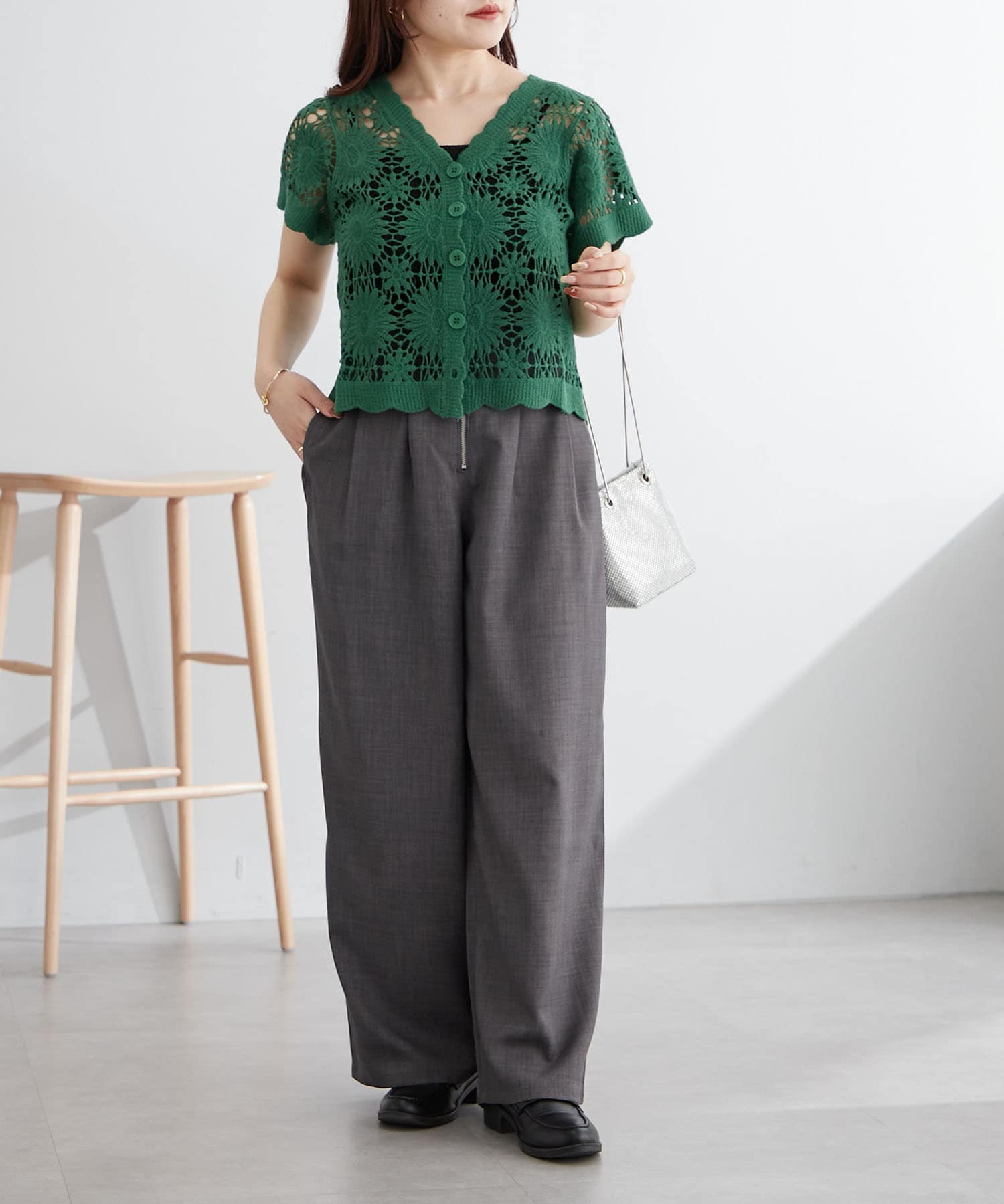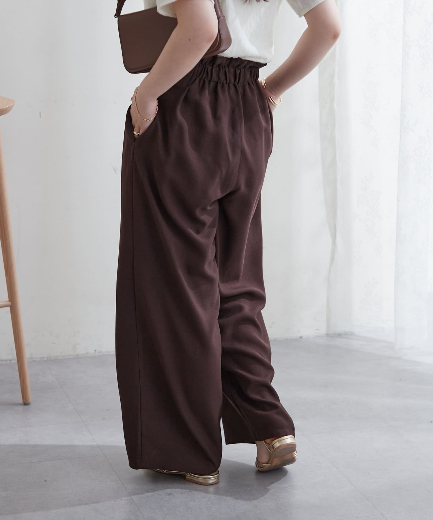 ・フロントジップがすっきりとした印象になるワイドパンツ