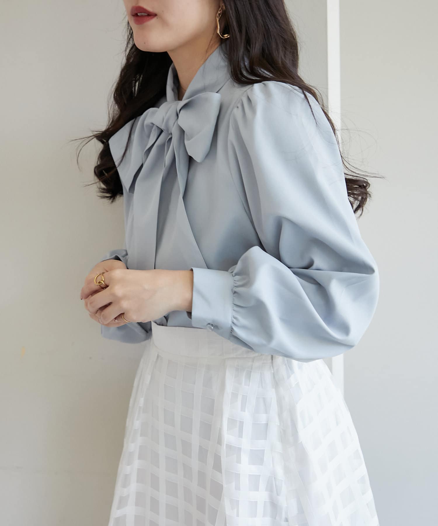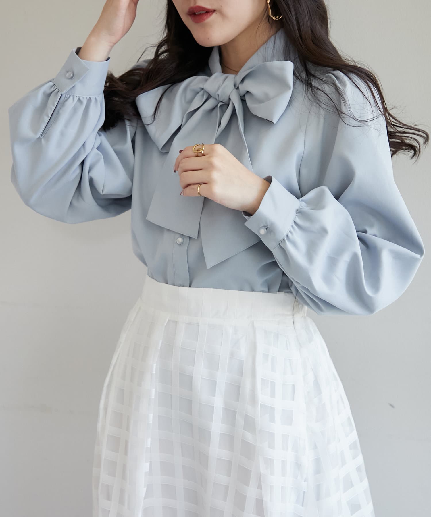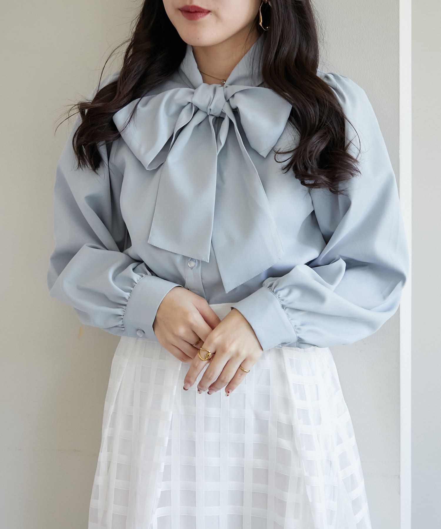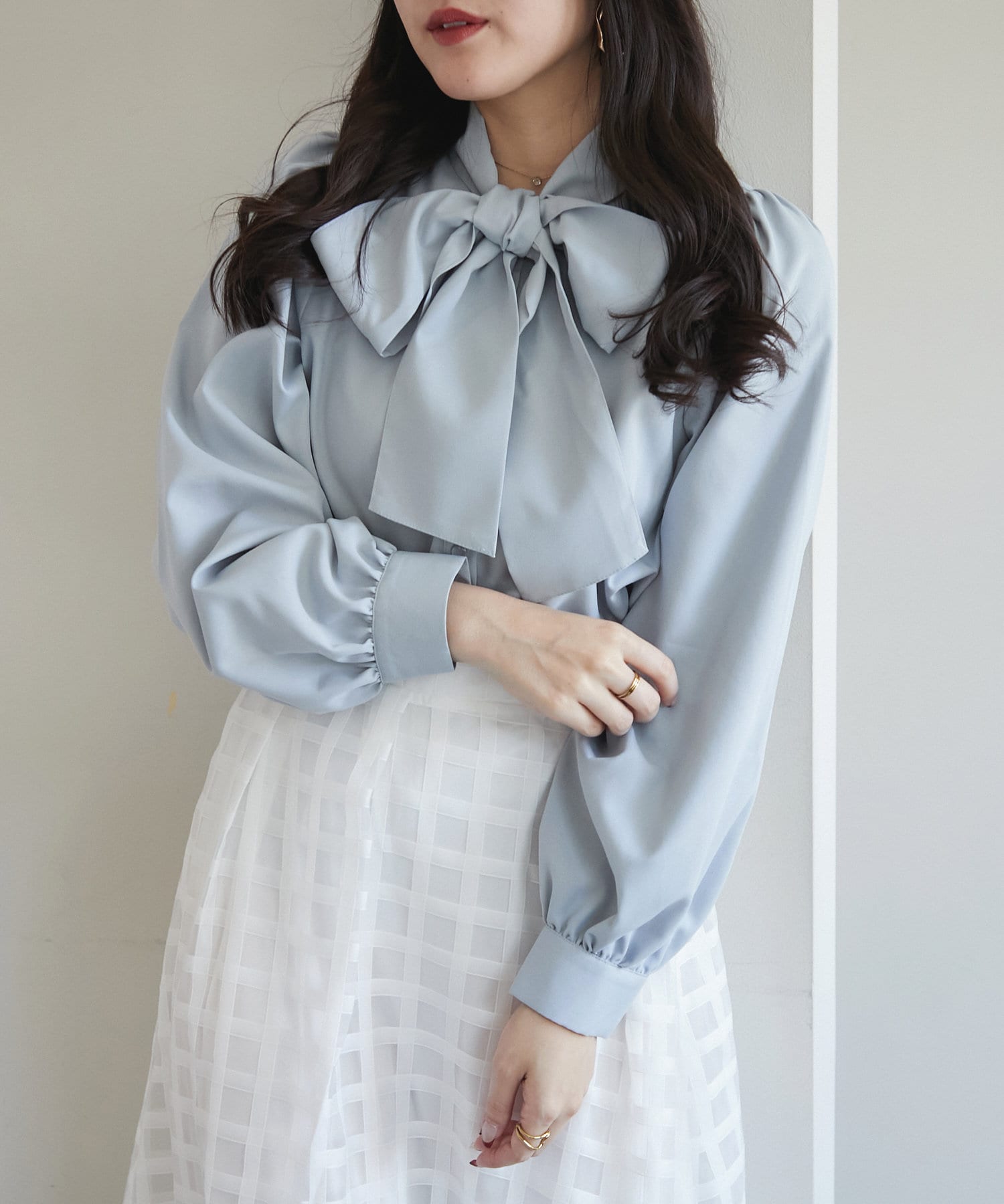 ・季節の境目には1枚着として、寒い季節にはニットやジャケットの中にレイヤードしてもリボンが映えます。