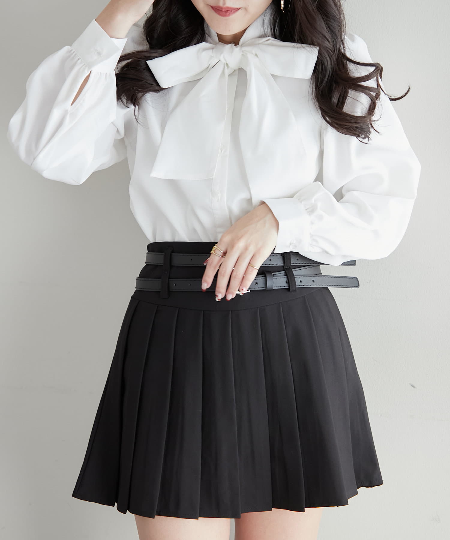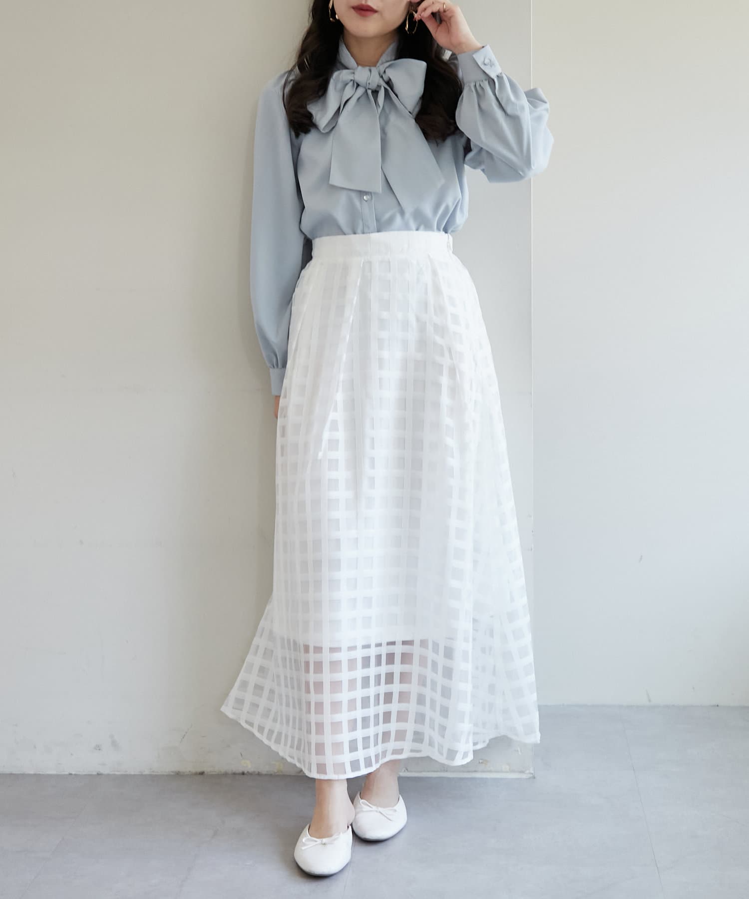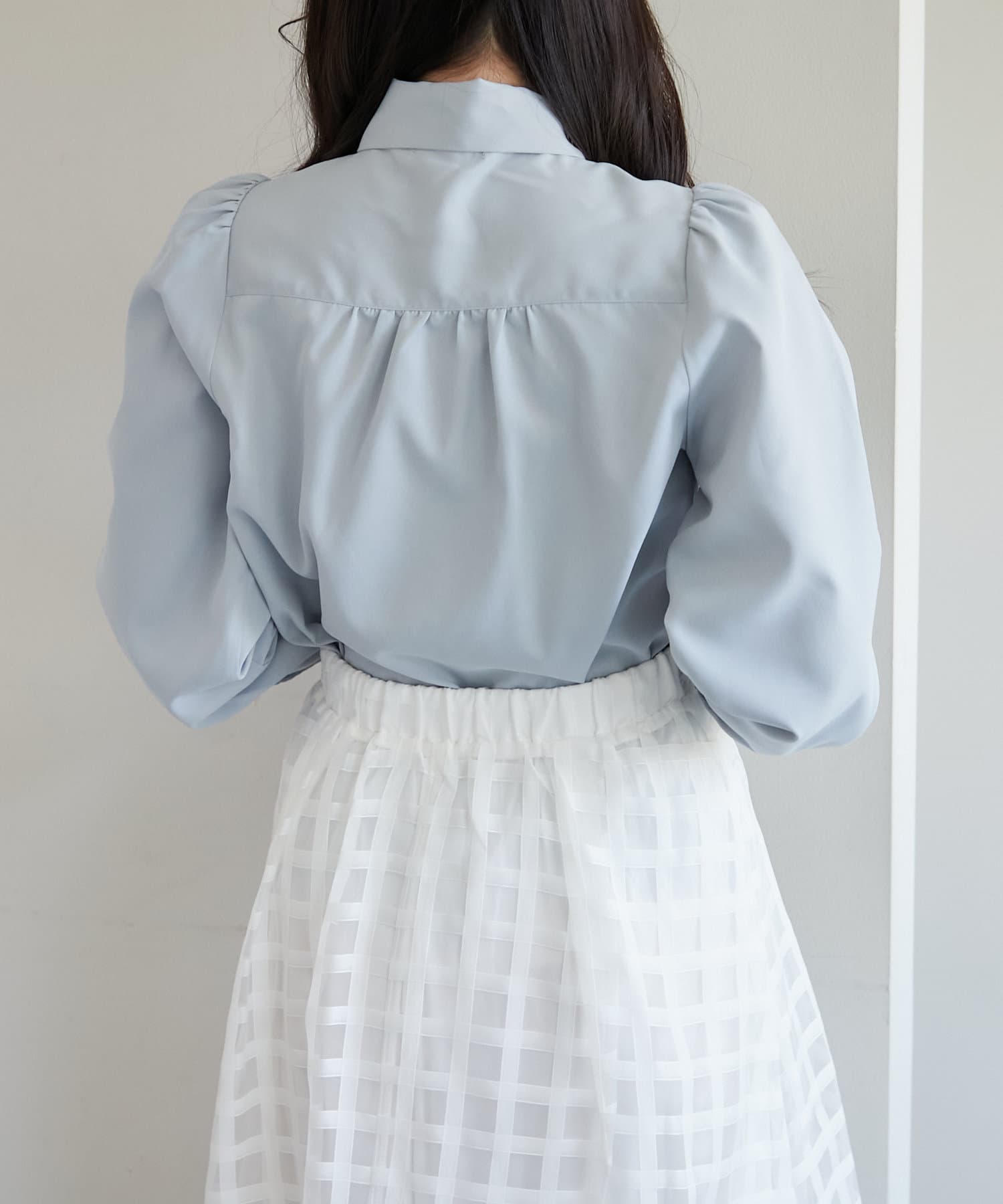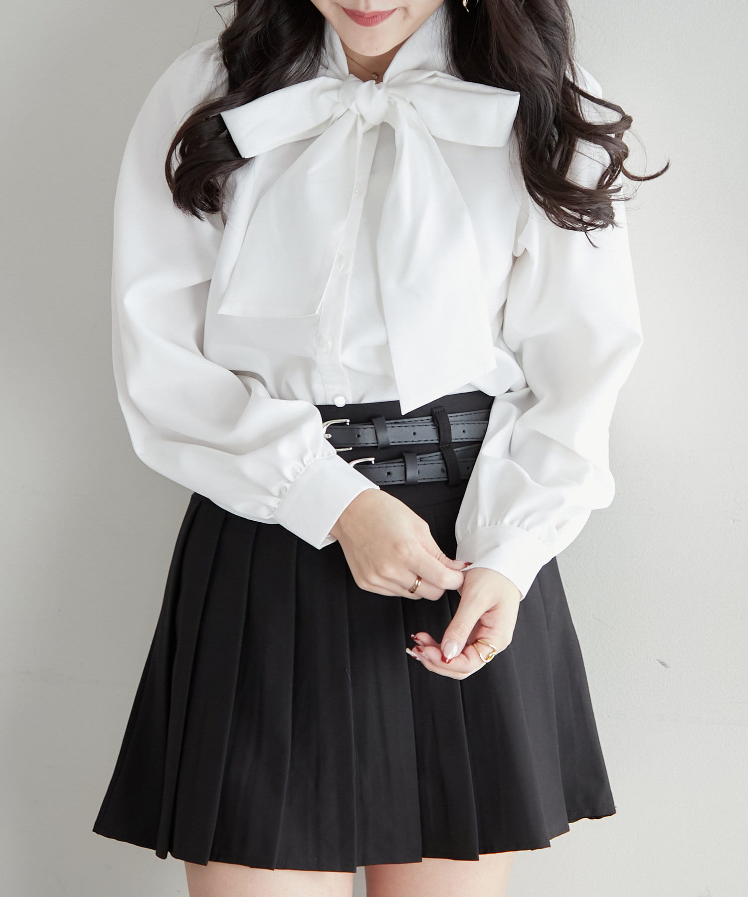 ・季節の境目には1枚着として、寒い季節にはニットやジャケットの中にレイヤードしてもリボンが映えます。