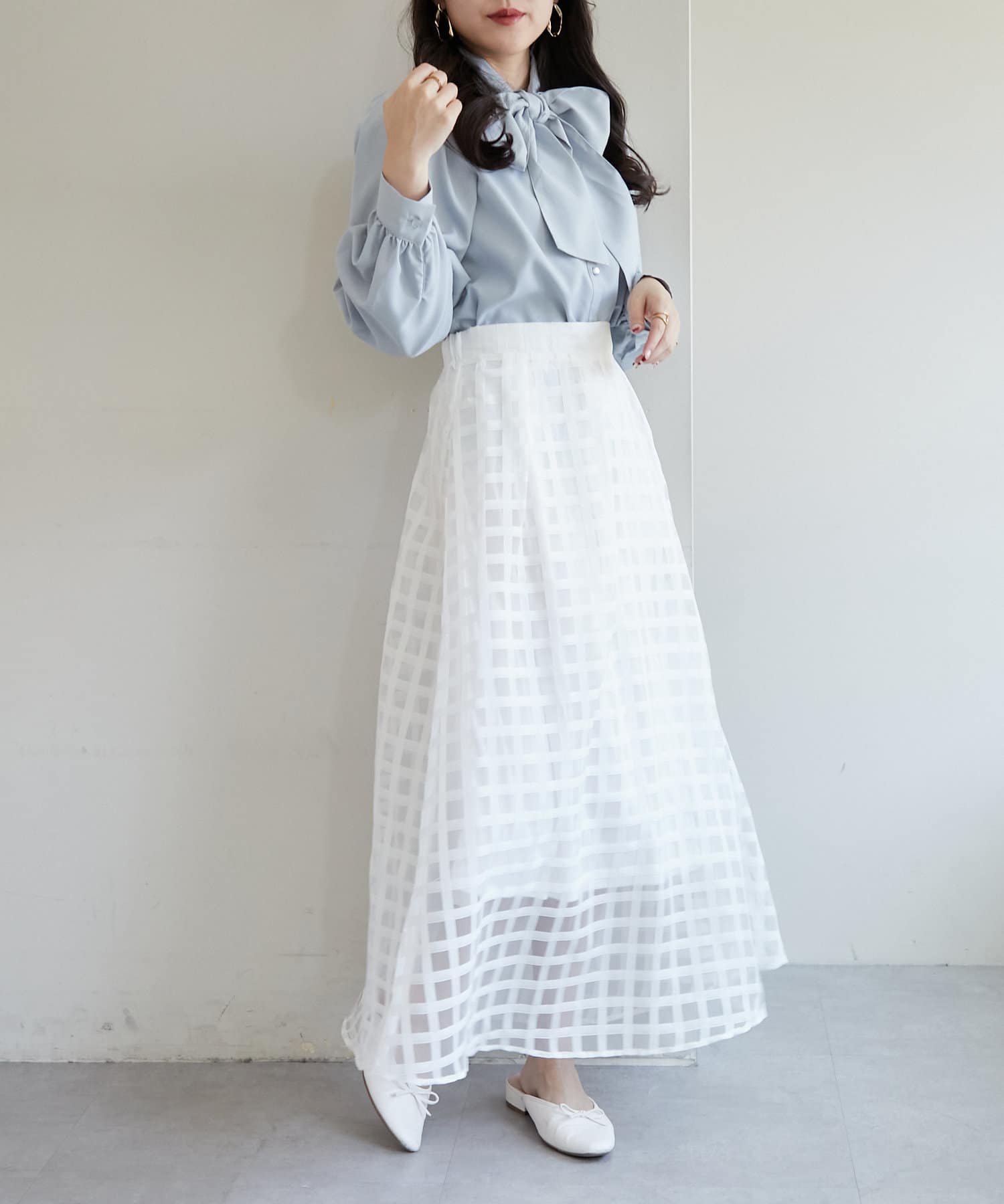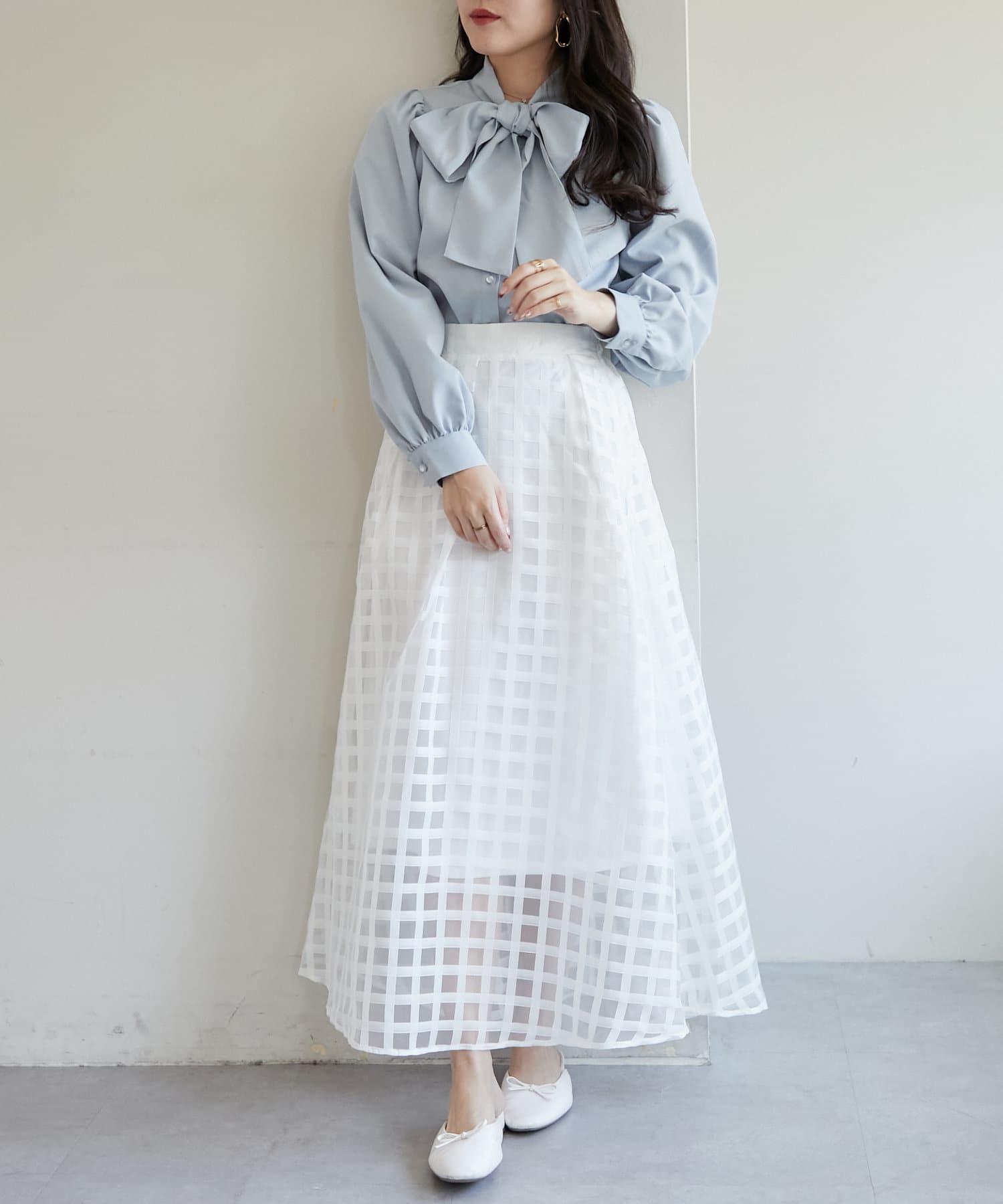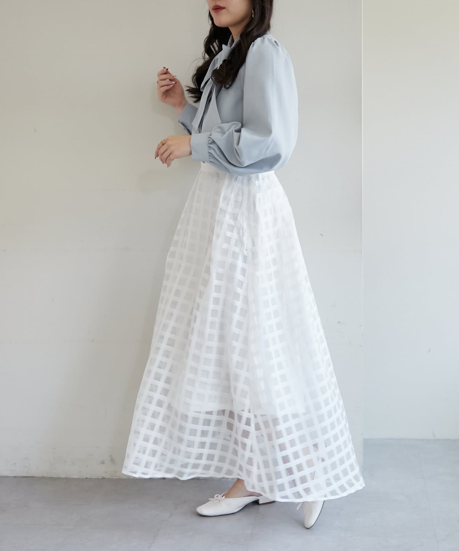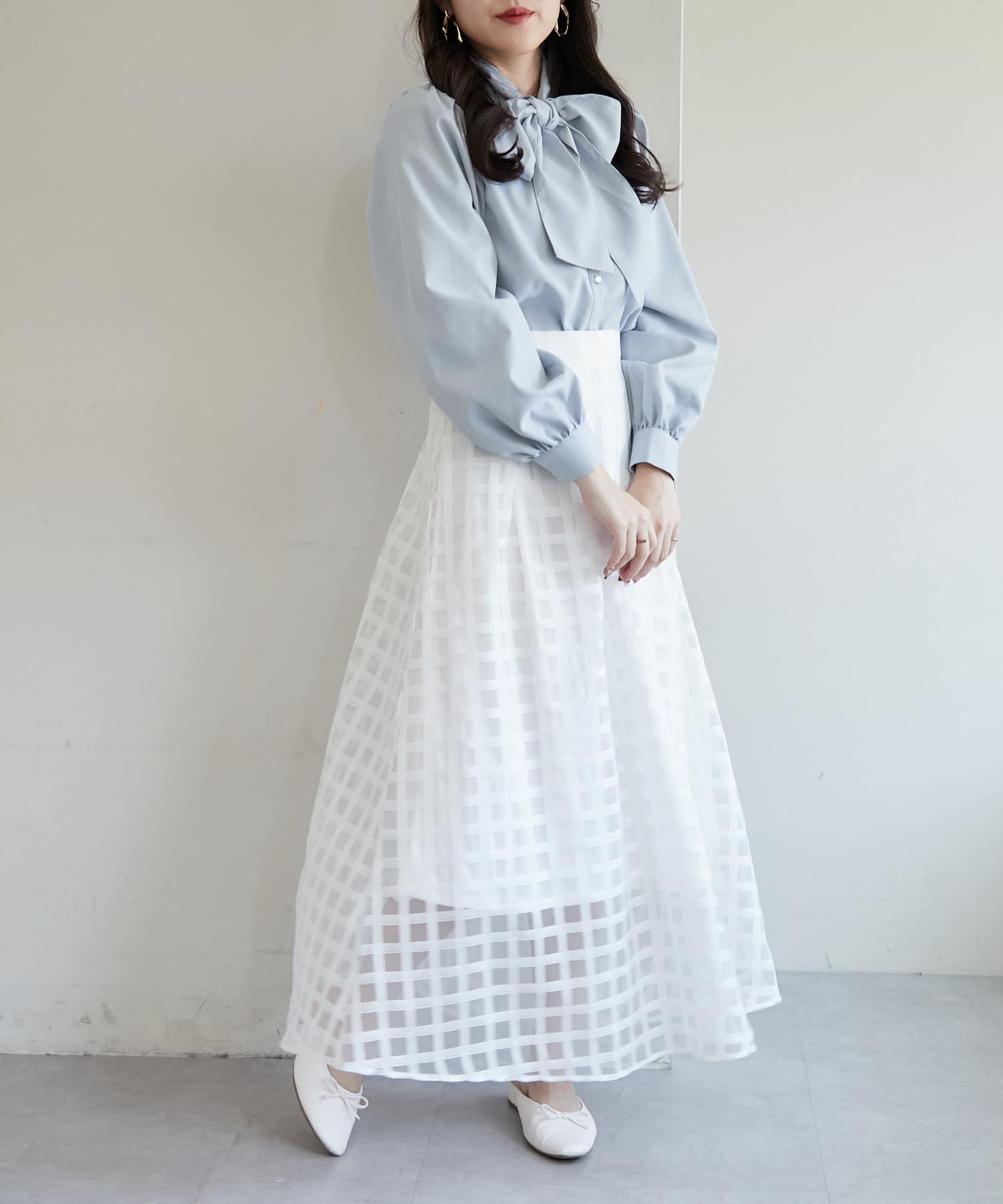 ・季節の境目には1枚着として、寒い季節にはニットやジャケットの中にレイヤードしてもリボンが映えます。