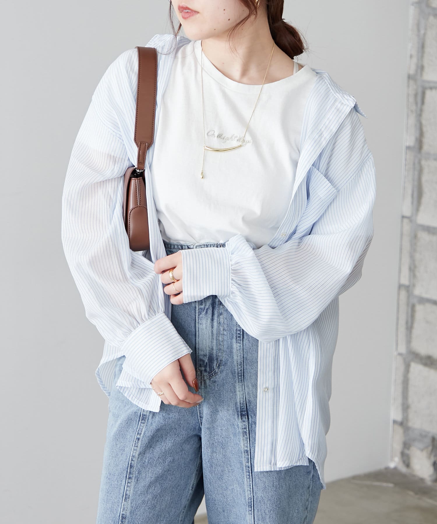 ・暖かい時期にはTシャツの上で結んだり羽織る以外の着こなし方もあるので様々なレイヤードスタイルも楽しめます