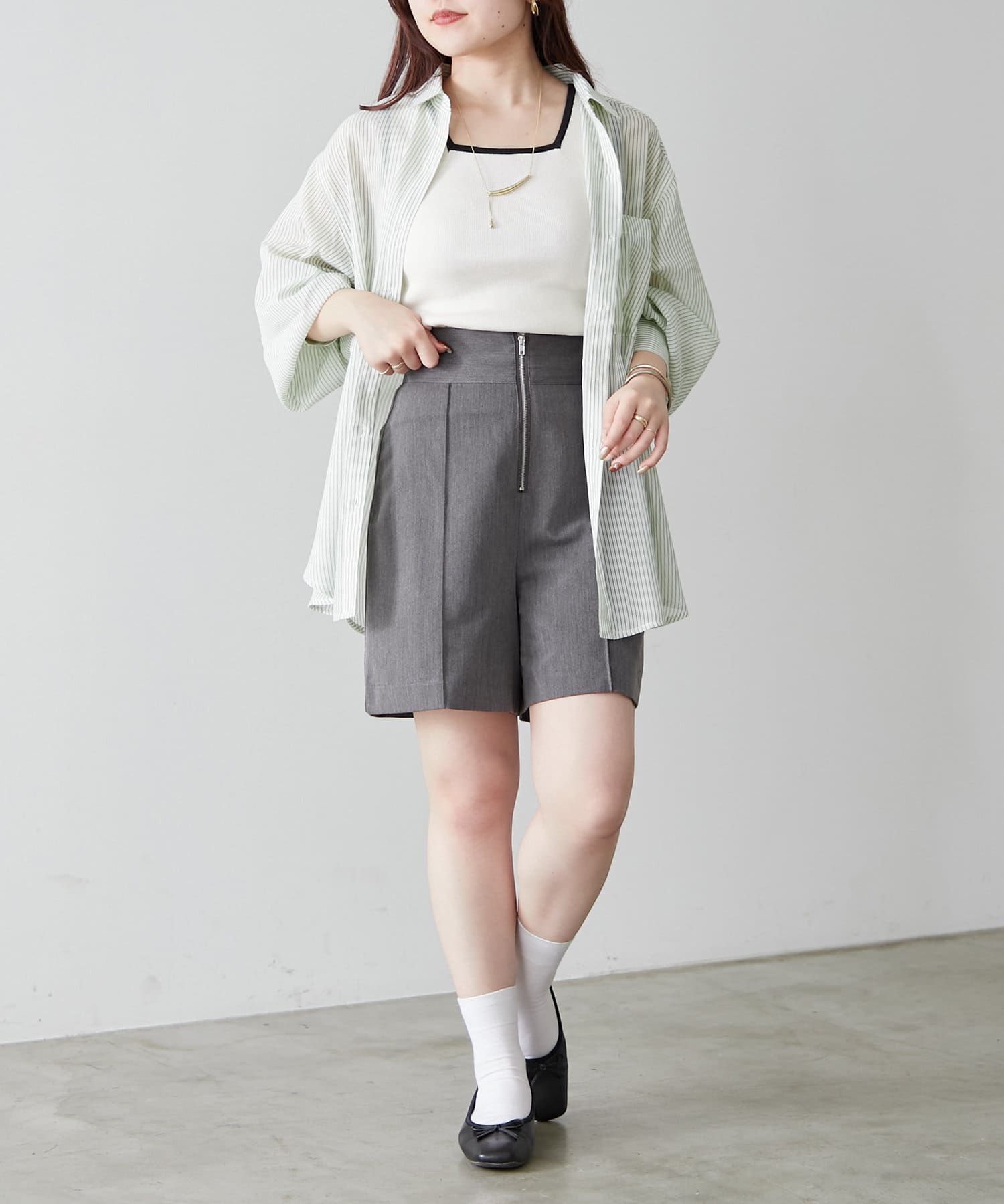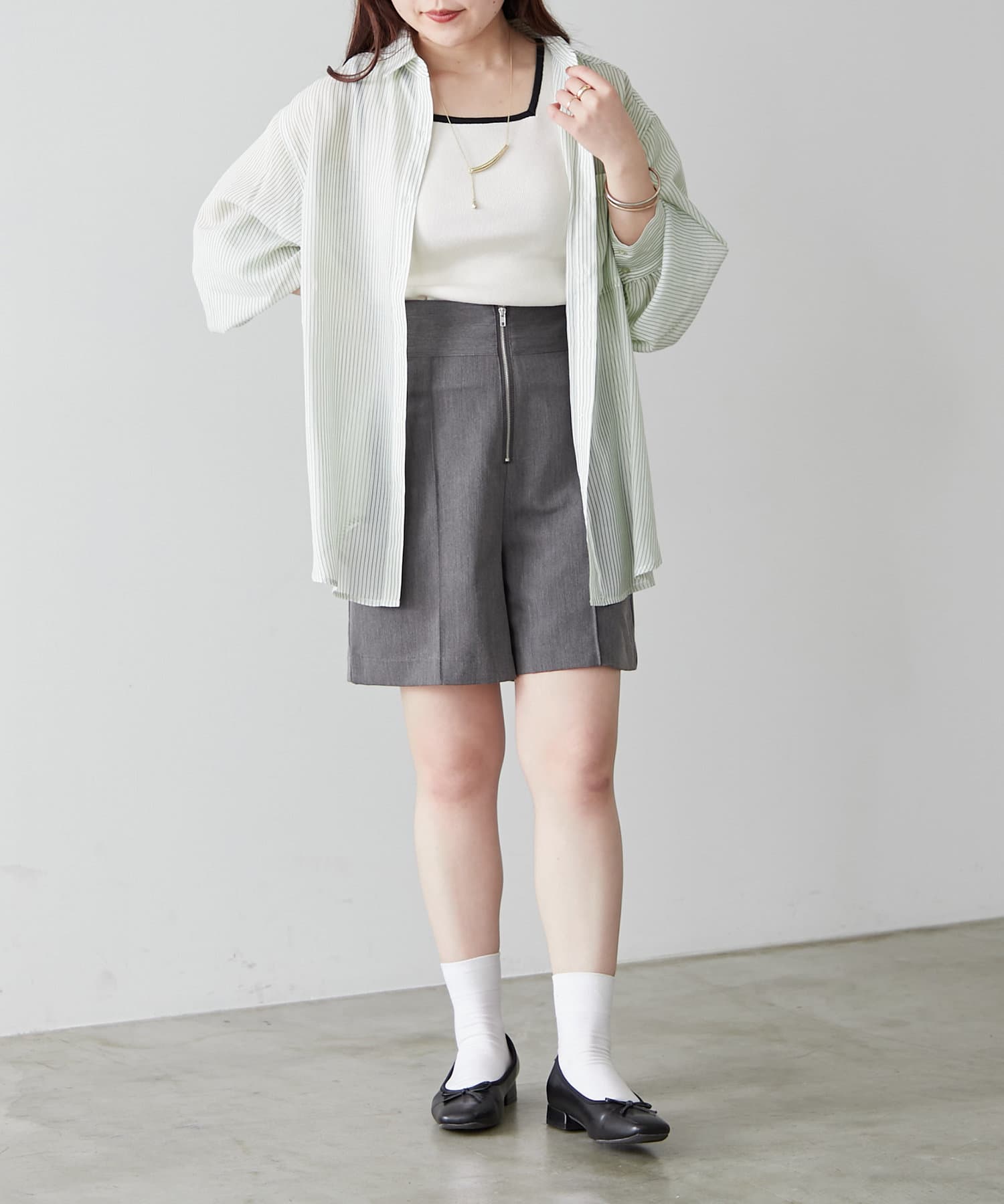 ・前を閉めてタックインするしっかりきれいめコーデにもぴったりです