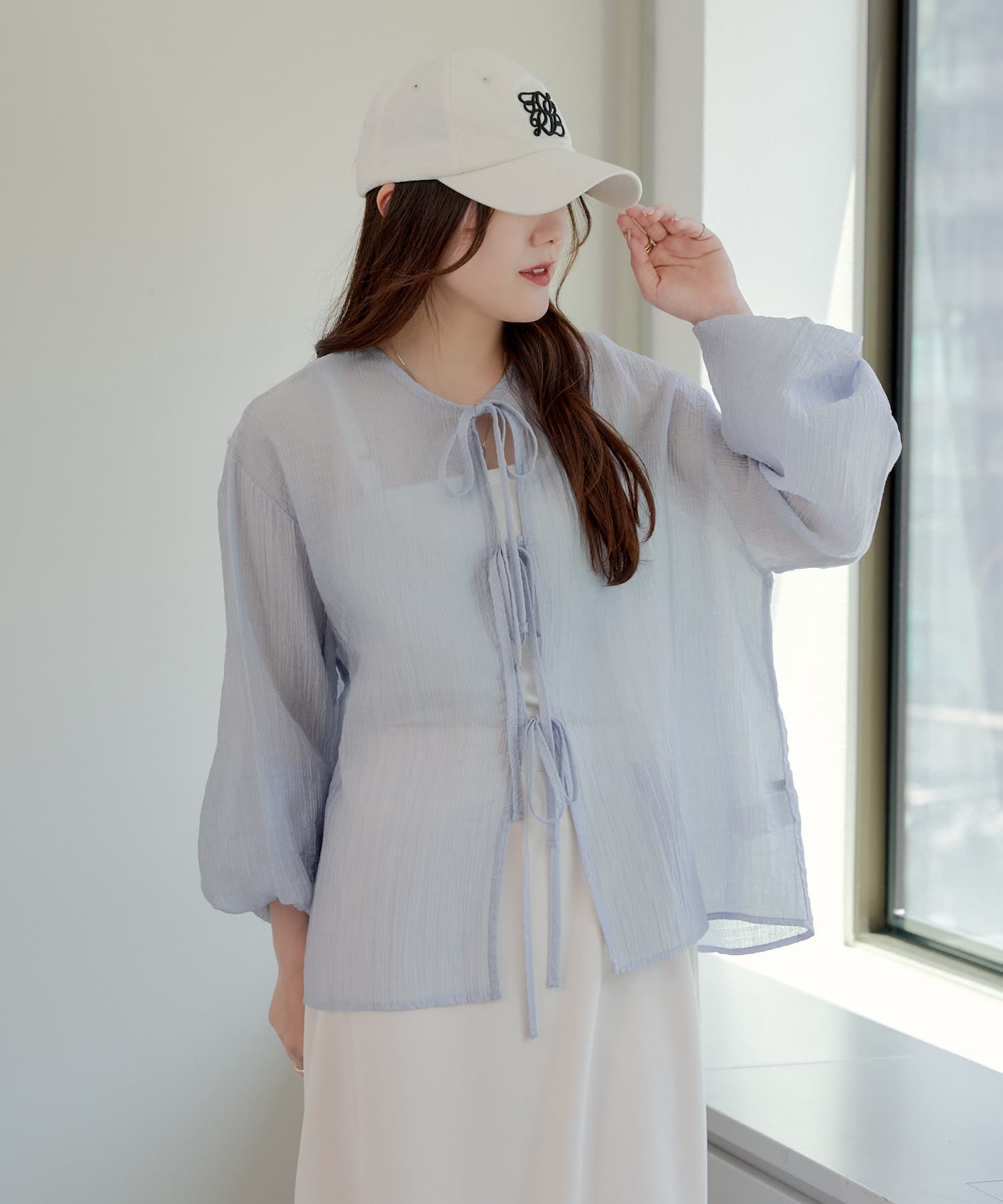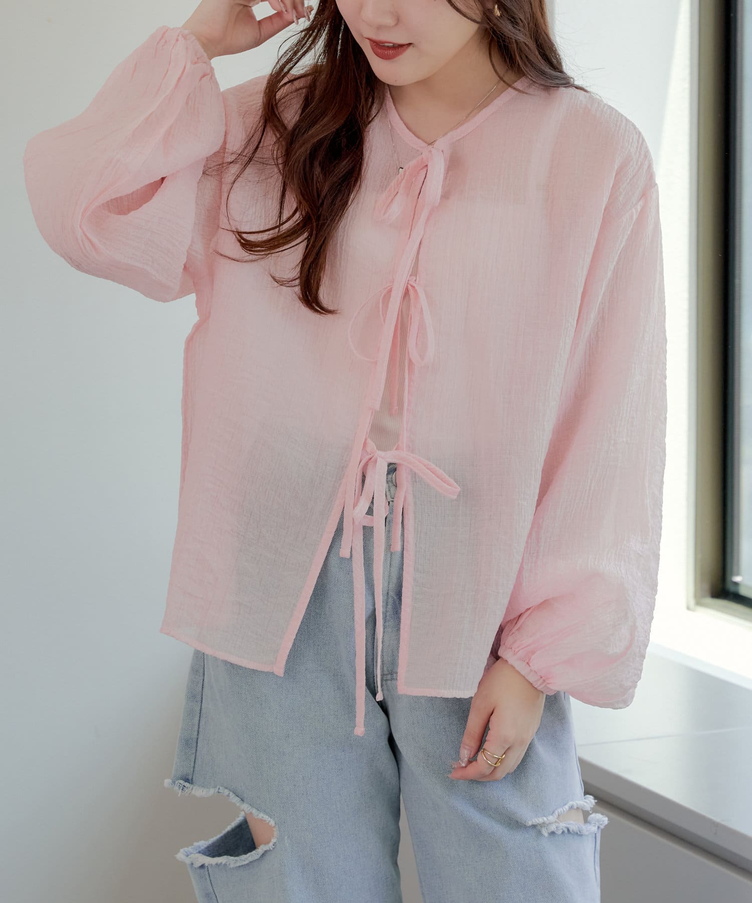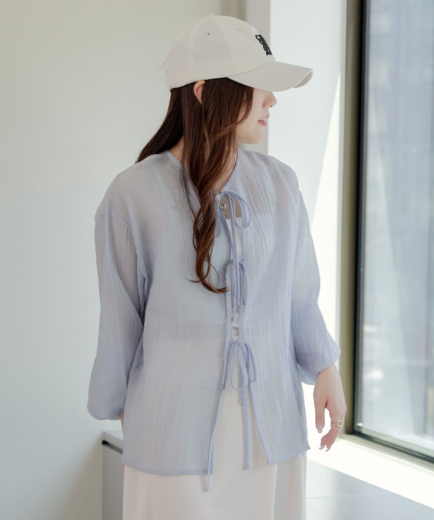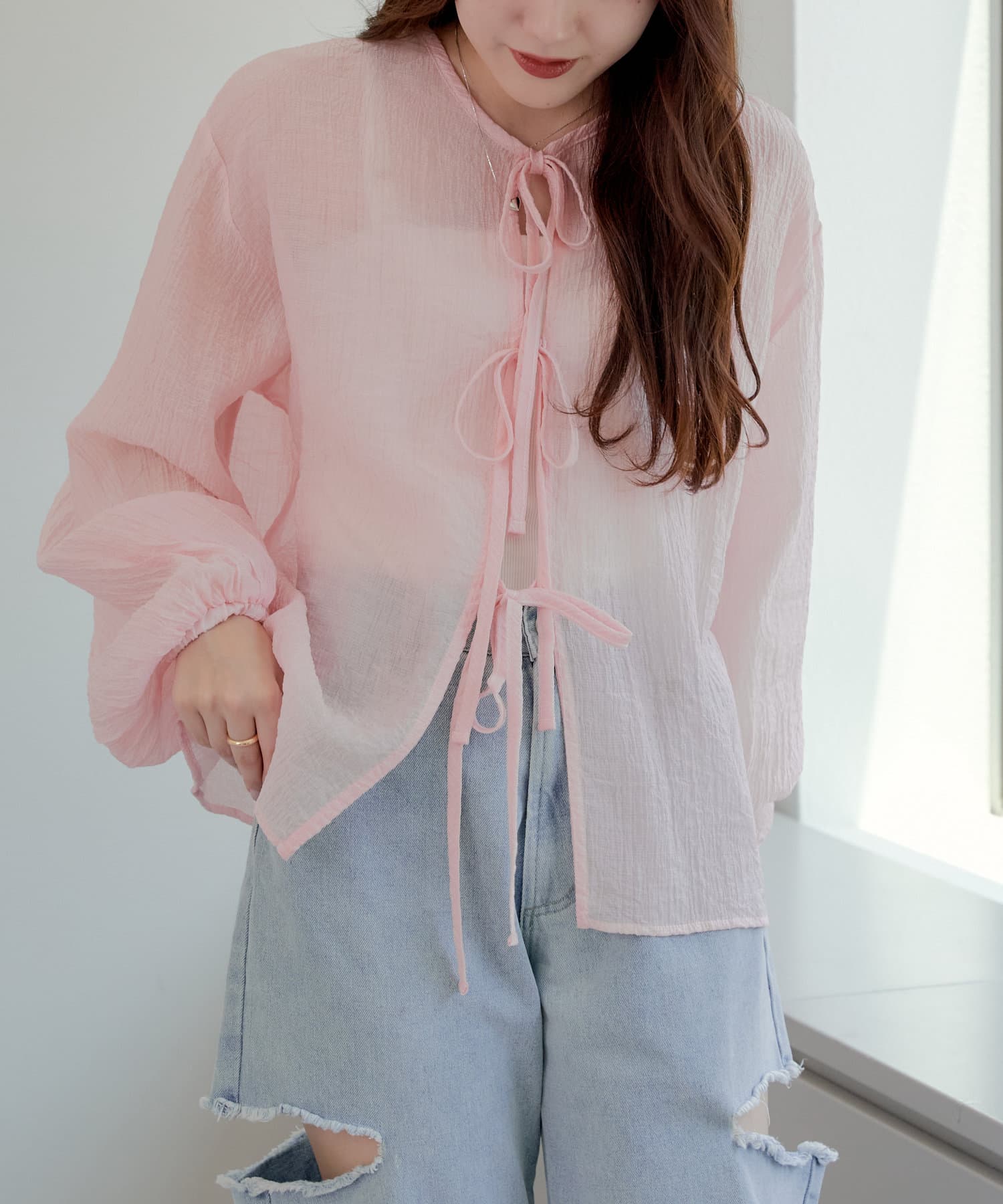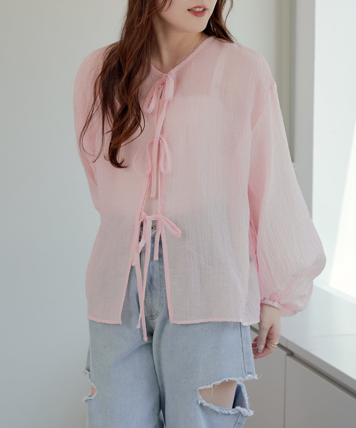 ・シアーの透け感と涼しげな素材でロングシーズン着ていただけるカーディガン