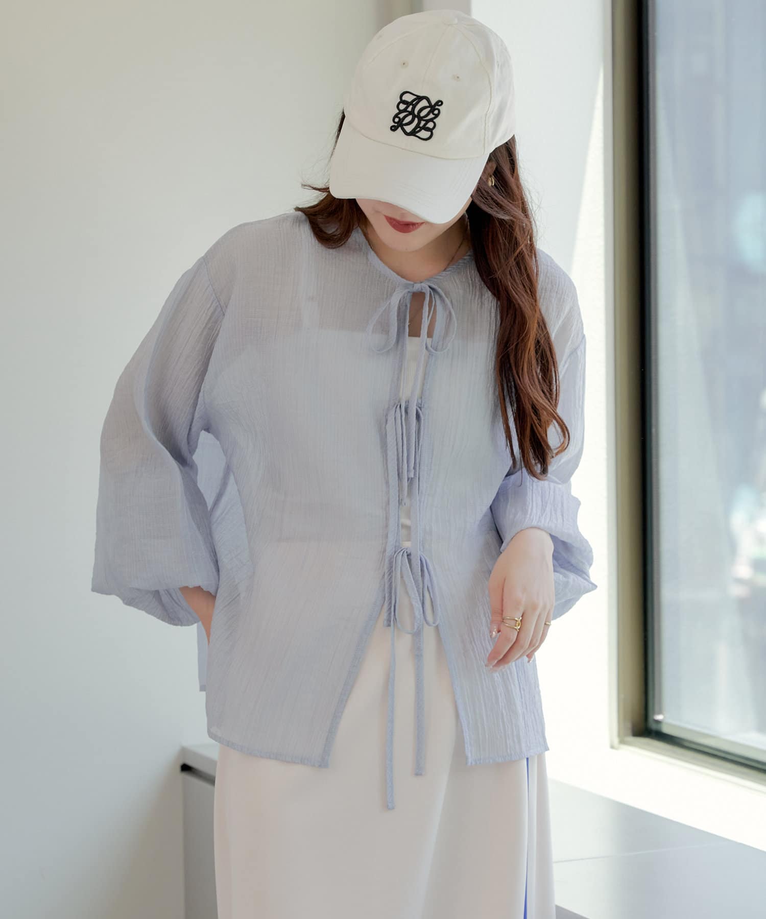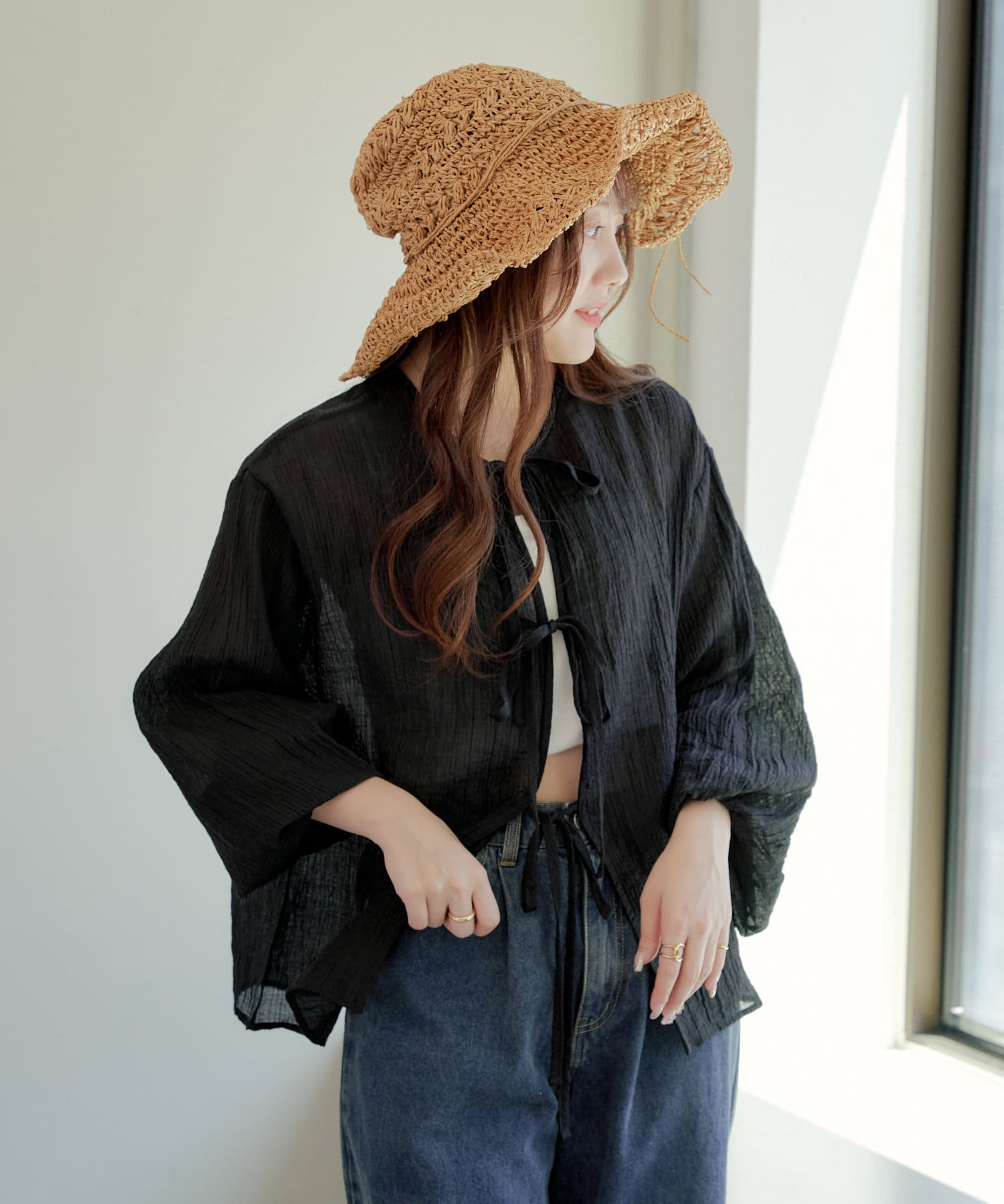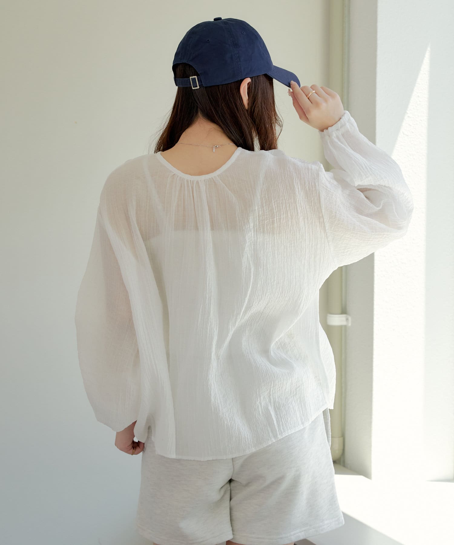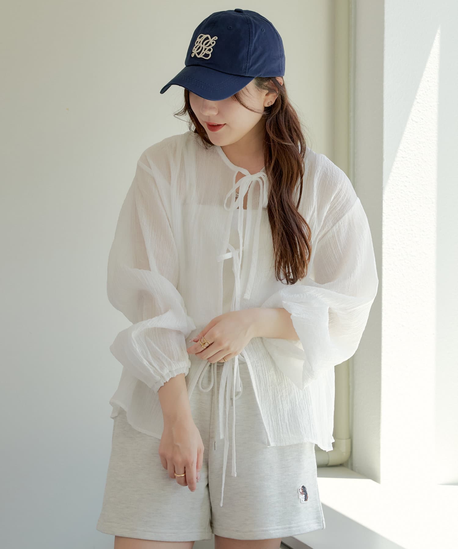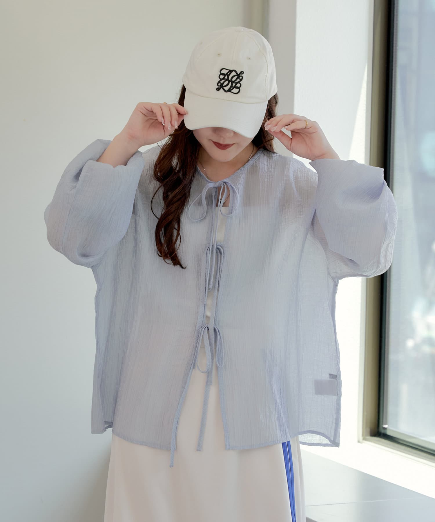 ・シアーの透け感と涼しげな素材でロングシーズン着ていただけるカーディガン