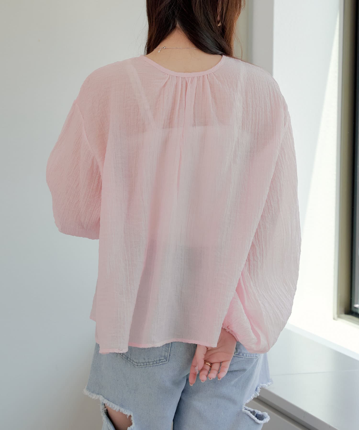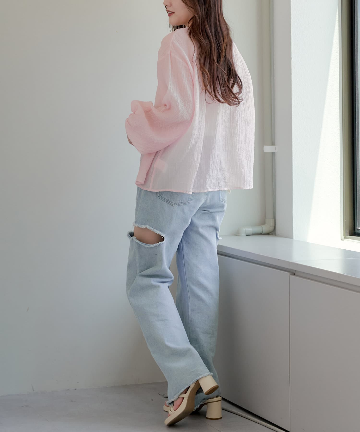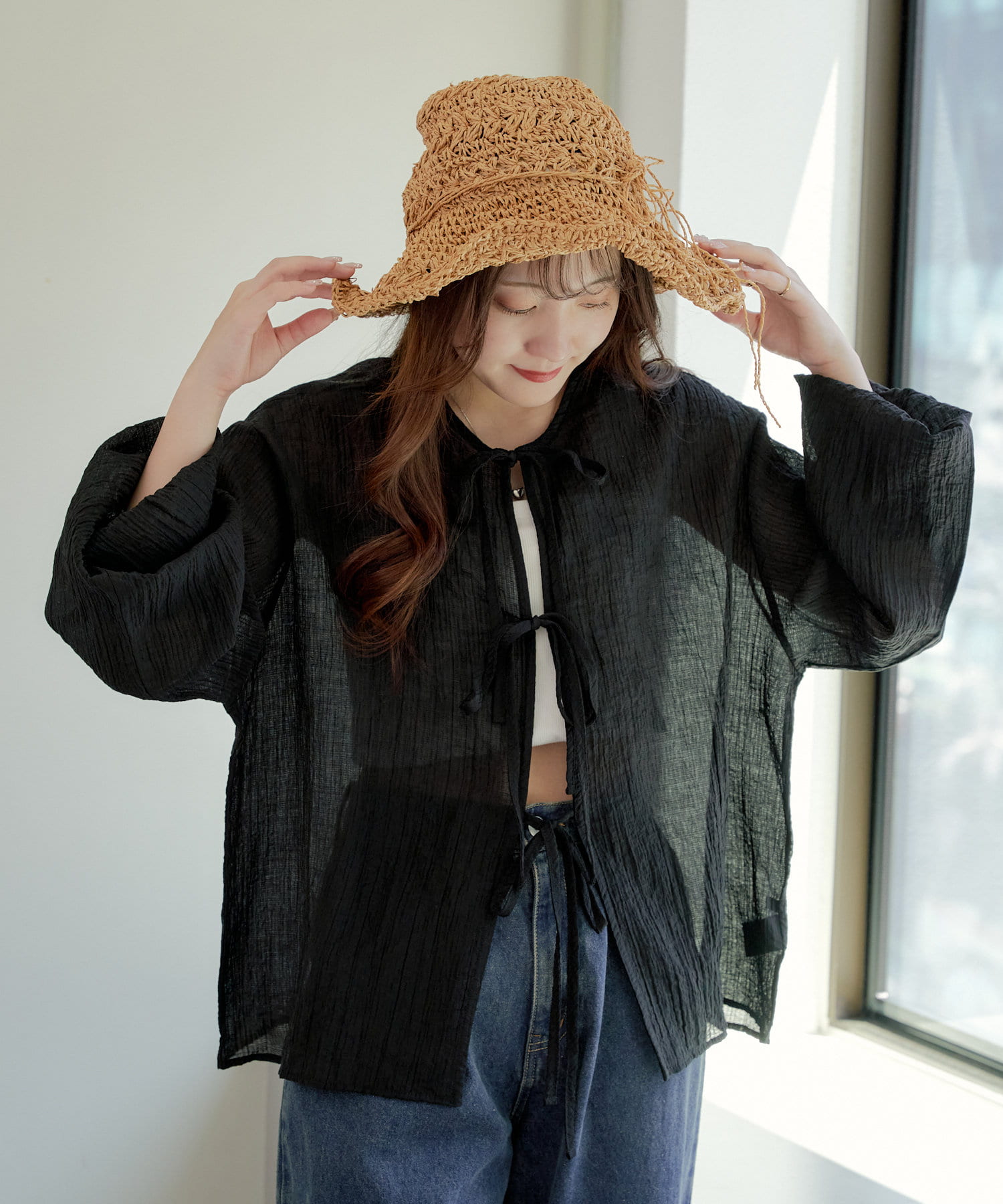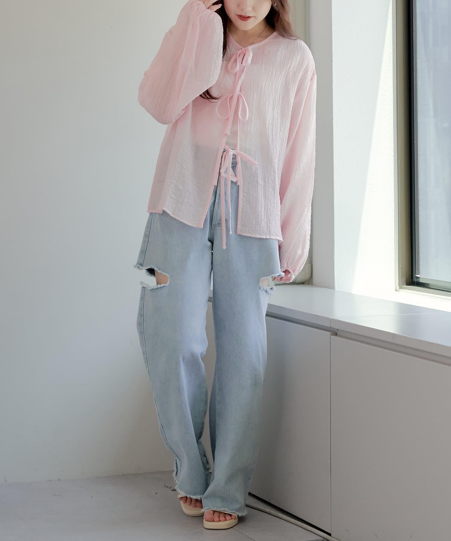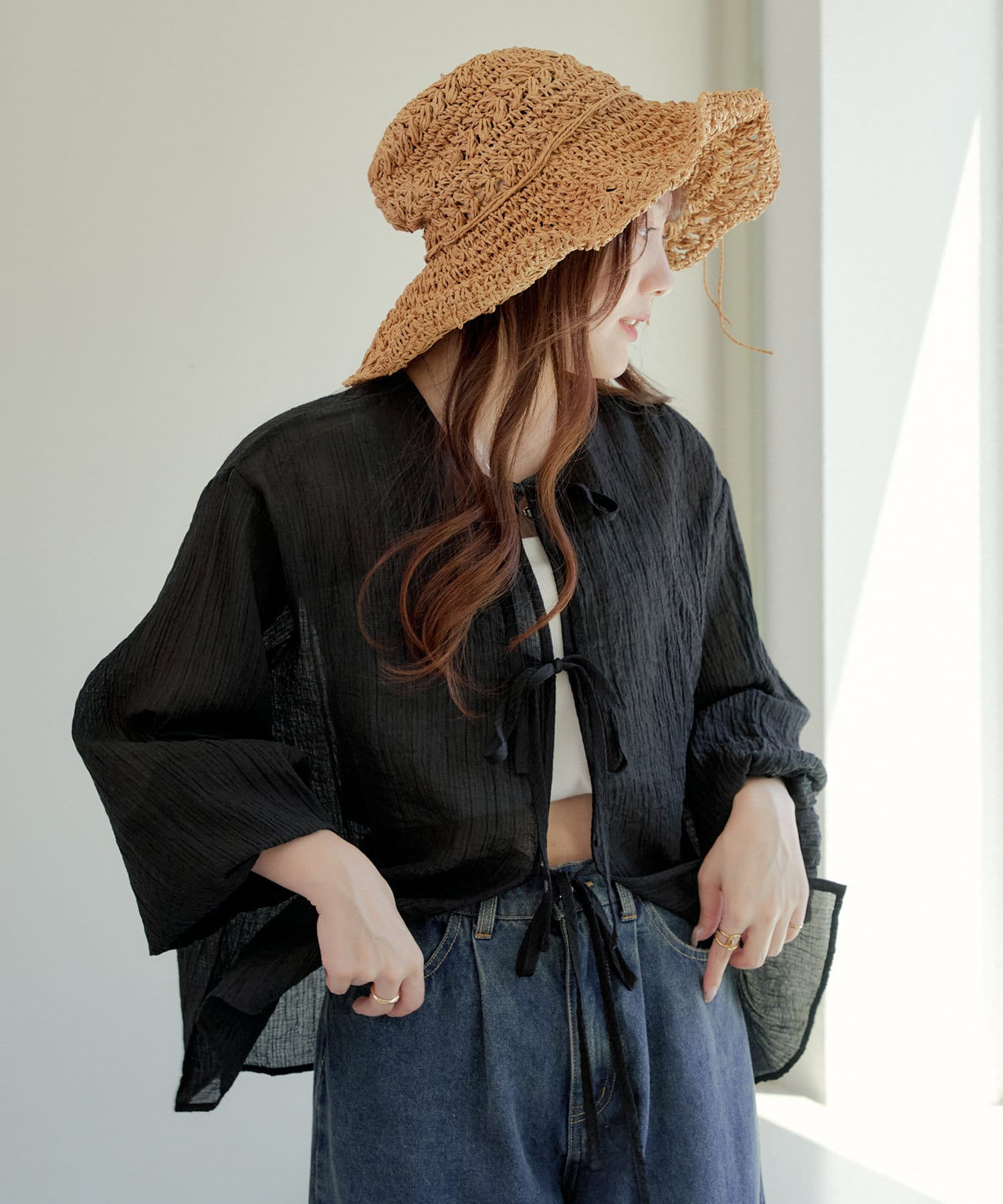 ・シアーの透け感と涼しげな素材でロングシーズン着ていただけるカーディガン