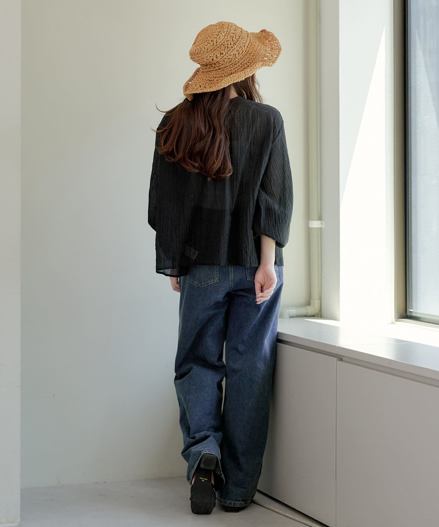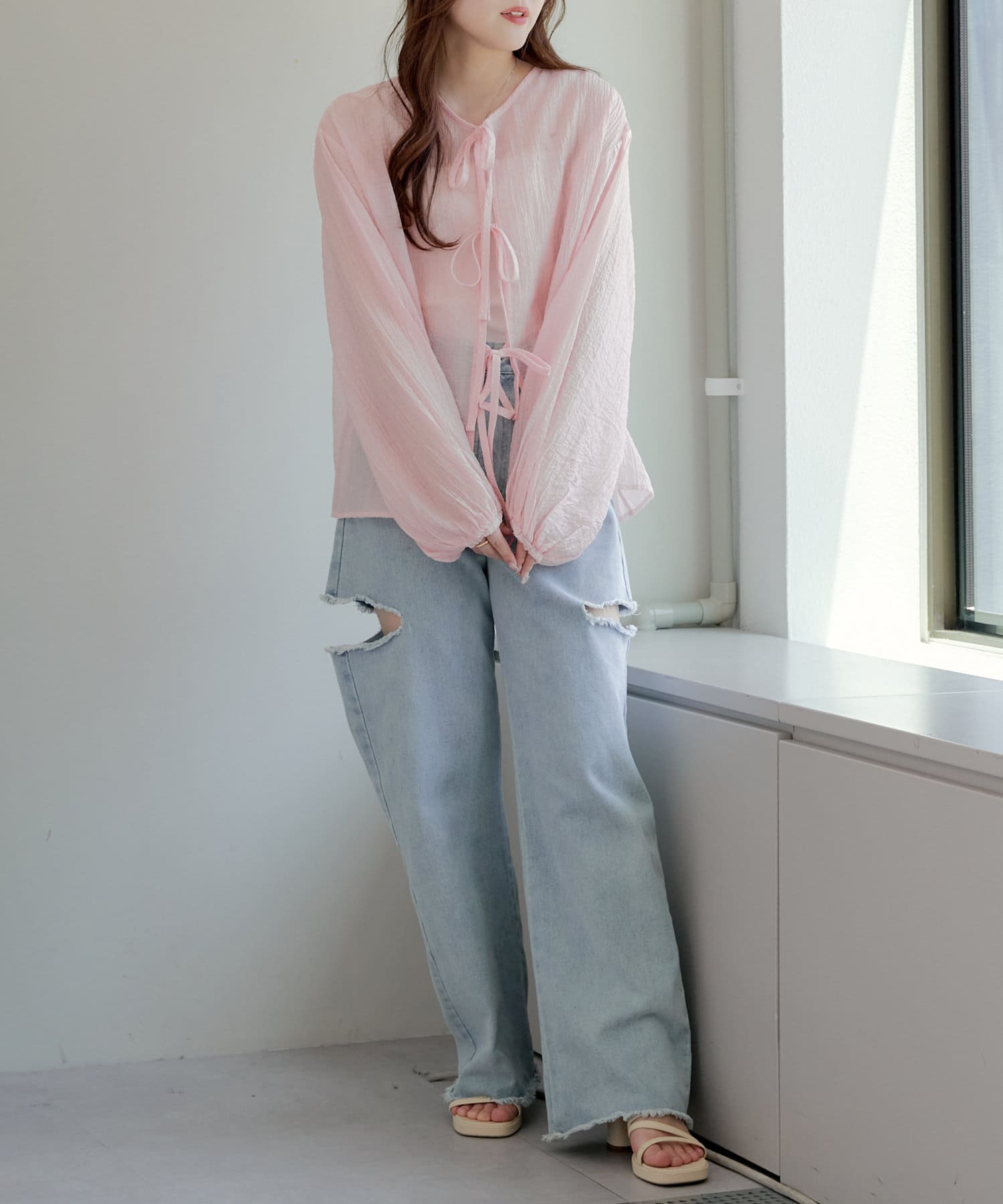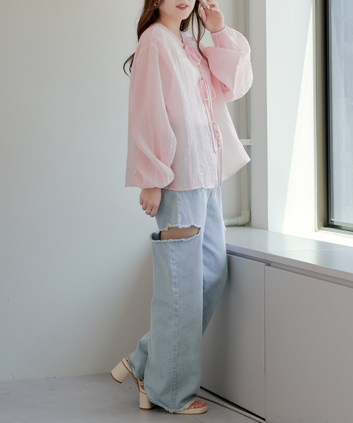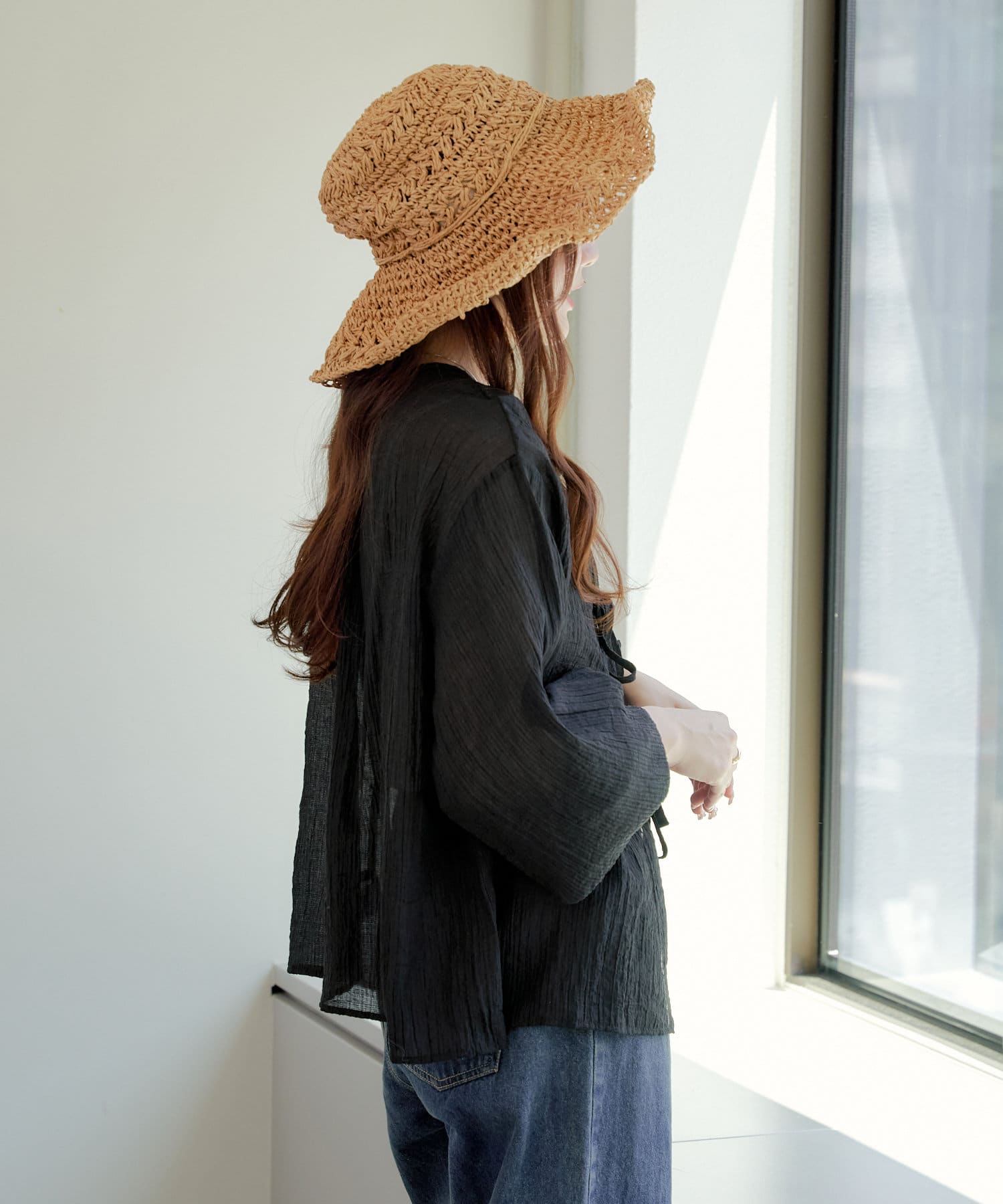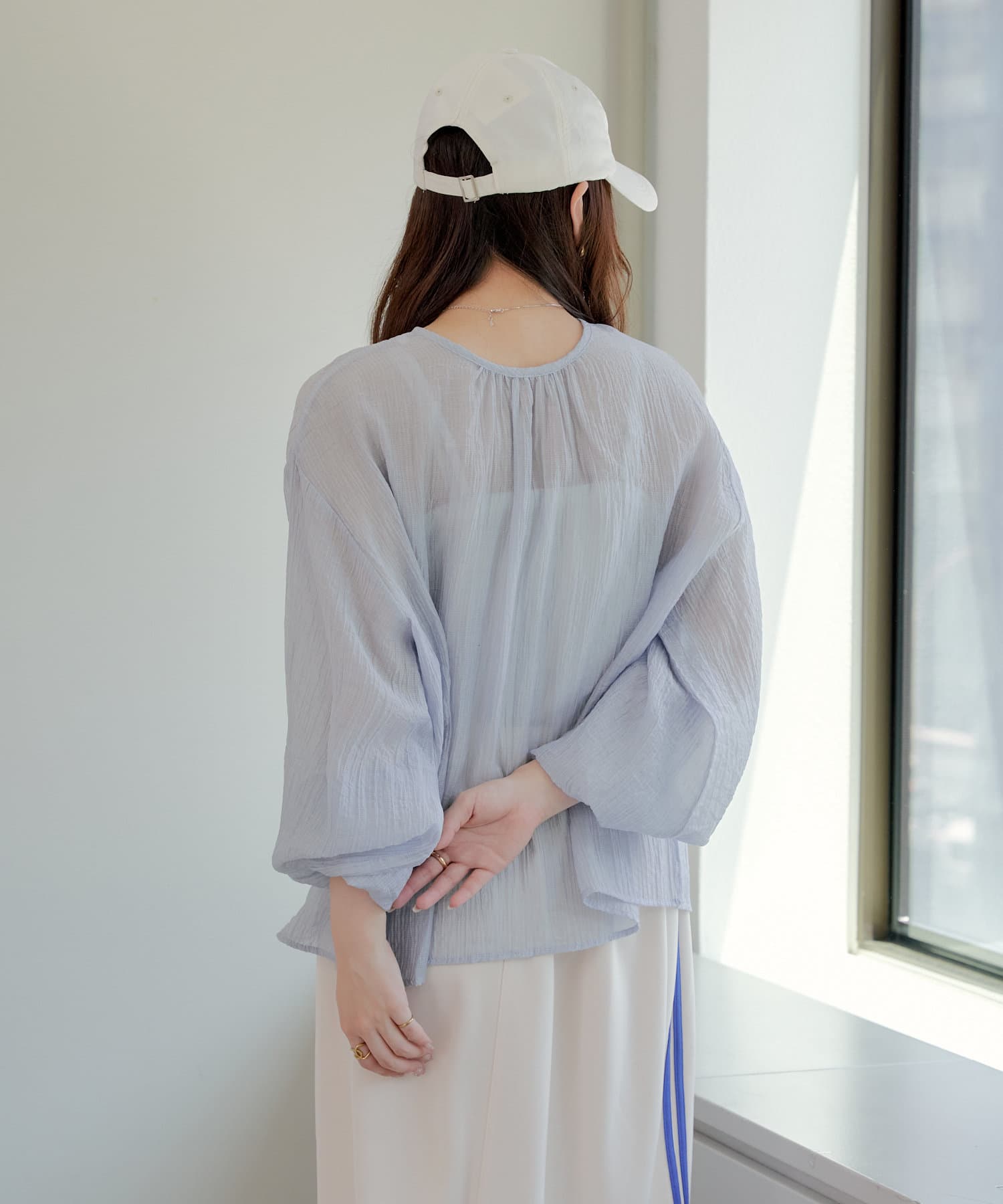 ・シアーの透け感と涼しげな素材でロングシーズン着ていただけるカーディガン