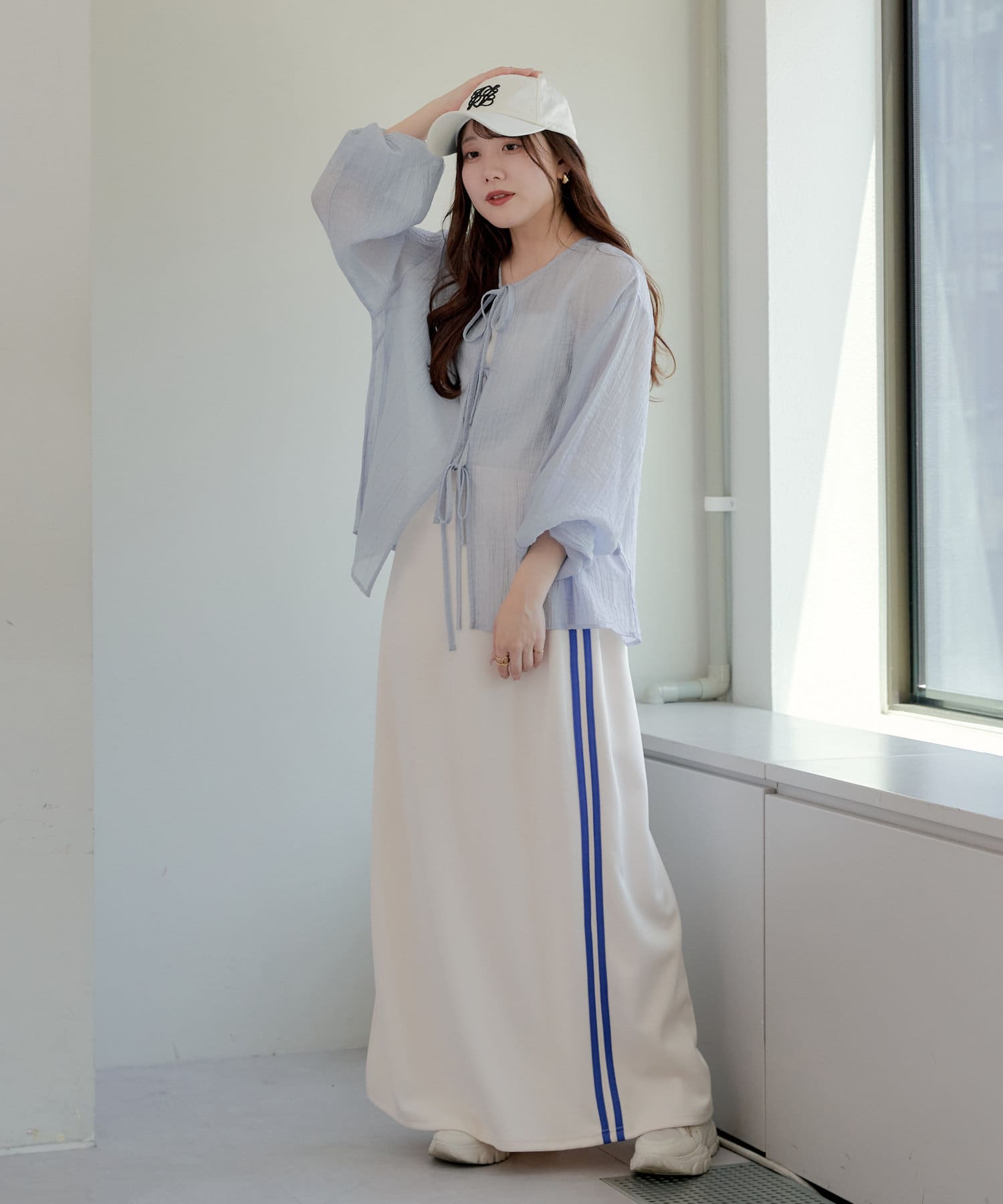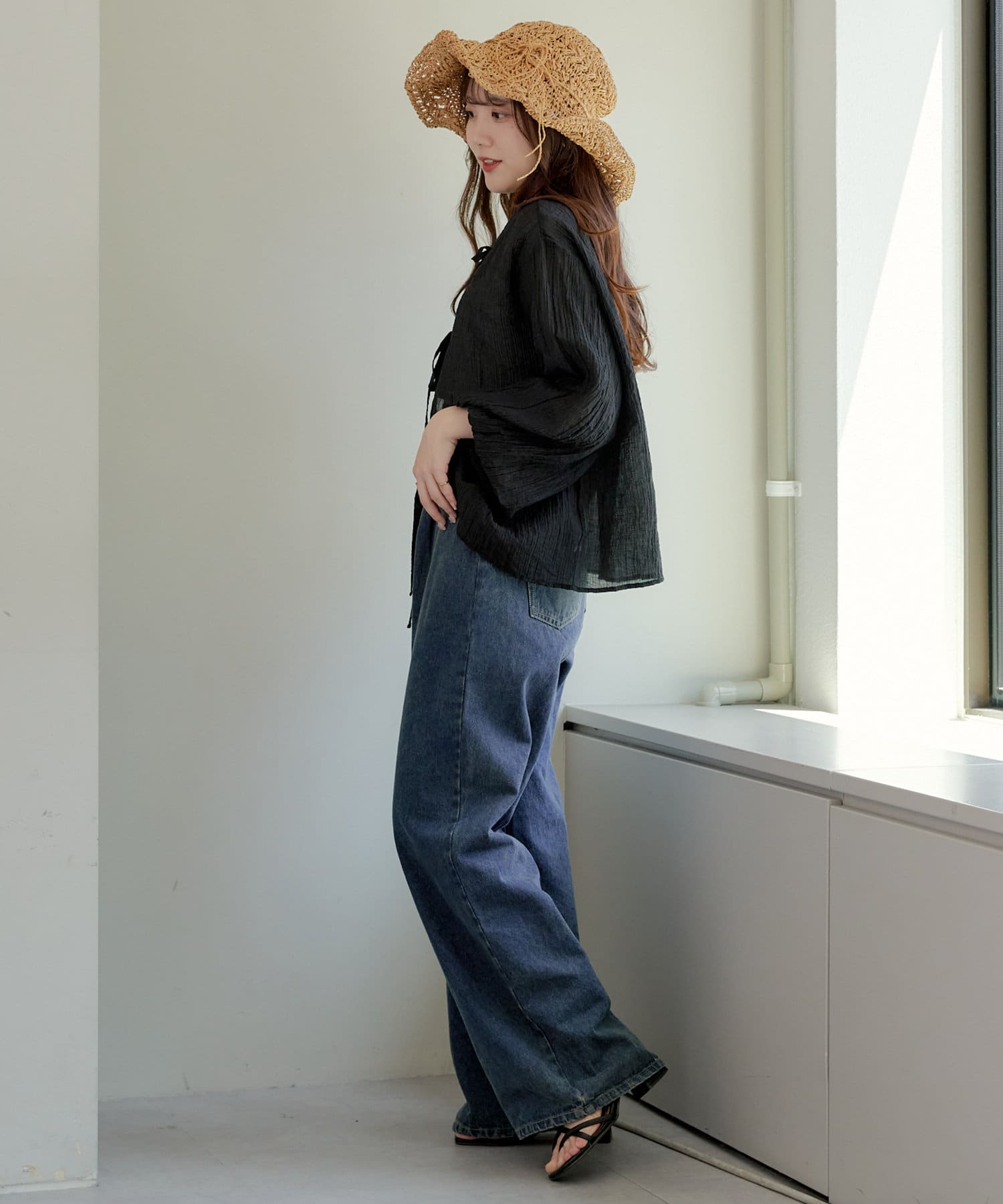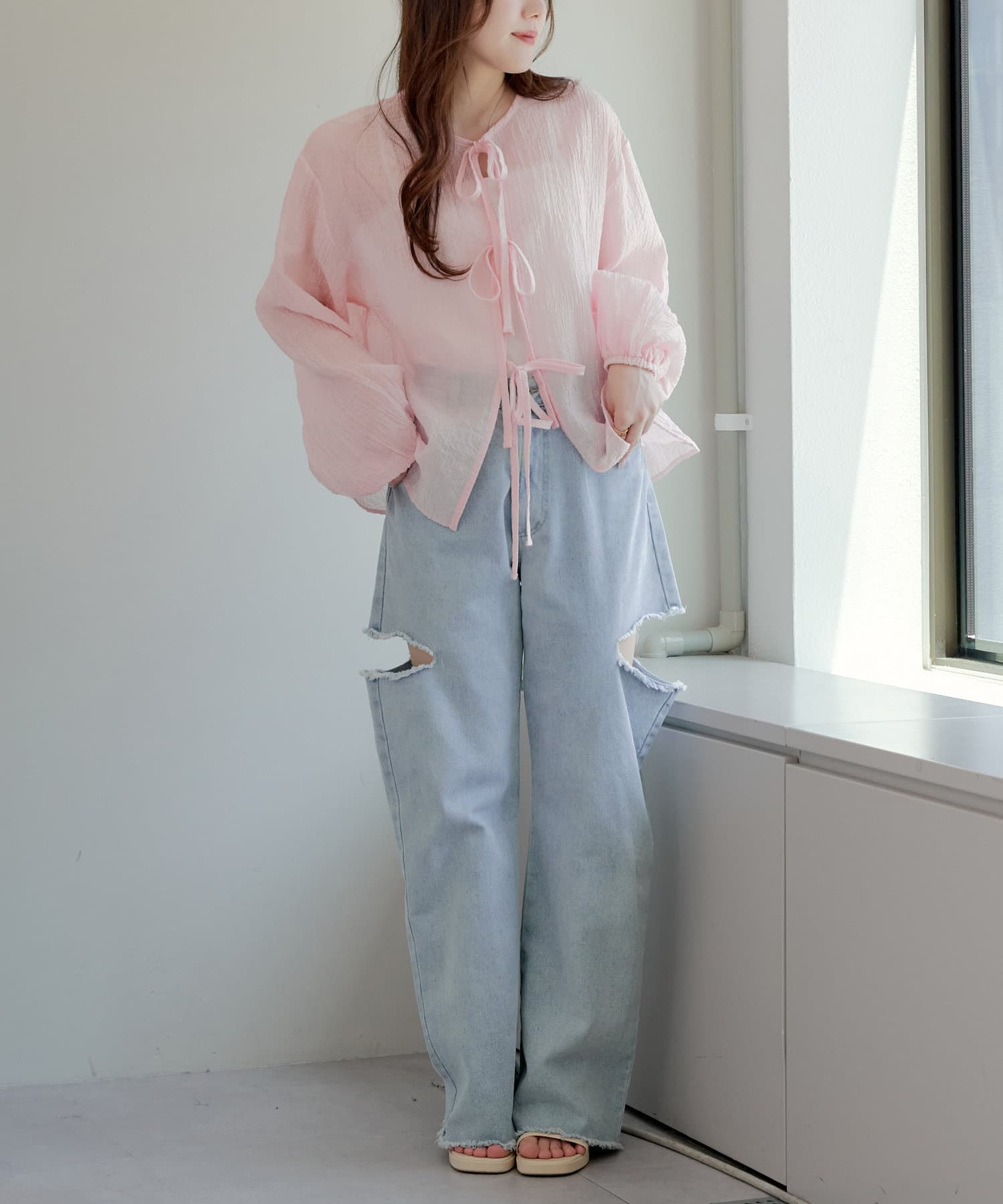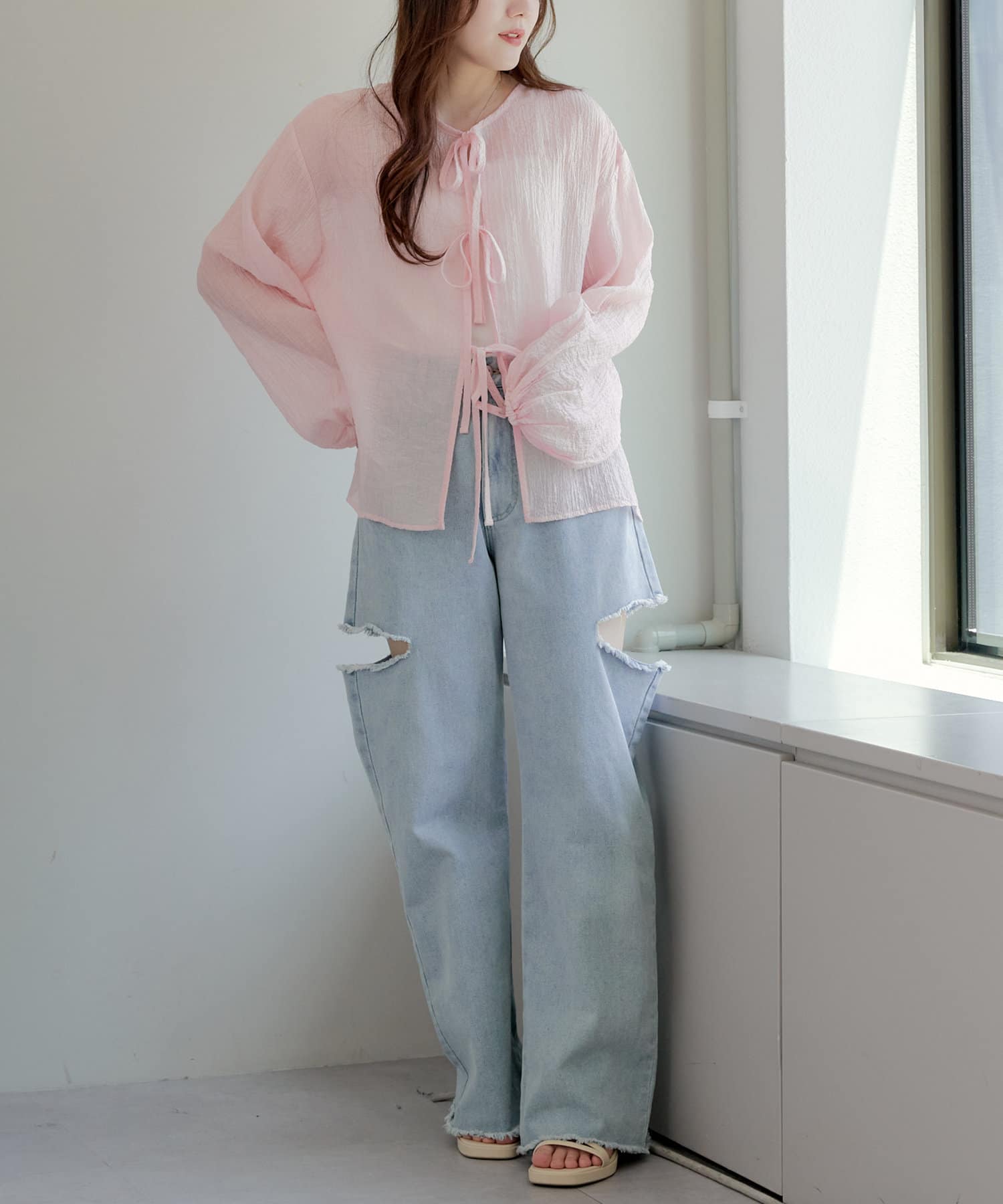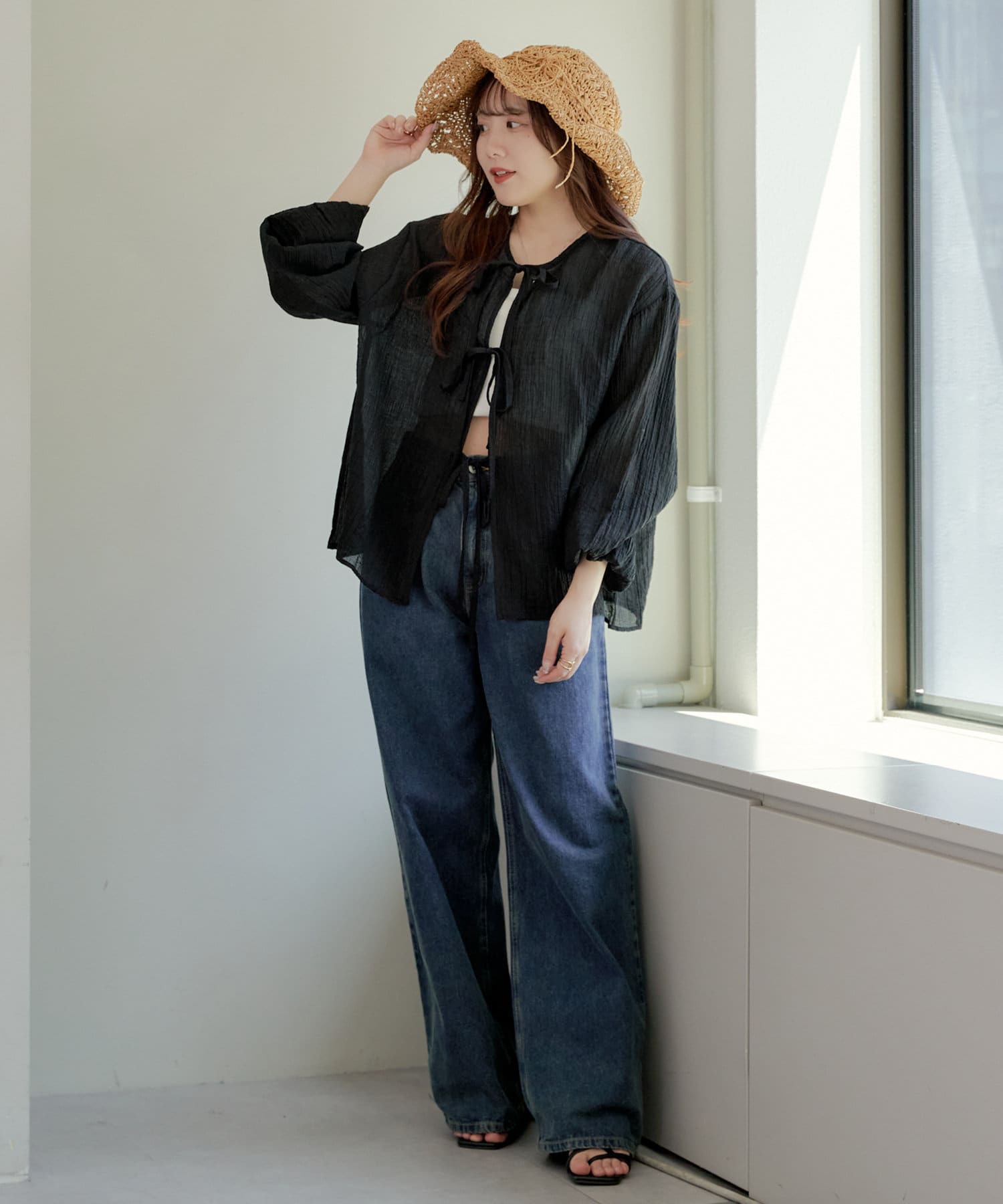 ・シアーの透け感と涼しげな素材でロングシーズン着ていただけるカーディガン