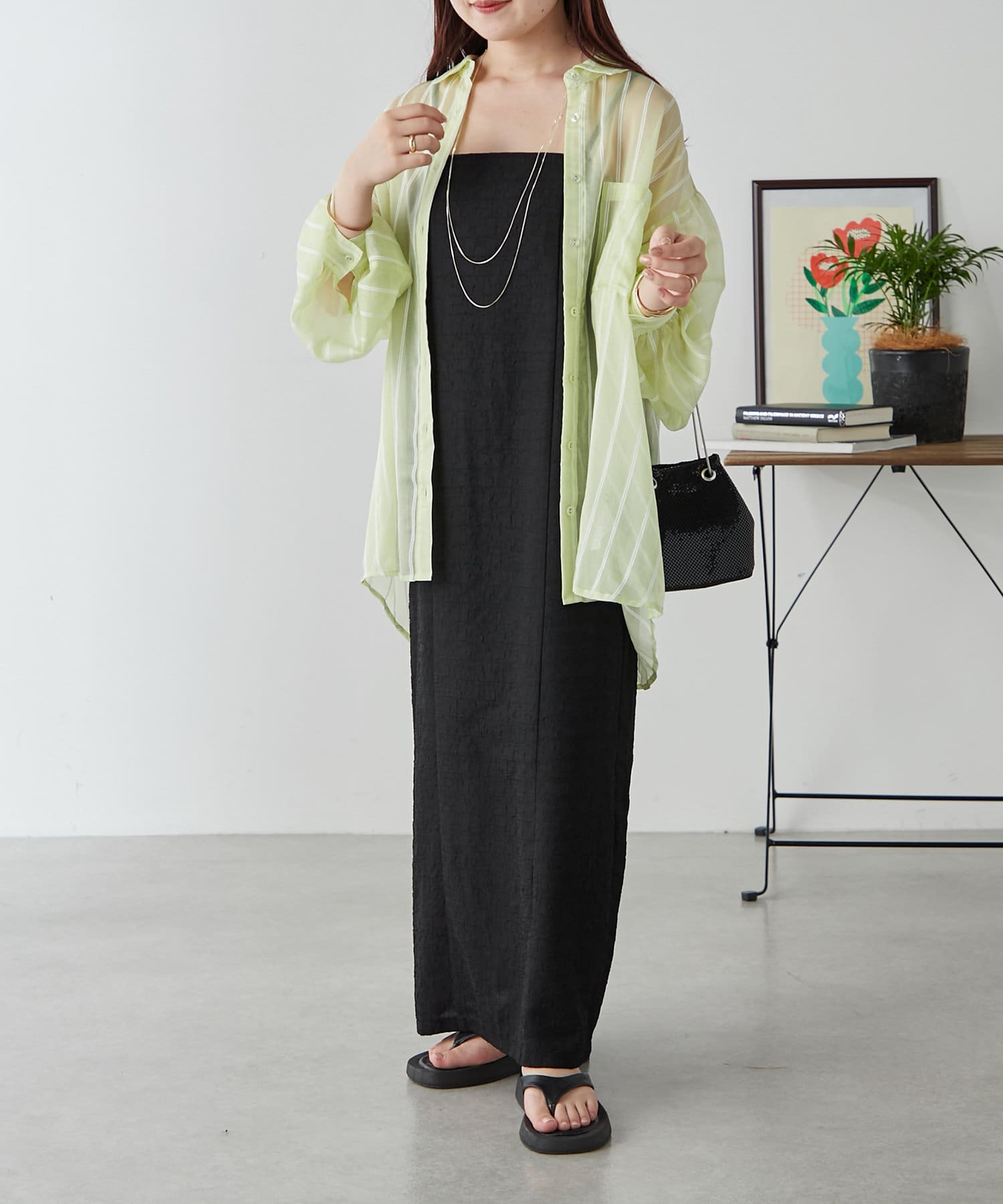 ・ブラトップやロゴTシャツの上に羽織ってカジュアルなスタイリングはもちろん、キャミワンピに合わせたきれいめコーデもおすすめです