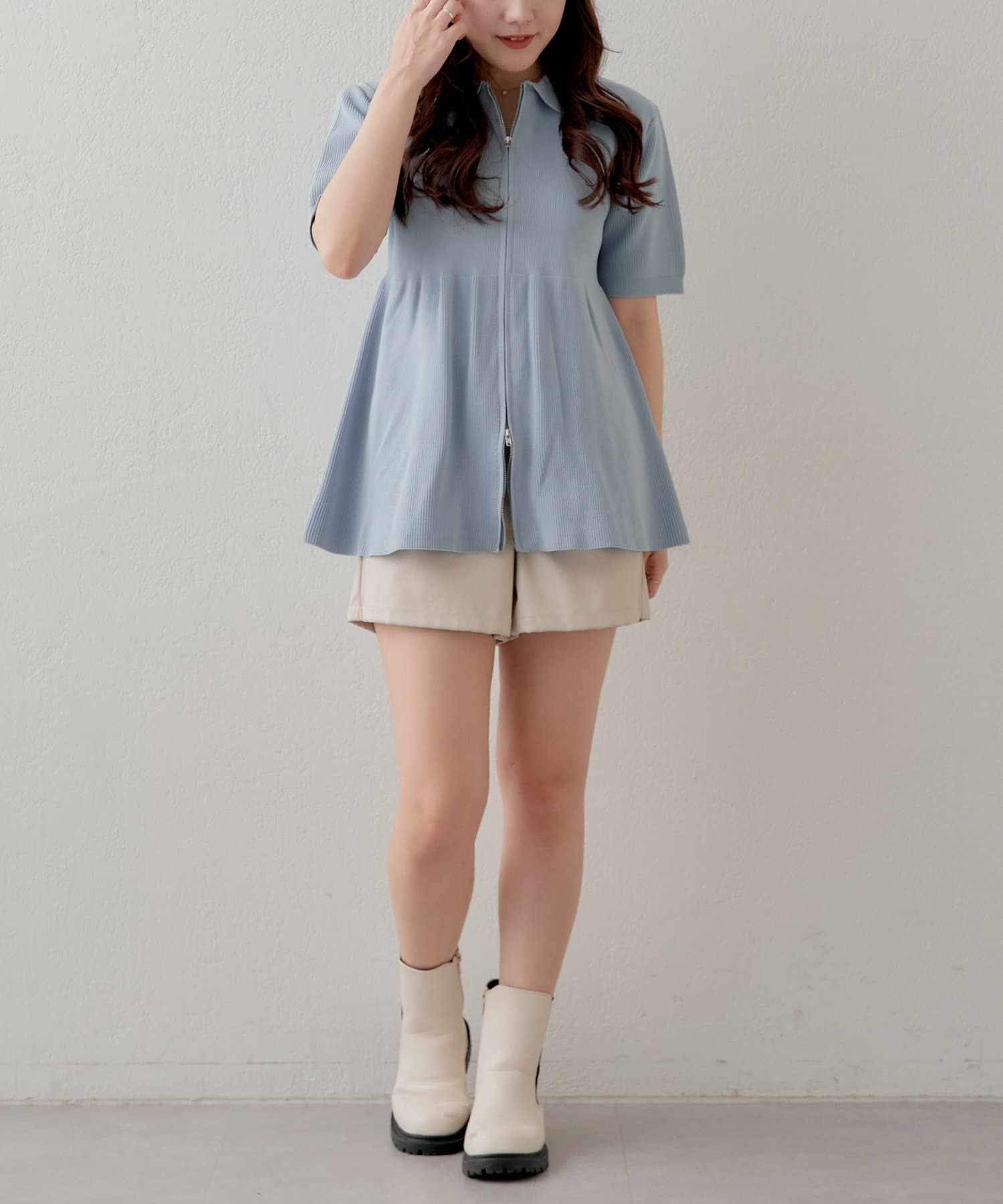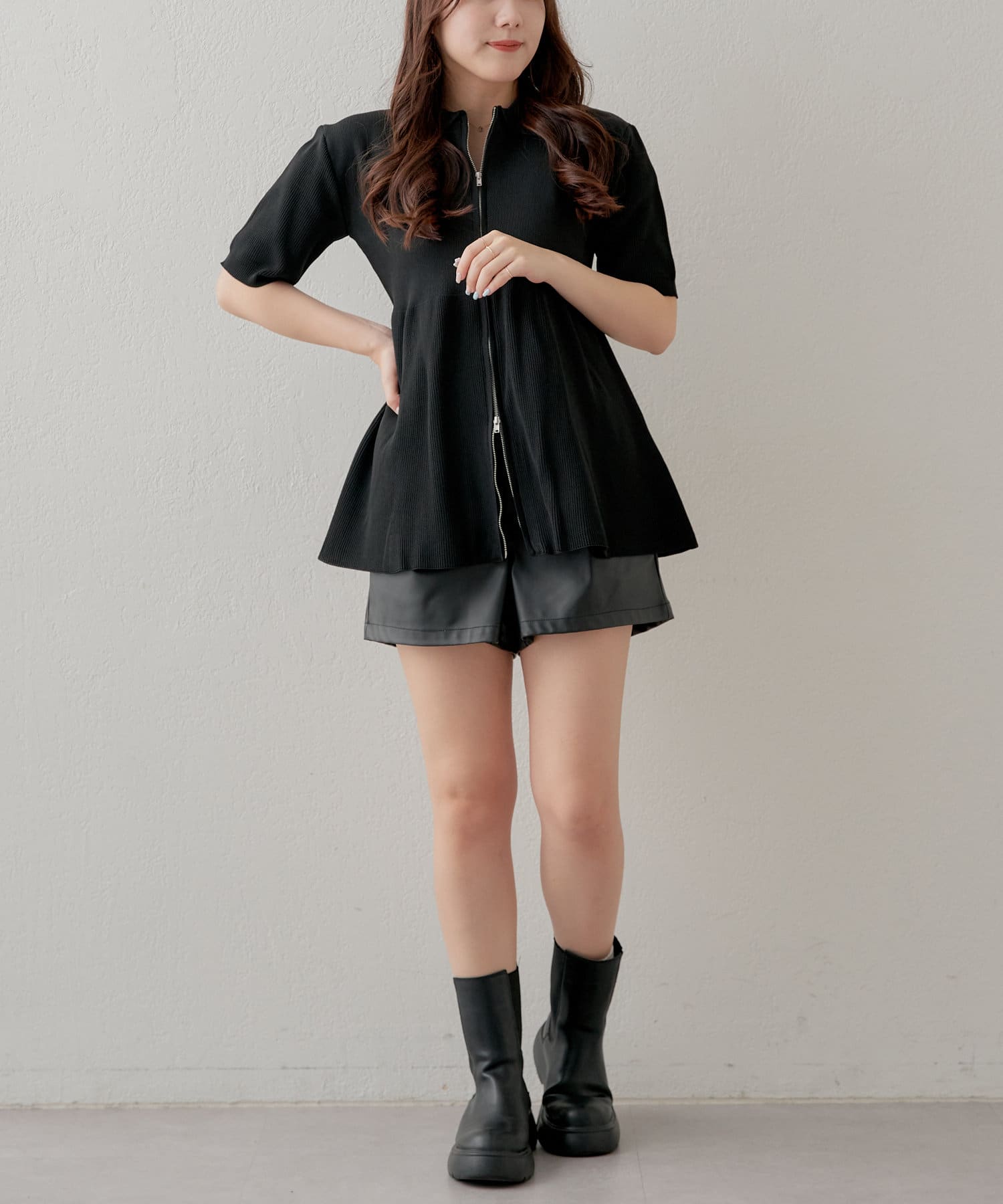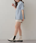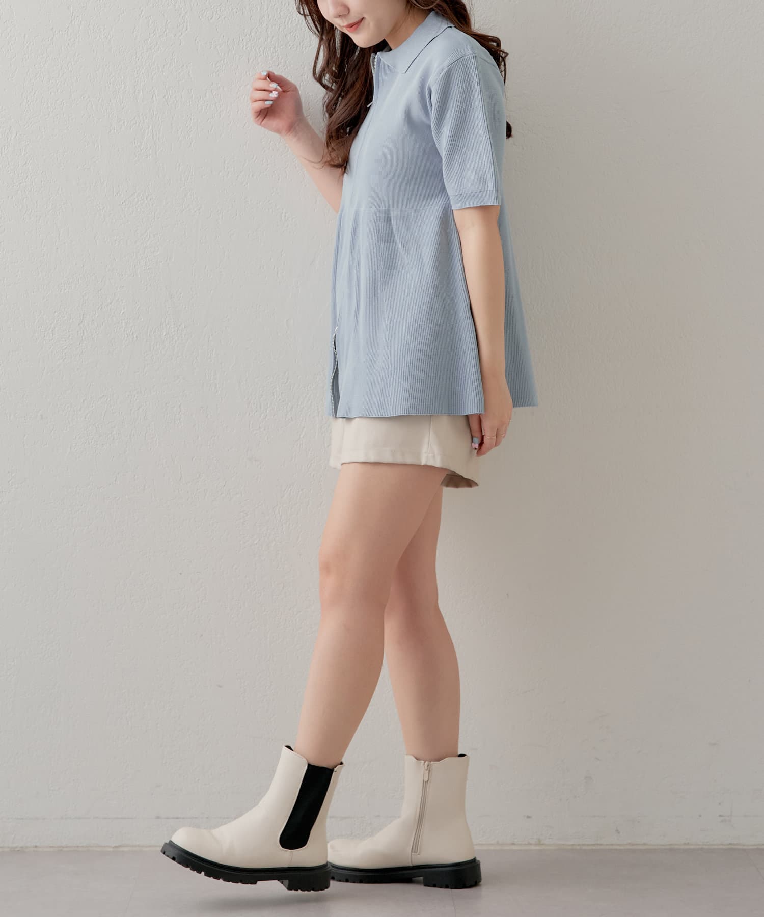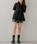 ・ミニ丈ボトムとブーツ合わせは甘めに仕上がります。