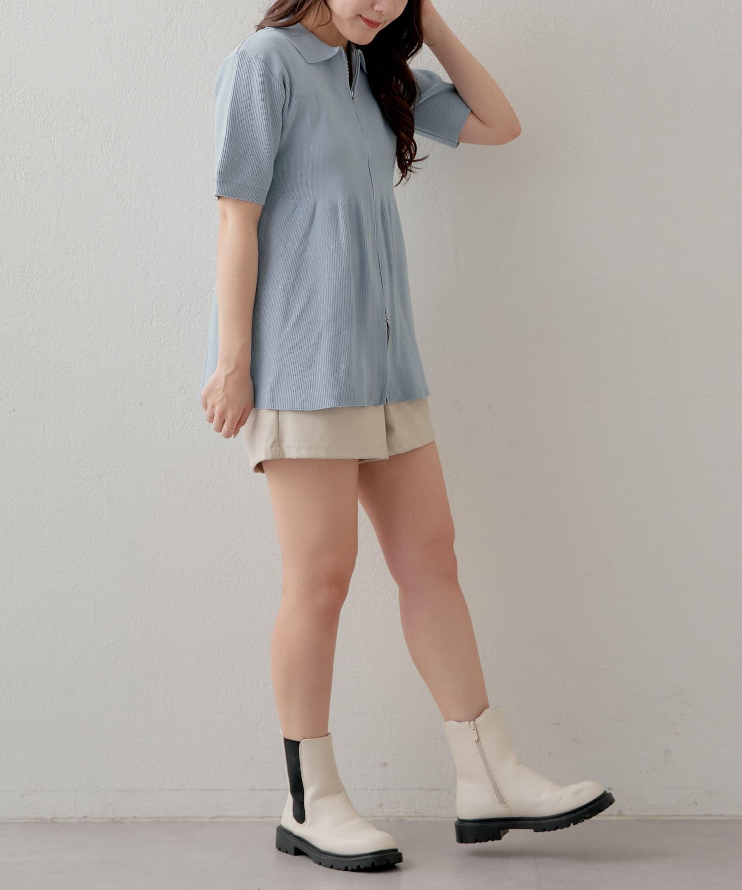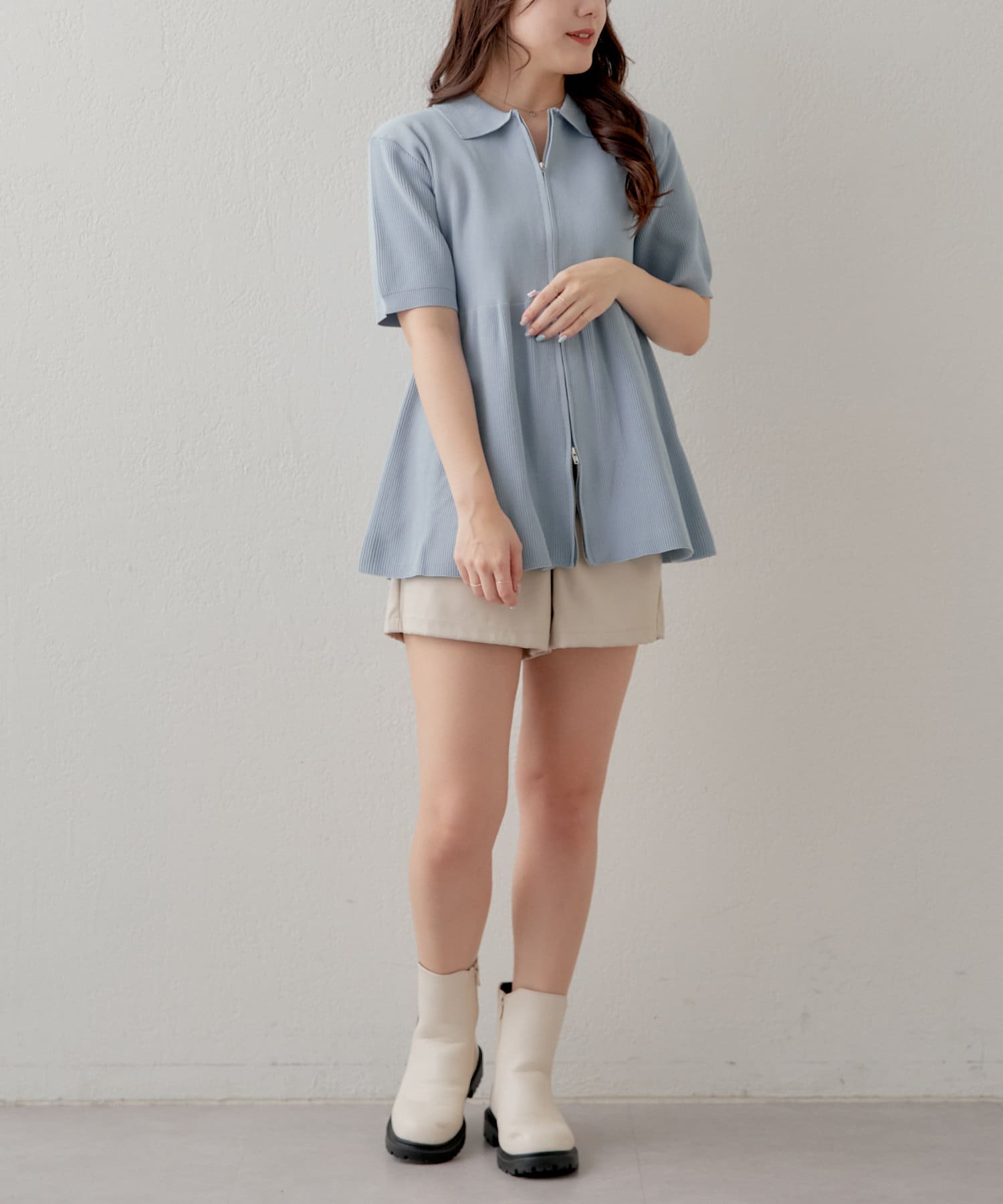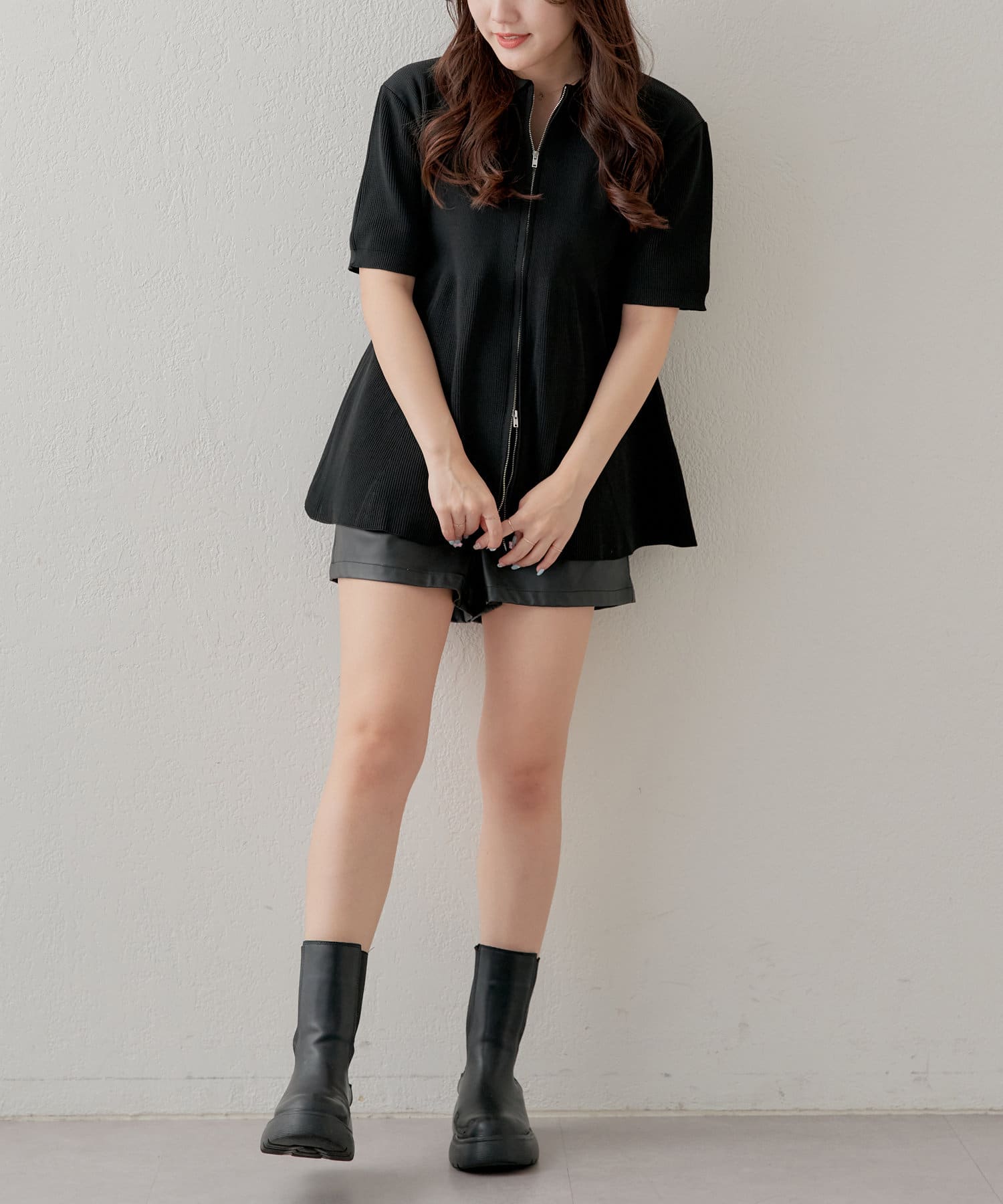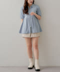 ・ミニ丈ボトムとブーツ合わせは甘めに仕上がります。