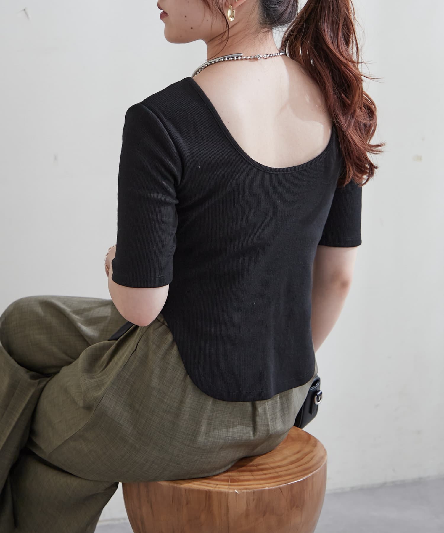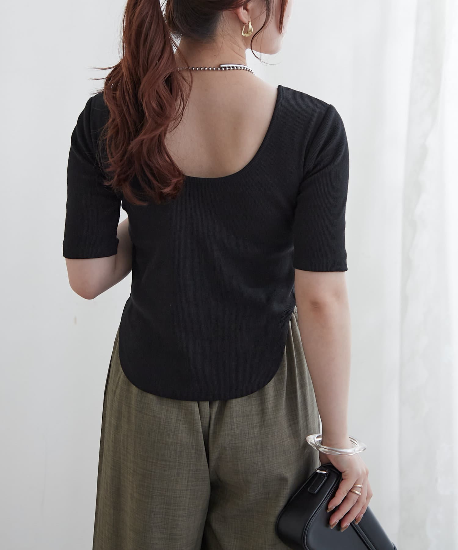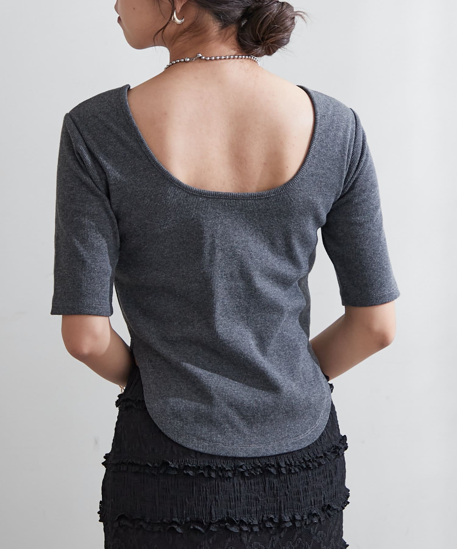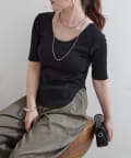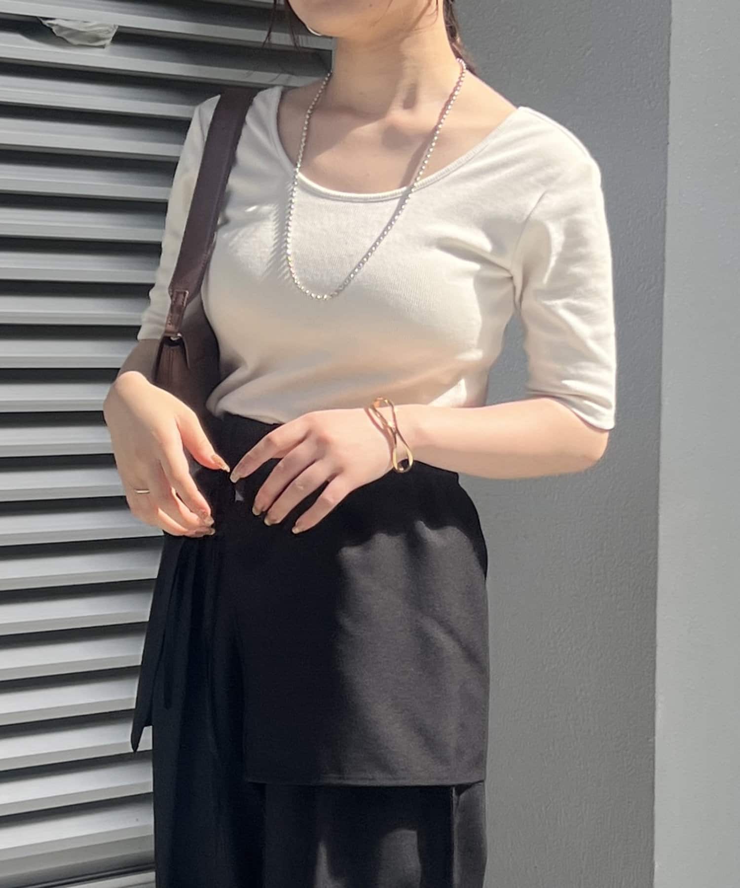 ・上品なデコルテ魅せが叶う深めのバレエネックデザイン。
