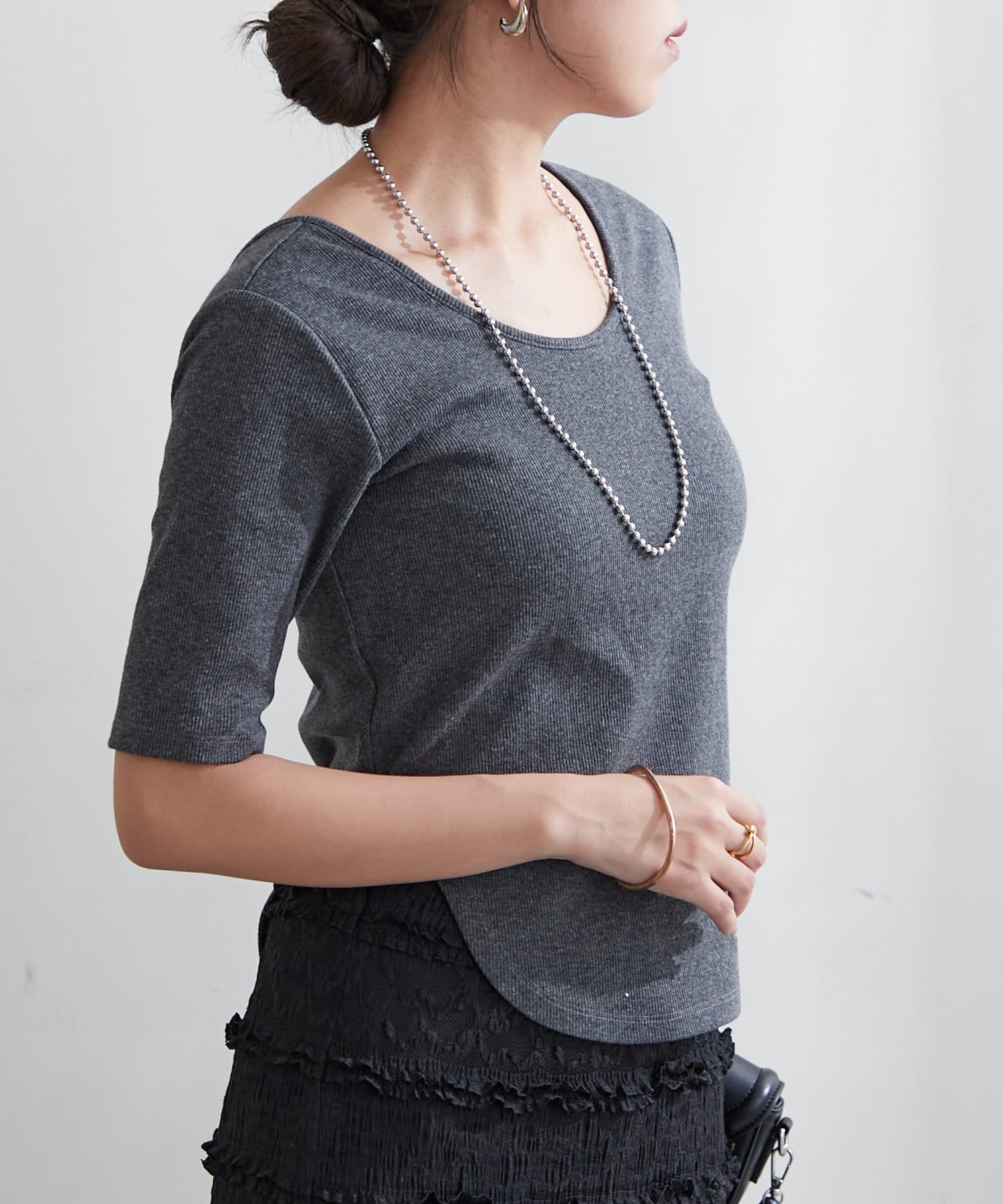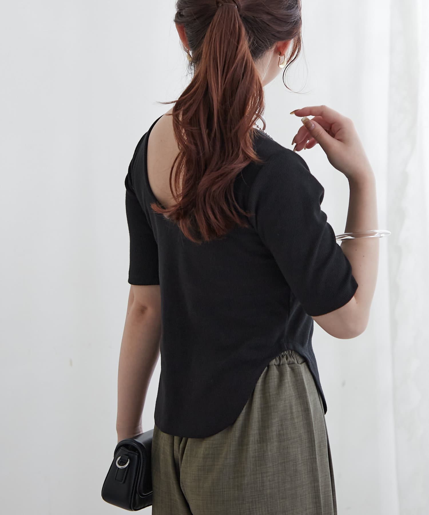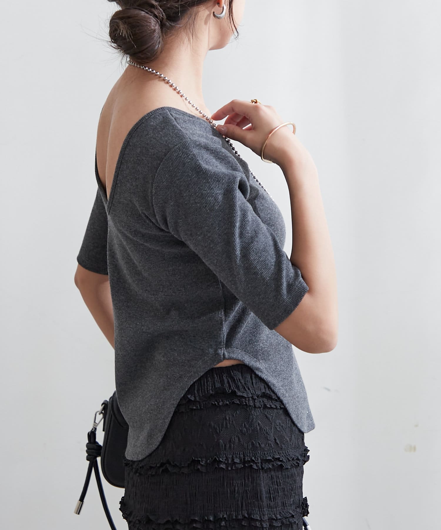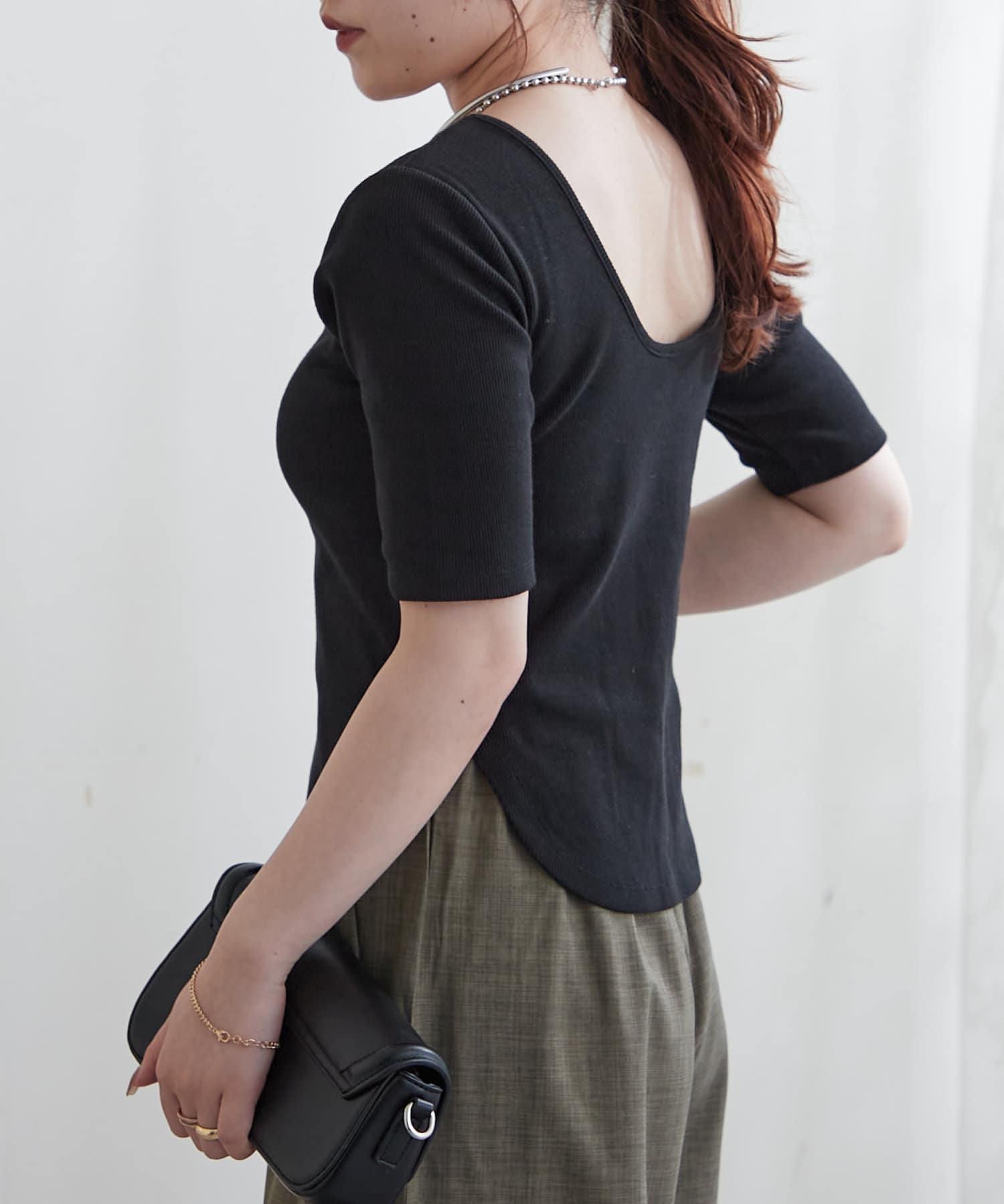 ・上品なデコルテ魅せが叶う深めのバレエネックデザイン。