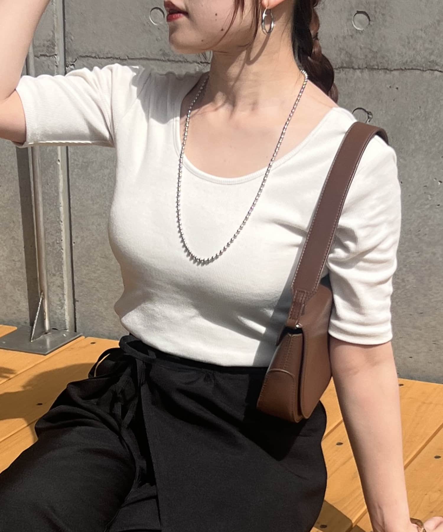 【パルクロ限定 / 華奢見えシルエット】カップ付半袖プルオーバー