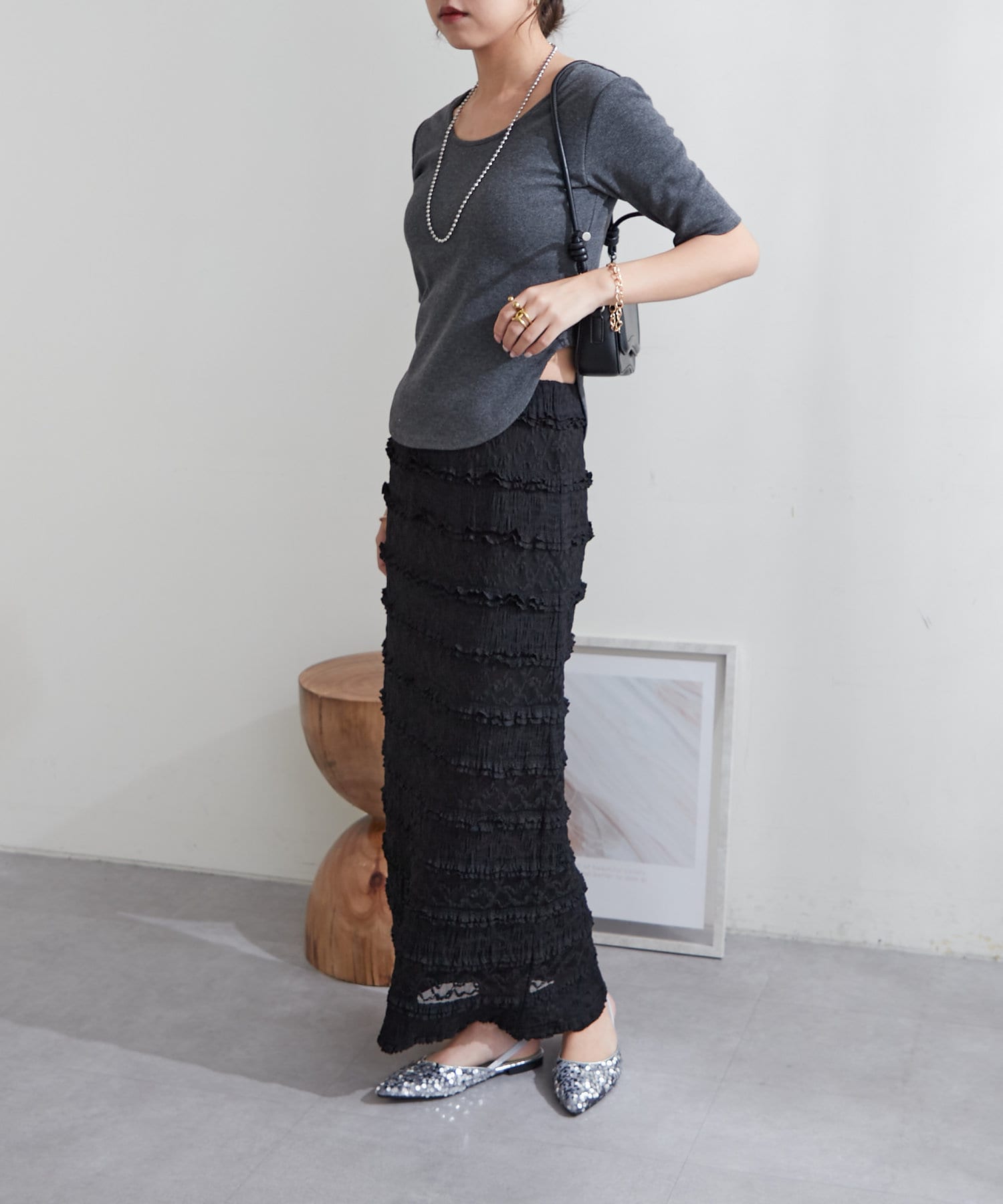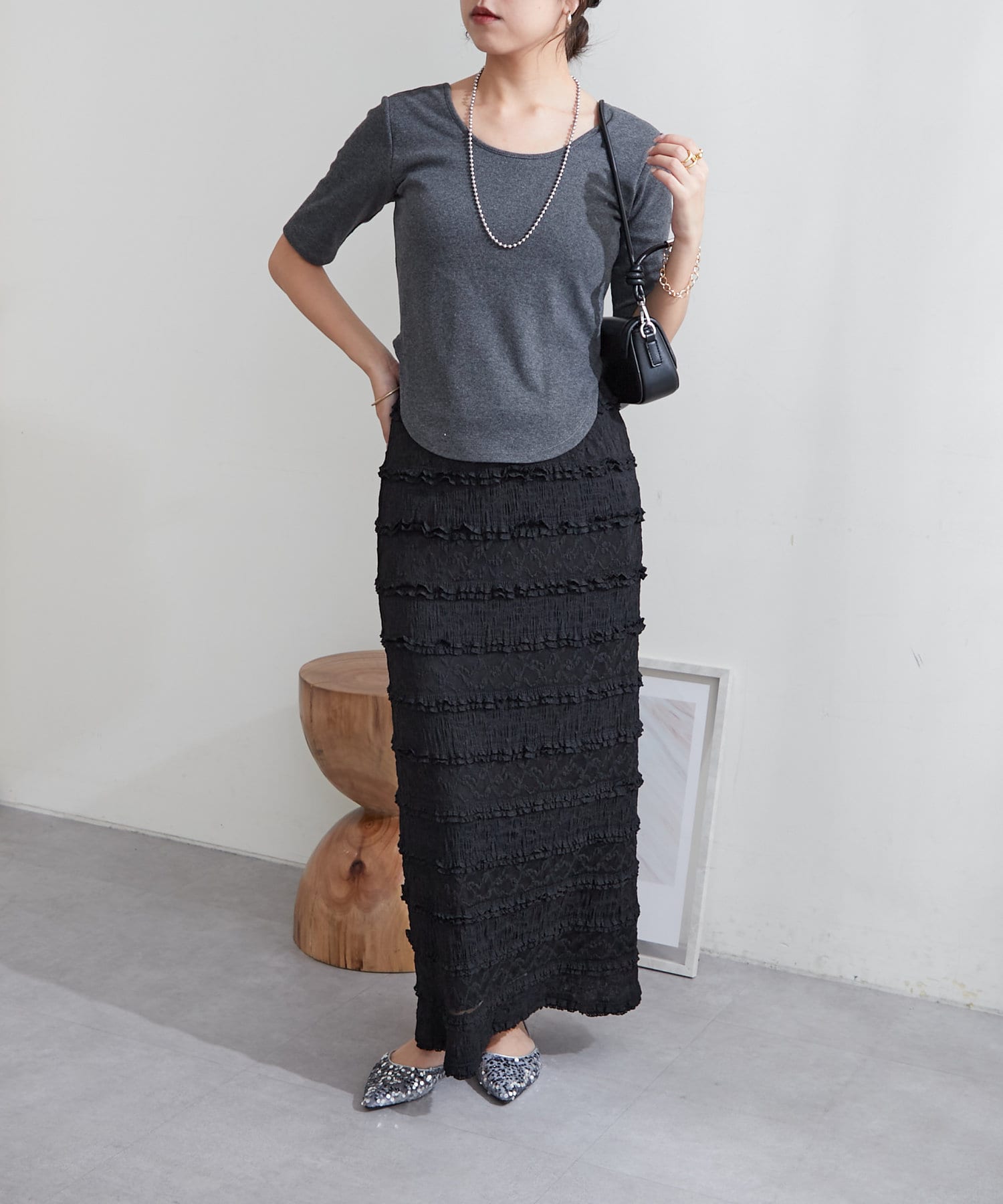 ・ラウンドしたデザイン性のある裾はウエスト-5㎏見えに◎